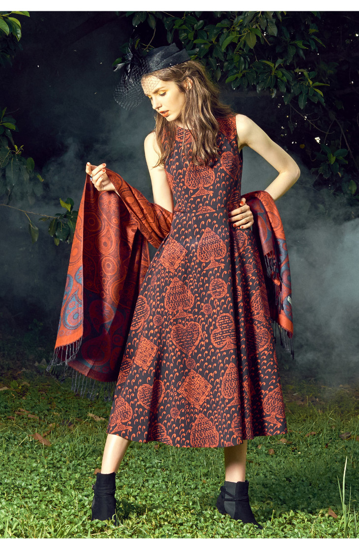 【伯妮斯茵】红色高密缎档印花连衣裙--戈迪拜尔夫人--《画尽世间光影,只为挚爱的女人》3S6739