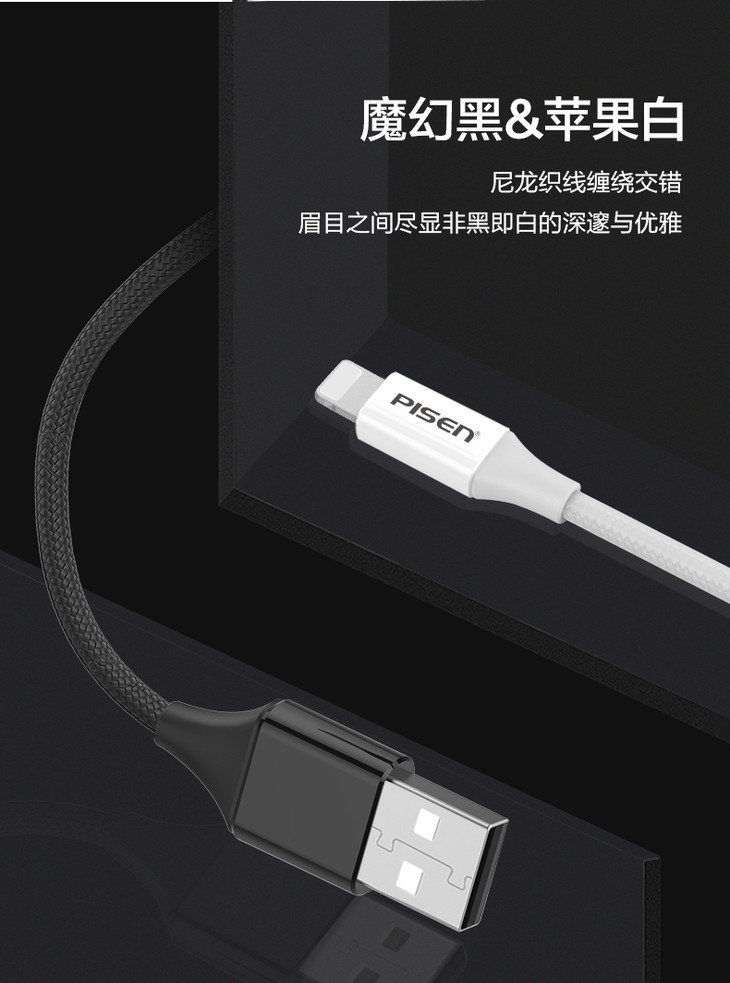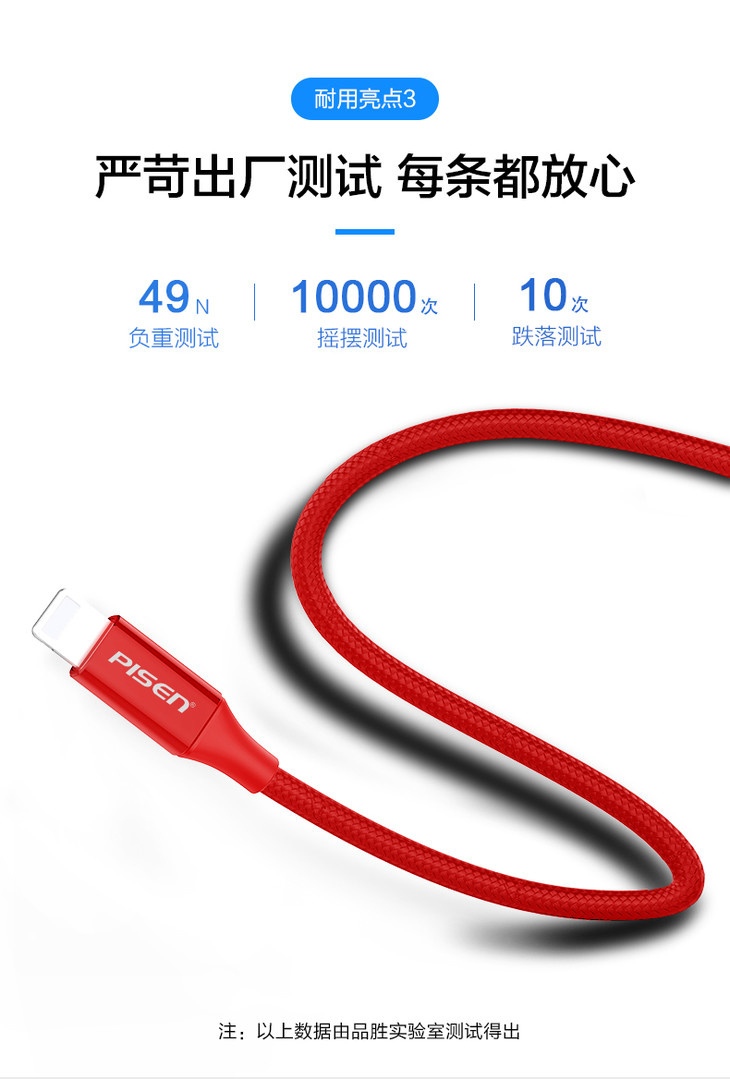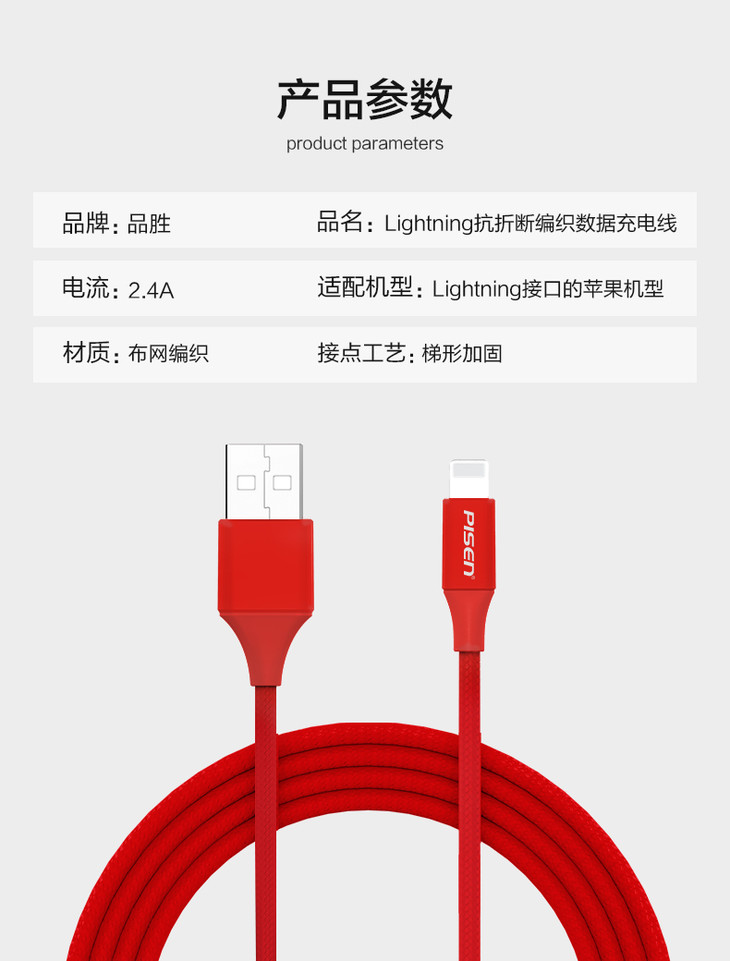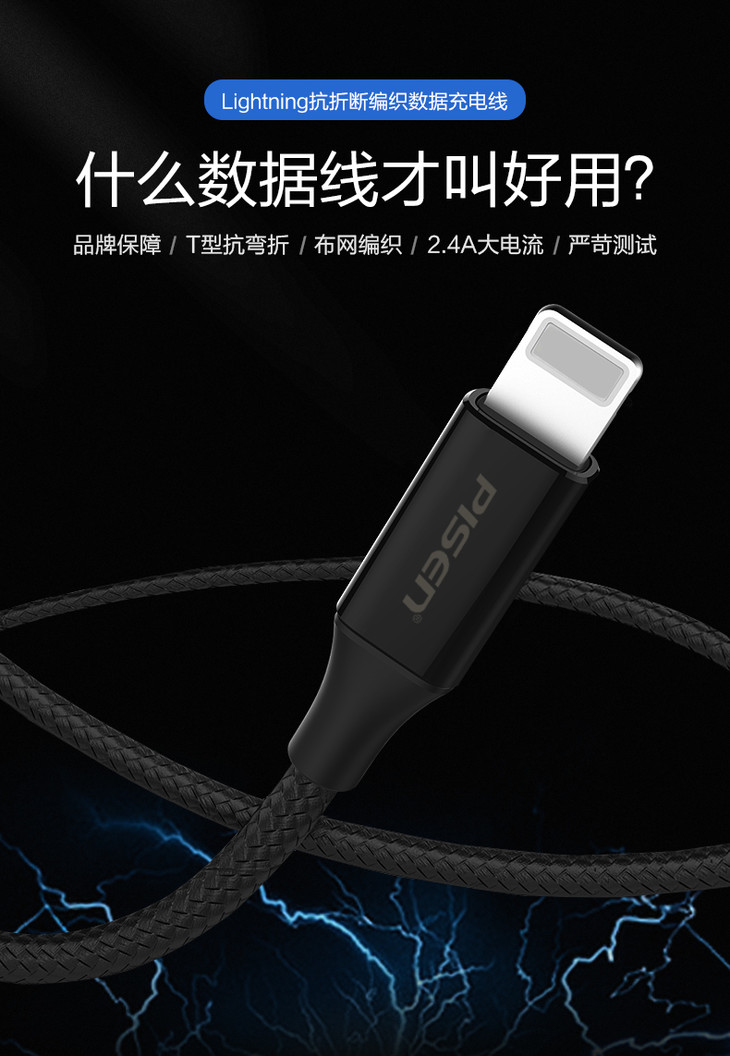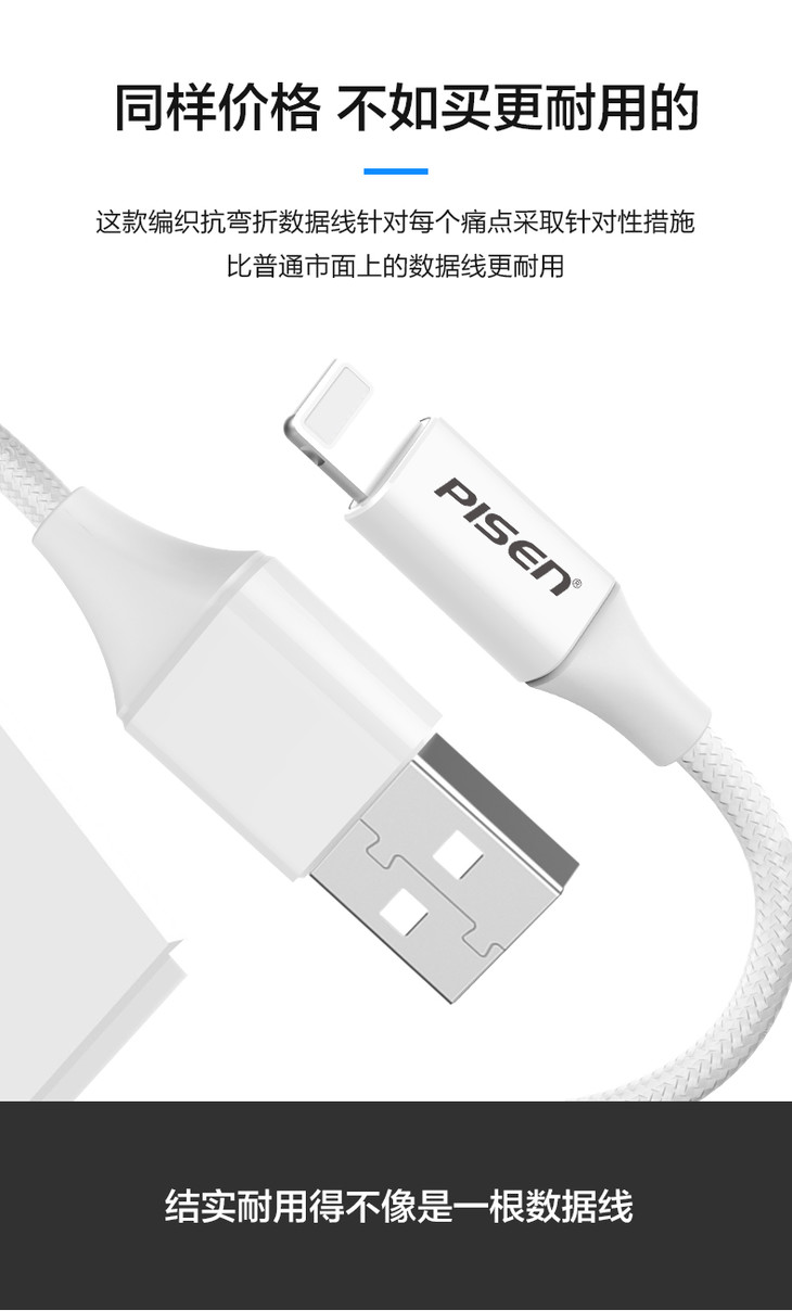 品胜 苹果抗折断编织数据线 结实耐磨 2.4A快速充电 多长度可选