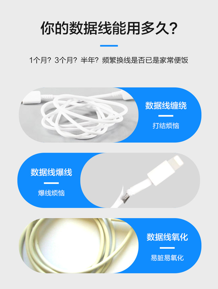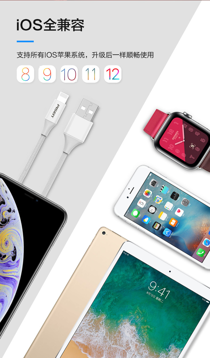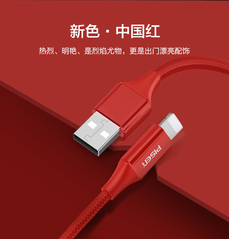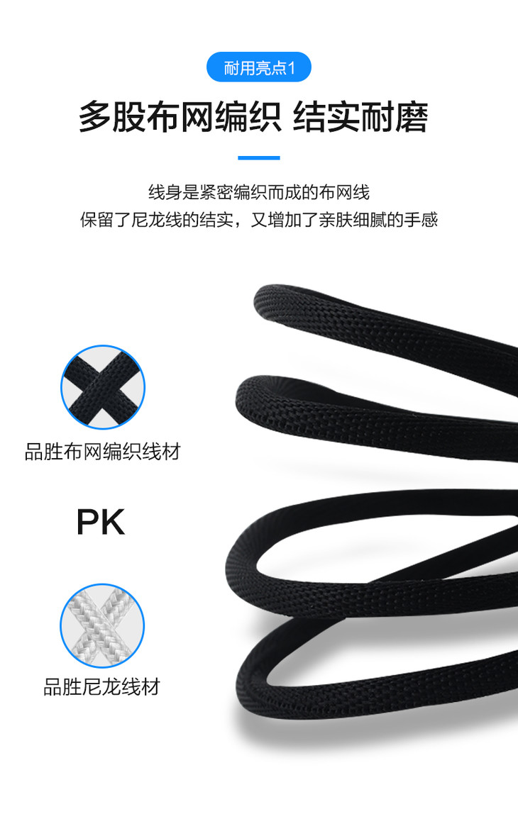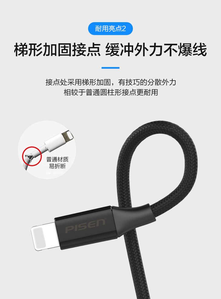 品胜 苹果抗折断编织数据线 结实耐磨 2.4A快速充电 多长度可选