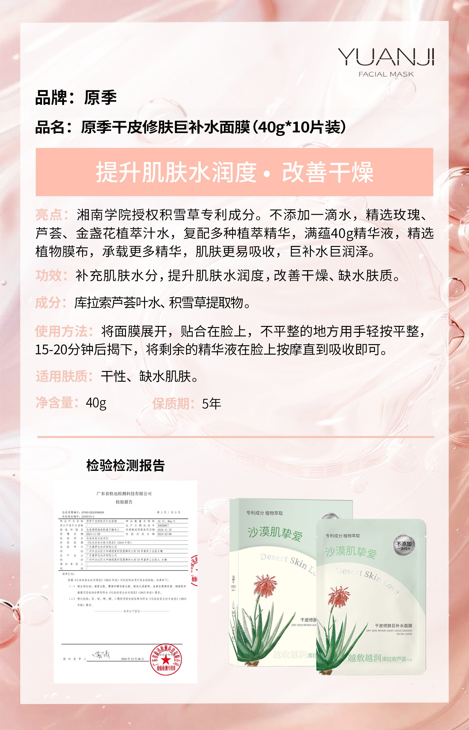原季-巨补水面膜系列40g*10片装 面膜