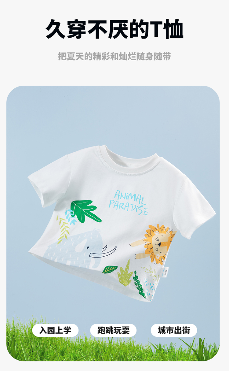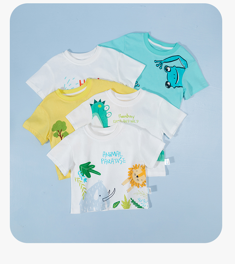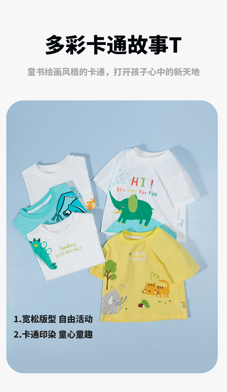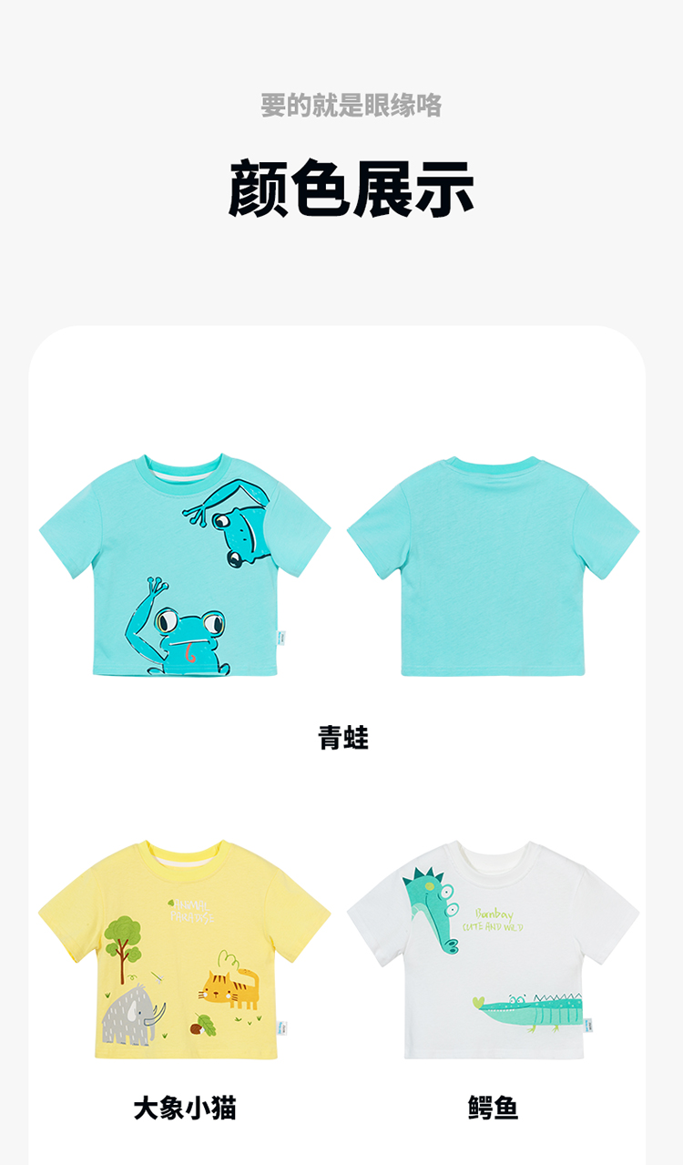贝贝怡童装儿童t恤纯棉夏季透气男童半袖卡通T恤ZB2DS046