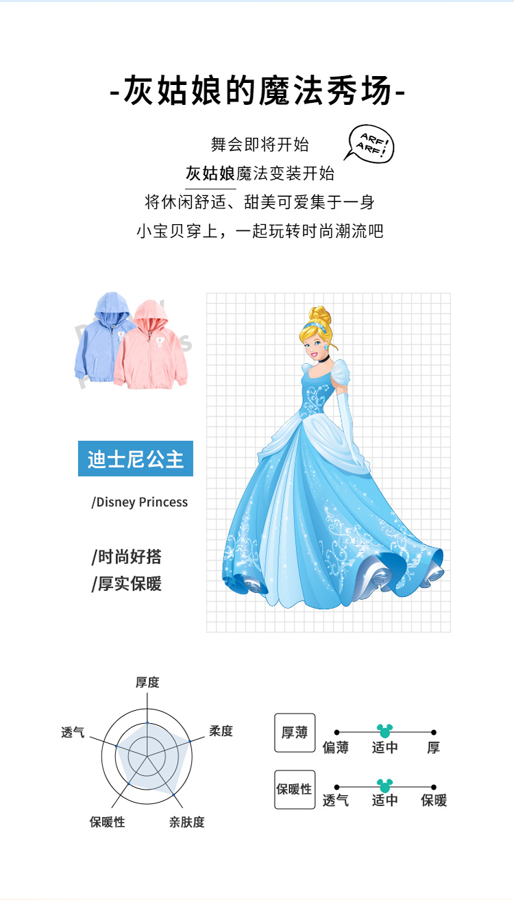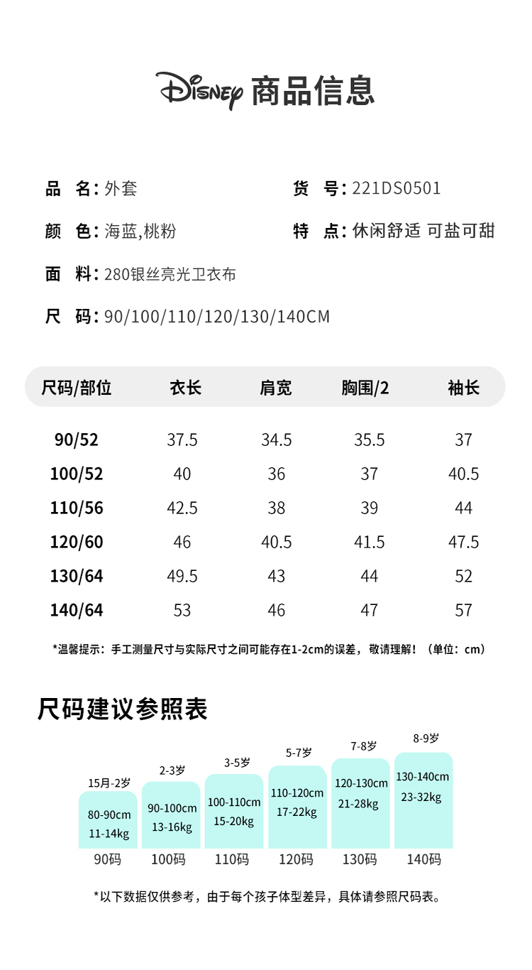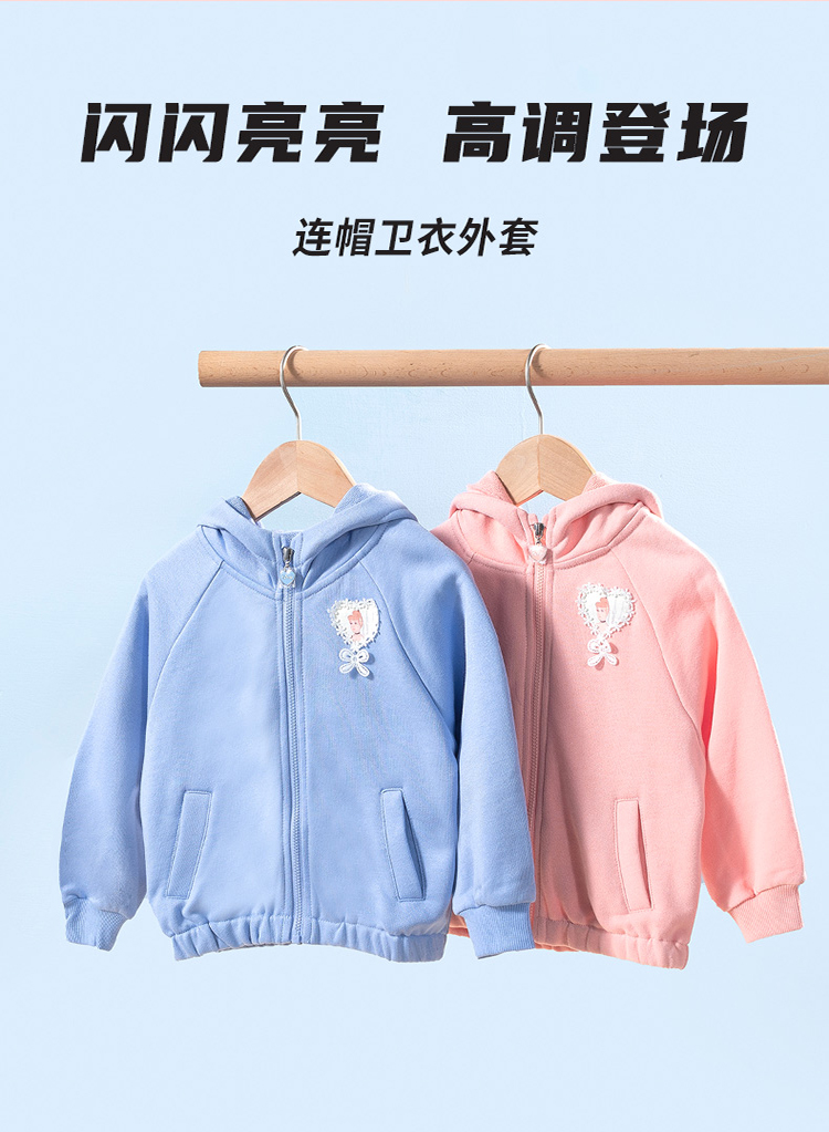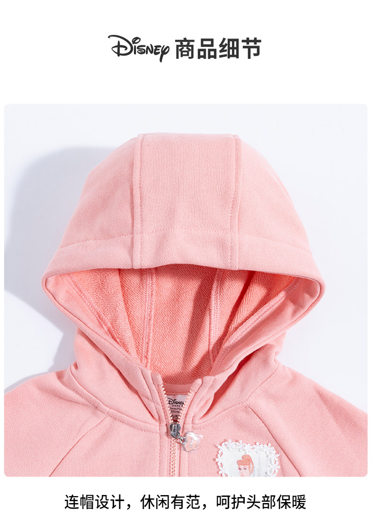 迪士尼童装女童连帽外套春秋款中小童甜美公主休闲卫衣上衣221DS0501