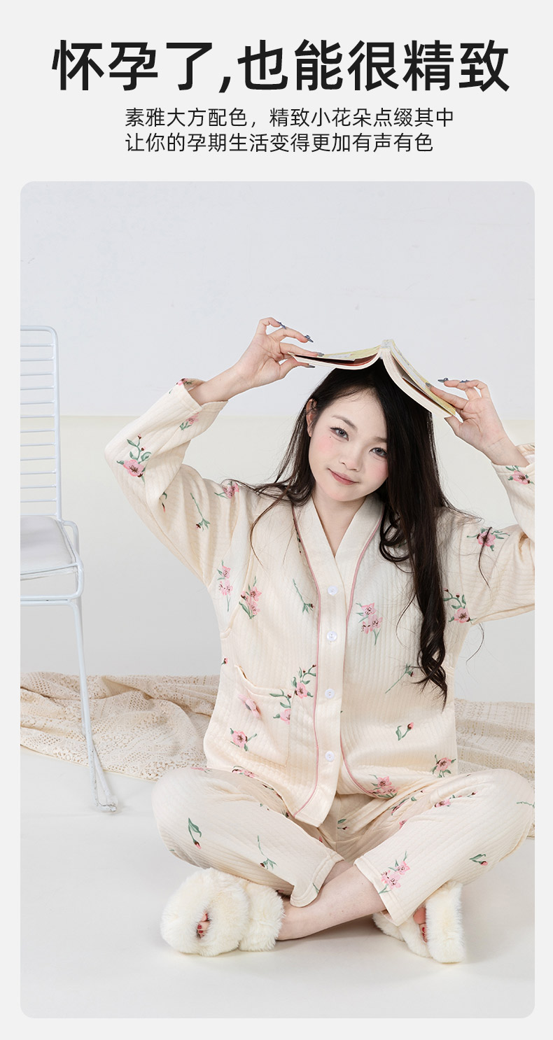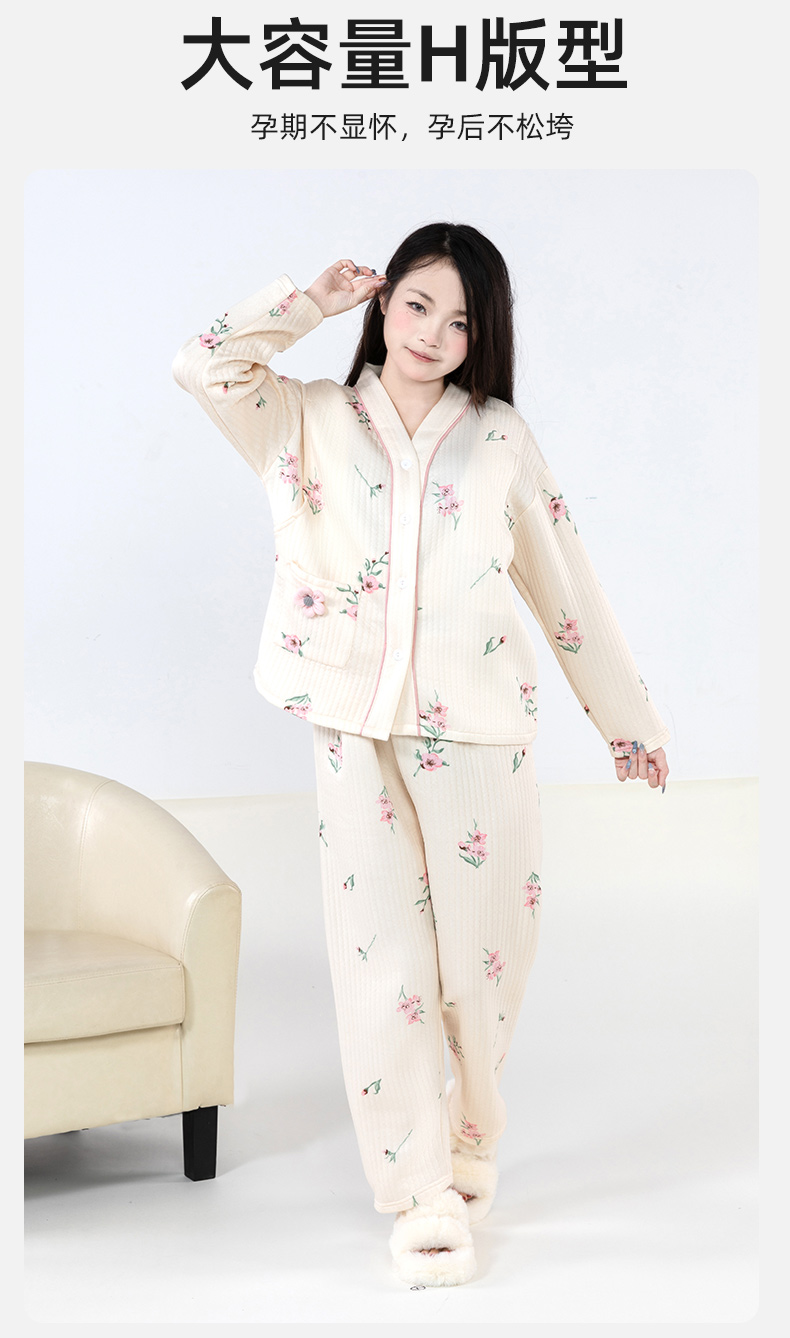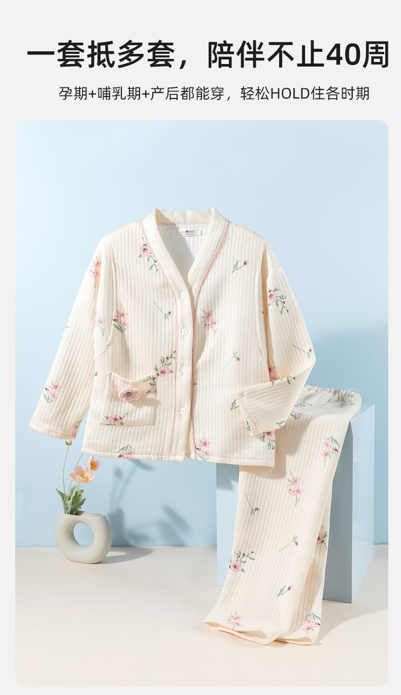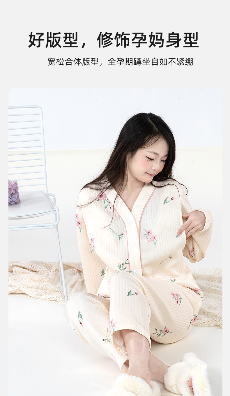 贝贝怡【便捷哺乳】秋冬新款夹棉V领长袖家居服套装孕妇哺乳产妇月子服ZB4DY001