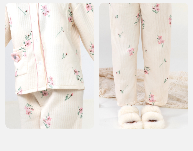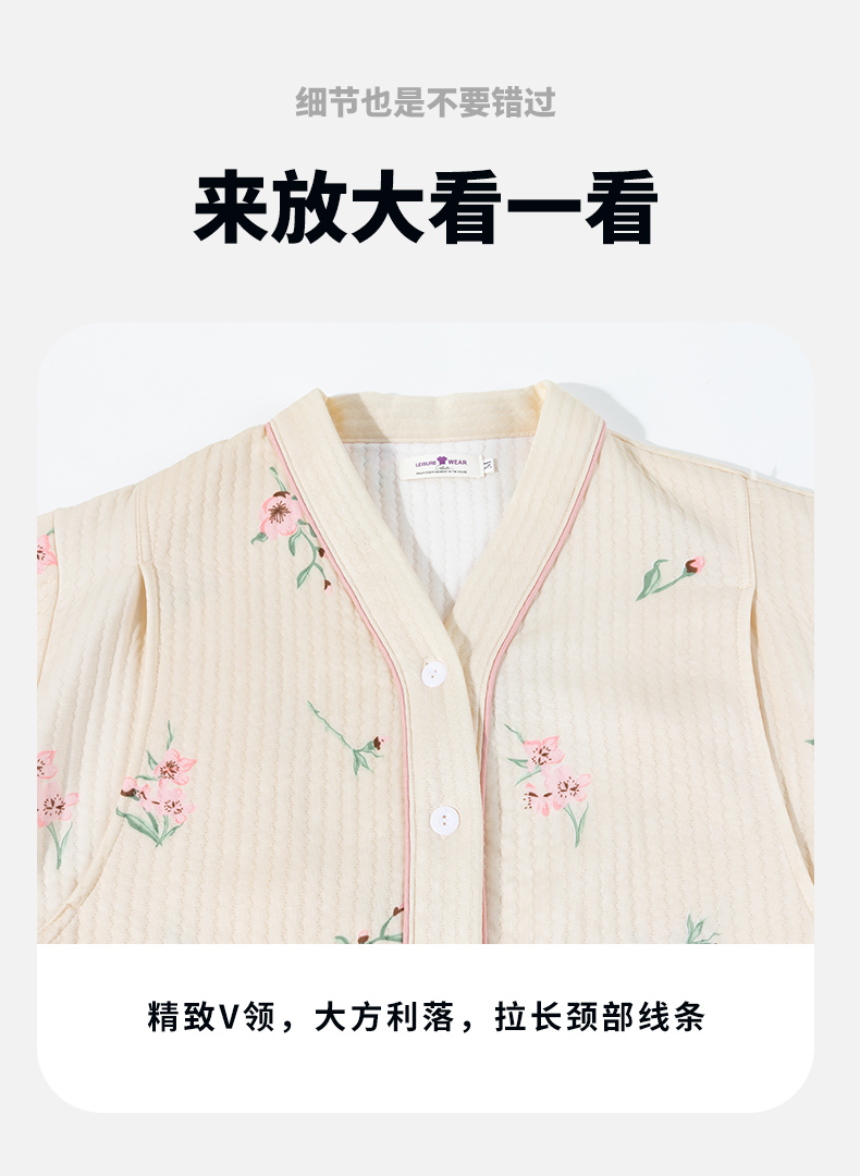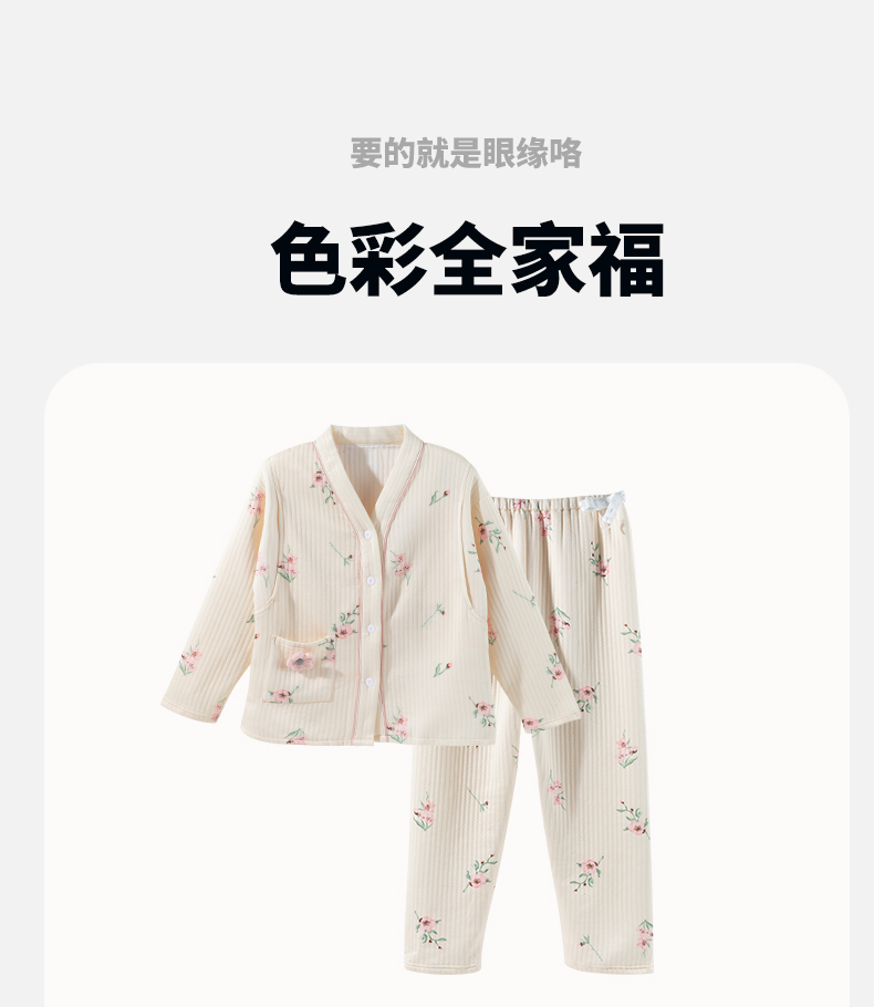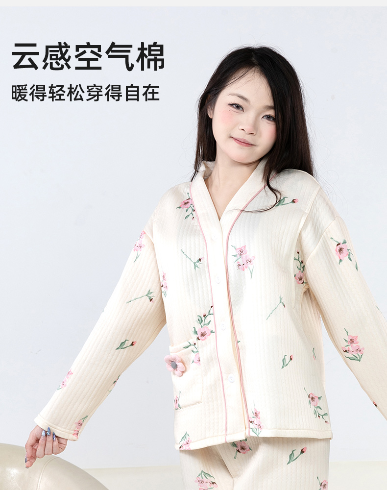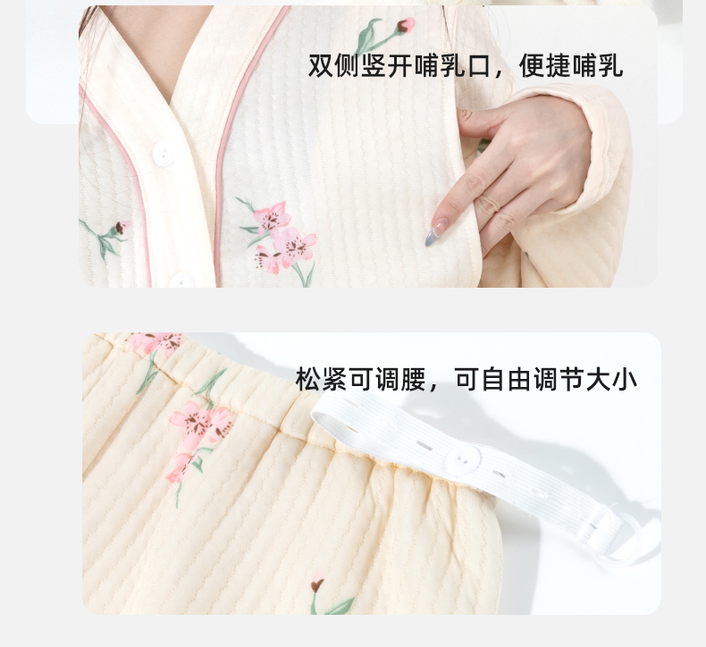 贝贝怡【便捷哺乳】秋冬新款夹棉V领长袖家居服套装孕妇哺乳产妇月子服ZB4DY001