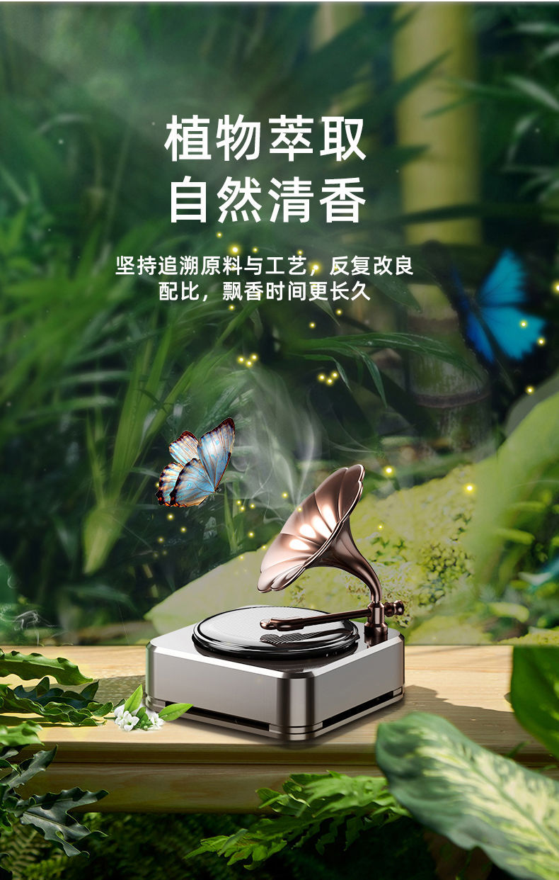 唱片机车载香薰汽车出风口香水车内唱片机装饰摆件持久香水香薰,