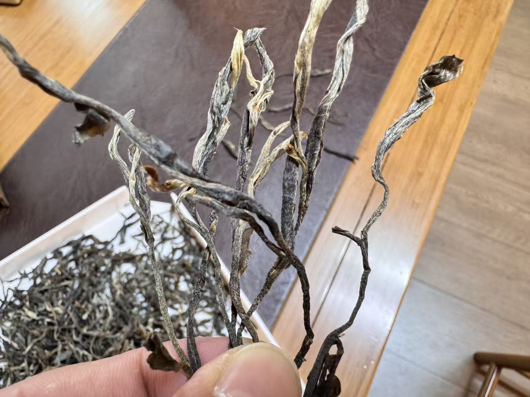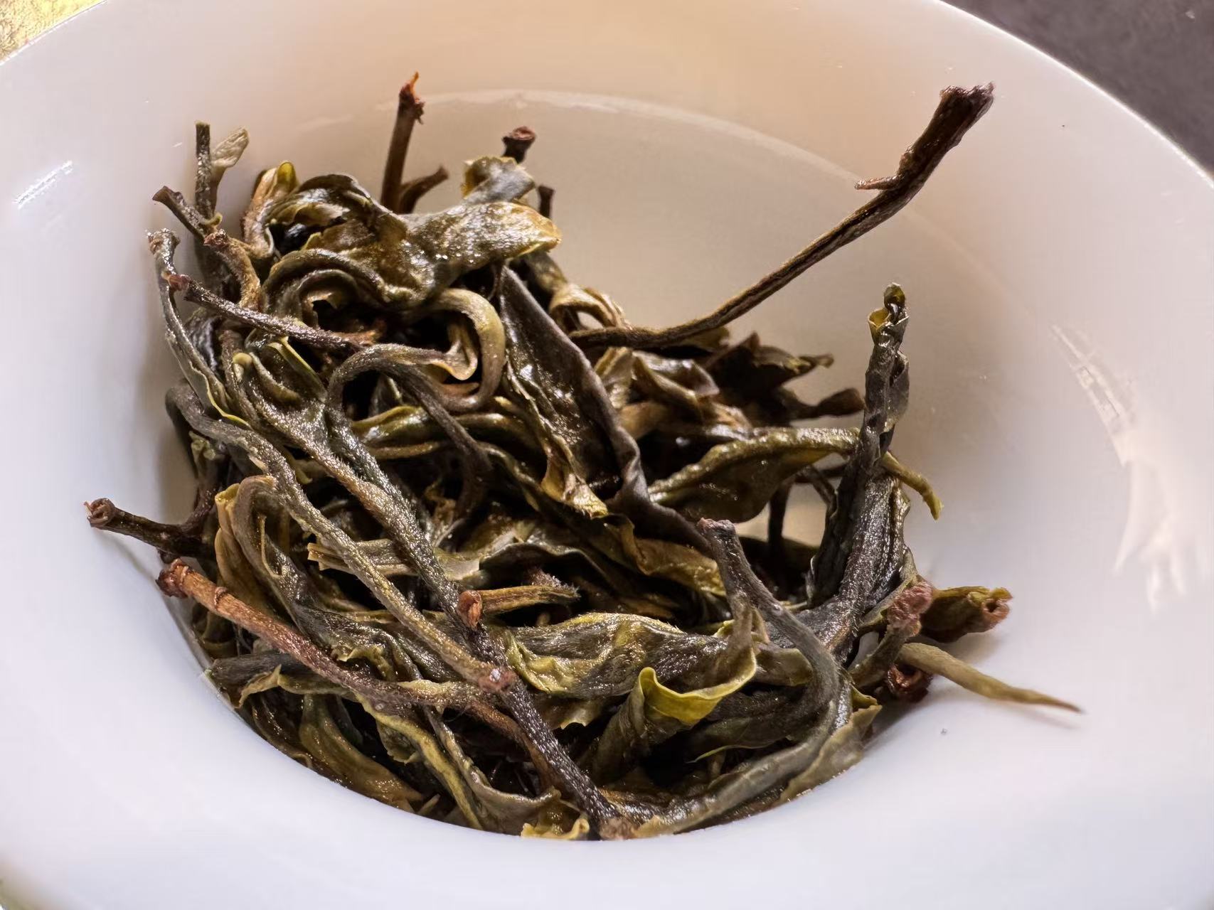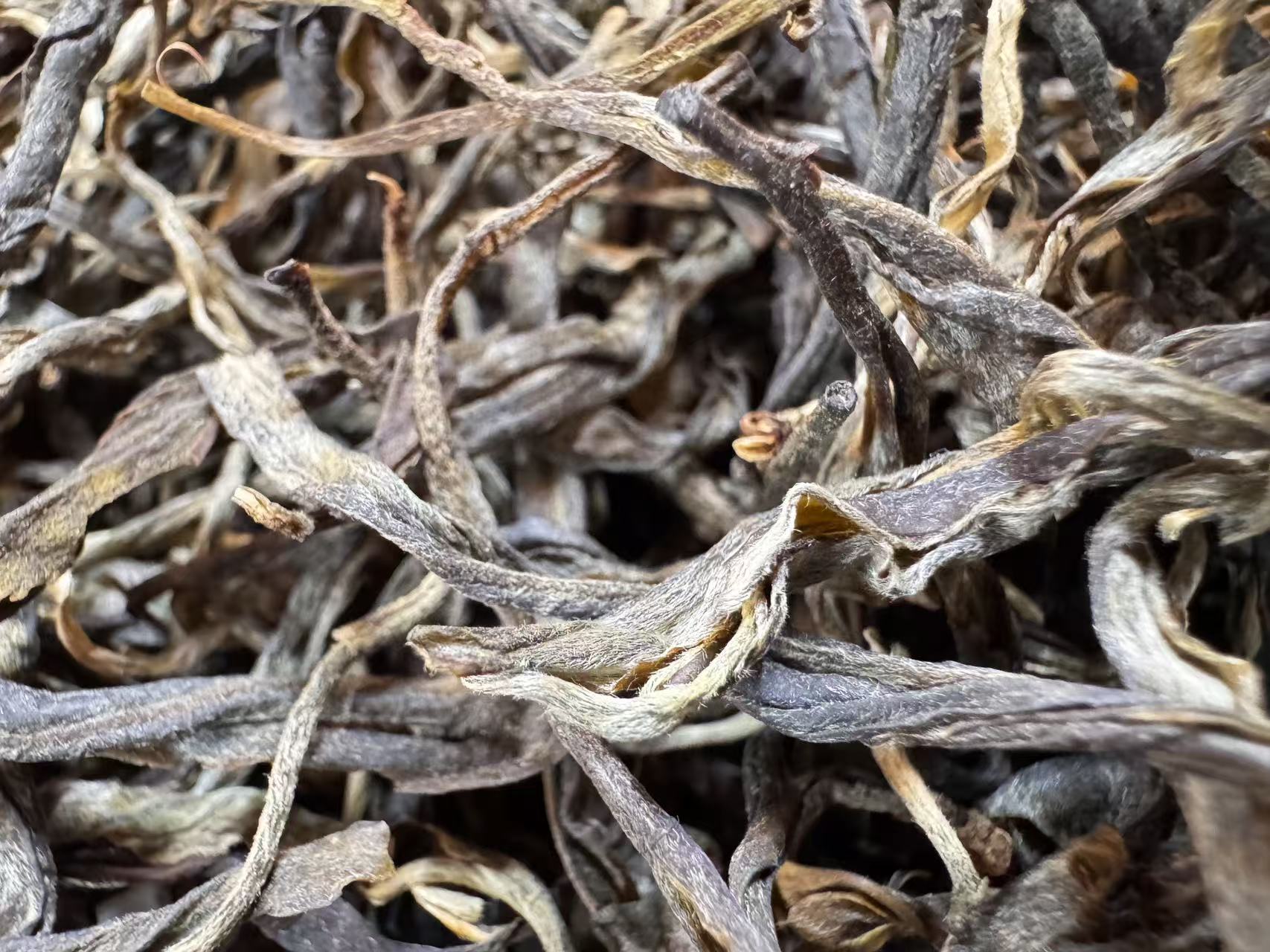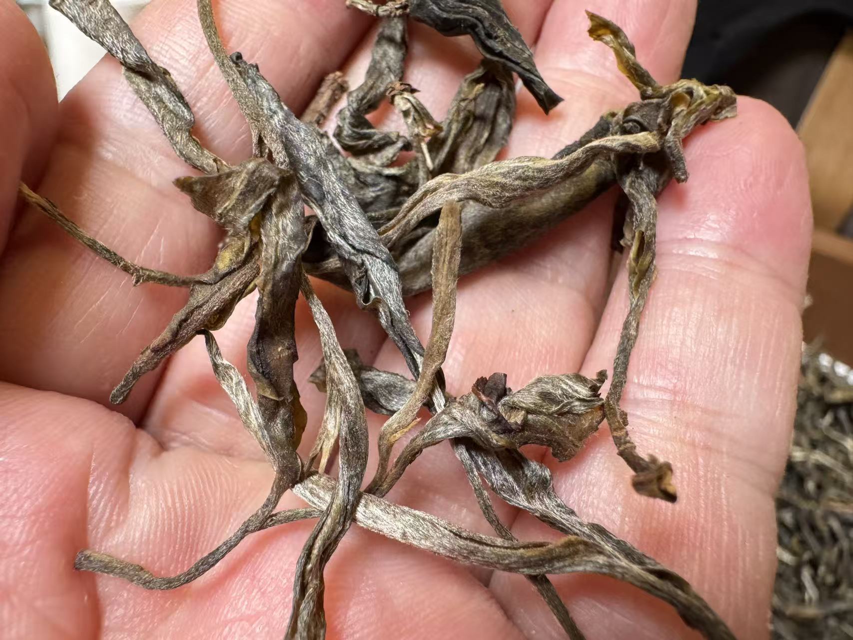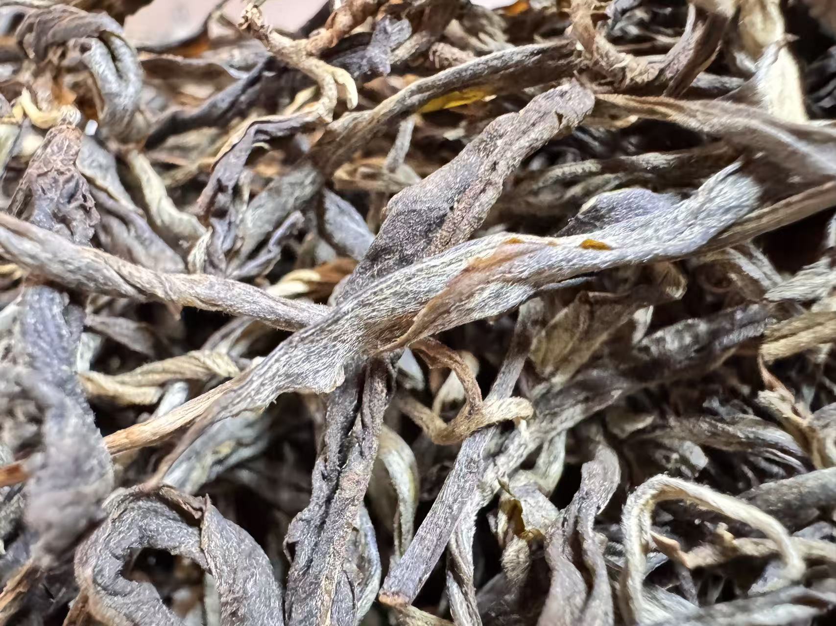 困鹿山的茶树,很多也都是中小叶种(还有很多细叶种),这个外形非常典型,布满银毫,油润有加,非常漂亮~