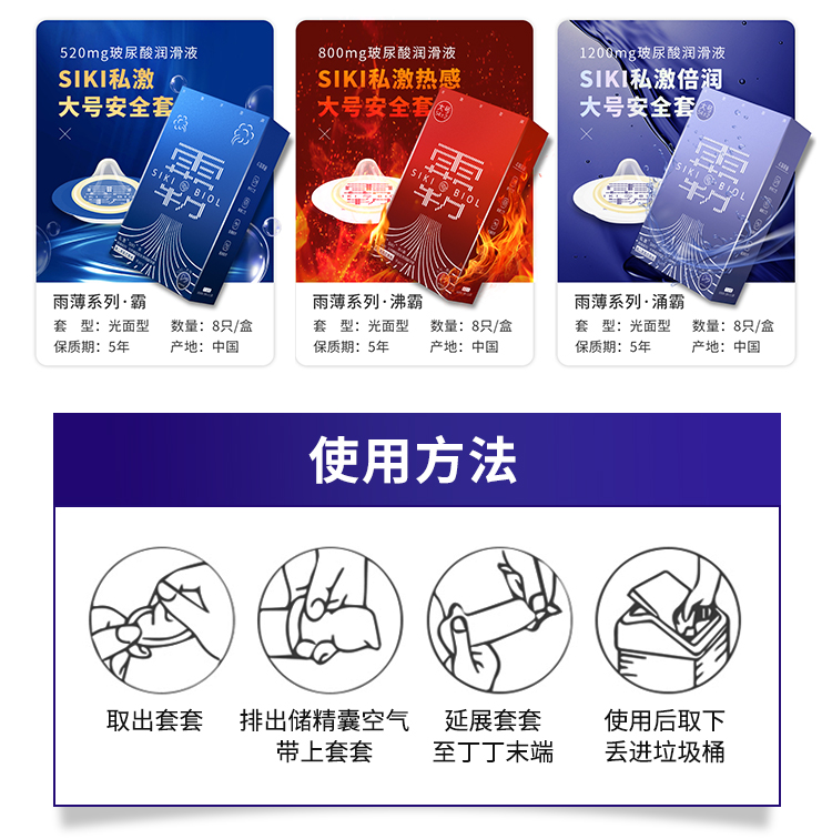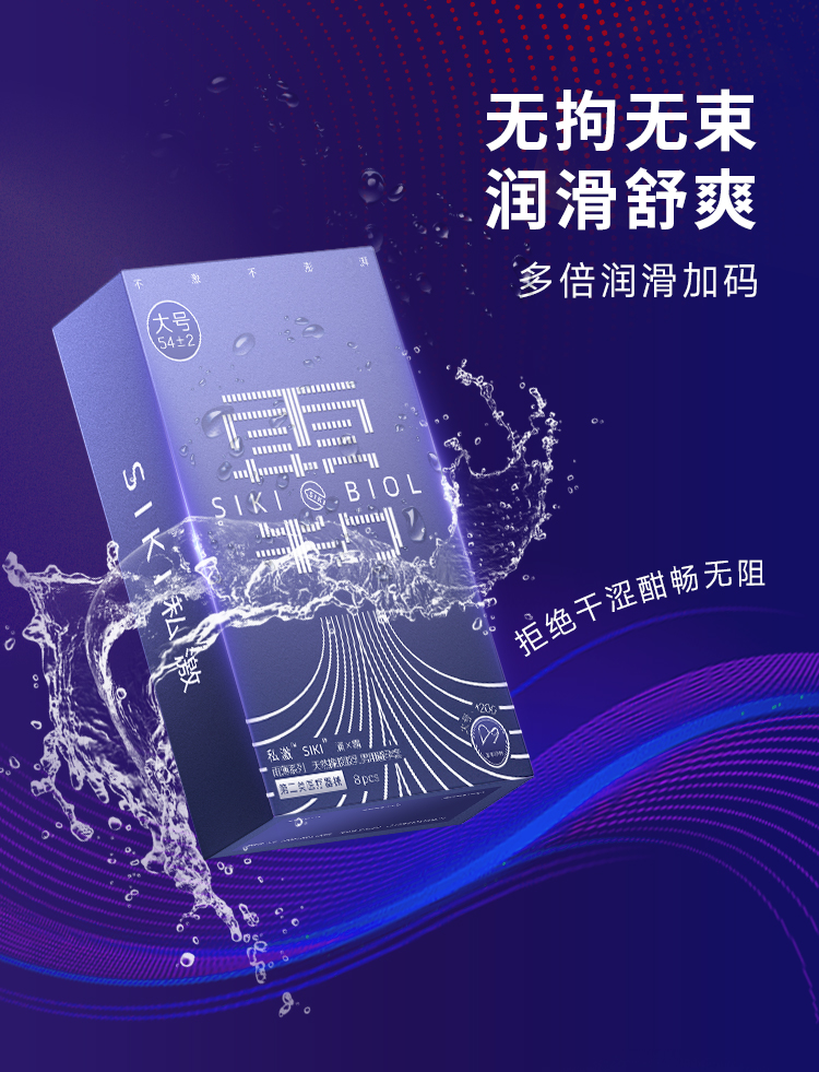 【大号套套】SIKI私激 雨薄系列 超薄玻尿酸安全套 超润滑 专利单手秒开