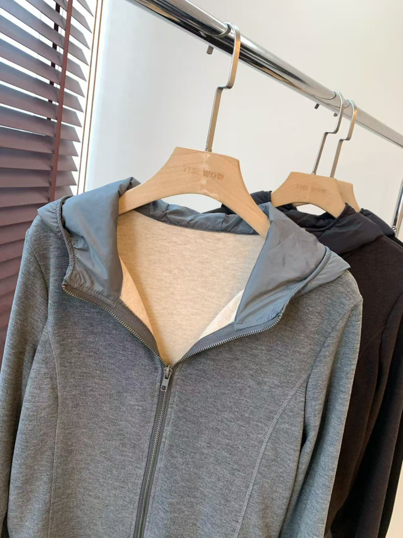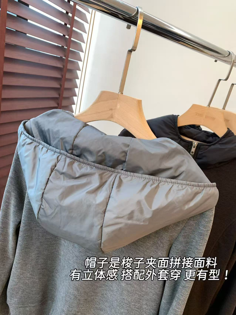 帽子做的是梭子夹面拼接面料,有立体感,能搭配外套穿,更有型