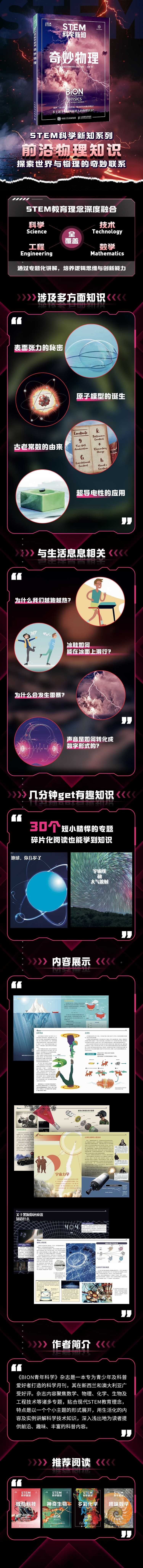 《BION 青年科学》杂志是一本专为大众,特别是青少年打造的科学月刊,在新西兰和澳大利亚广受好评。杂志内容聚焦数学、物理、化学、生物及工程技术等诸多专题,贴合现代 STEM 教育理念;特点是以一个个小主题的形式展开,用生活中的实例讲解科学技术知识,深入浅出地为读者提供前沿、有趣、丰富的科普内容。本书为 STEM 科学新知系列的物理专题,书中内容选自近些年杂志中尤为精彩的、好评如潮的文章,介绍了诸多关于能量、物质、相对论、宇宙、黑洞、暗物质等的前沿物理知识,内容丰富有趣。本书适合广大的科普爱好者,尤其适合对物理感兴趣的青少年读者阅读。《BION青年科学》杂志为青少年及大众打造的科学月刊,其在新西兰和澳大利亚广受好评。内容聚焦数学、物理、化学、生物及工程技术等诸多专题,贴合现代STEM教育理念,特点是以一个个小主题的形式展开,用生活化的内容及实例讲解科学技术知识,深入浅出地为读者提供前沿、有趣、丰富的科普内容。杂志撰稿人是公认的教授、教师、科学家、行业专家、设计师等,他们来自各个领域并且具有丰富的经验。所有文章和内容由教授和行业专家审校。文章主要特点是用简单的文字和丰富的图形解释复杂的主题,使年轻读者更容易阅读。目标是在年轻一代中普及科学。目录热量藏到哪里去了 4怎样才能捕捉到引力波 9多面的碳 15论薄冰 20爱因斯坦的第一次革命:狭义相对论 24爱因斯坦的第二次革命:广义相对论 29地球,你几岁了 34宇宙力学 40表面张力 46来自天空 51宇宙线和大气簇射 58热和冷 65物理学中的古老常数 70火箭从什么地方发射到太空重要吗 75不可分物质 76无底深渊 82关于黑洞你还应该知道什么 88超导电性 90为什么会发生雷暴 97反物质 102世界的终点在哪里 110我们的宇宙 116移居火星 118火星和地球的相似之处 120火星和地球的差异之处 121讲述未来的电影 124不可能的未来 128星星有什么没有告诉我们 134数字音乐 140透过玻璃的黑暗 146- 新华一城书集 (微信公众号认证)