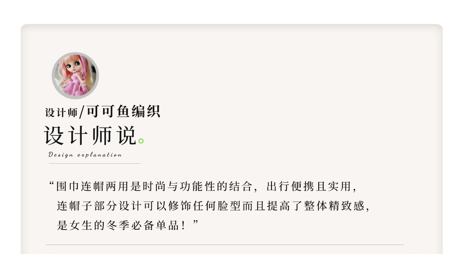 苏苏姐家昕悦连帽围巾手工diy编织棒针帽子围巾毛线团自制材料包