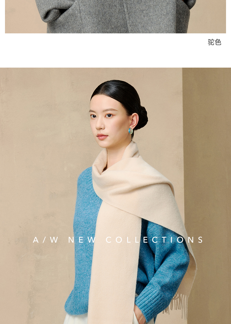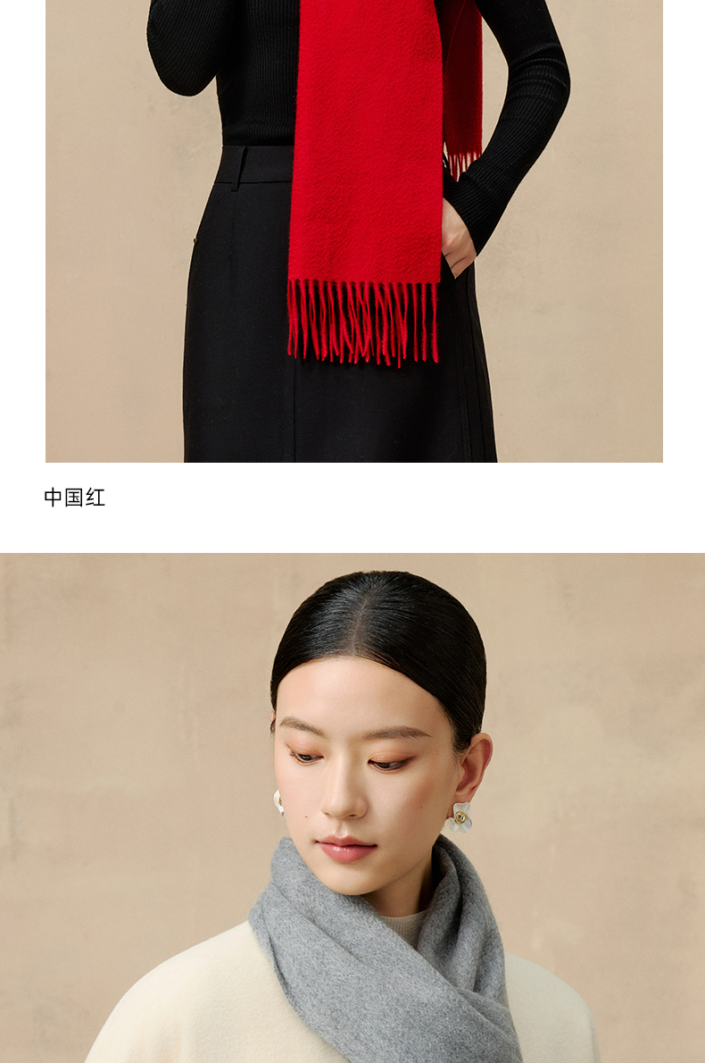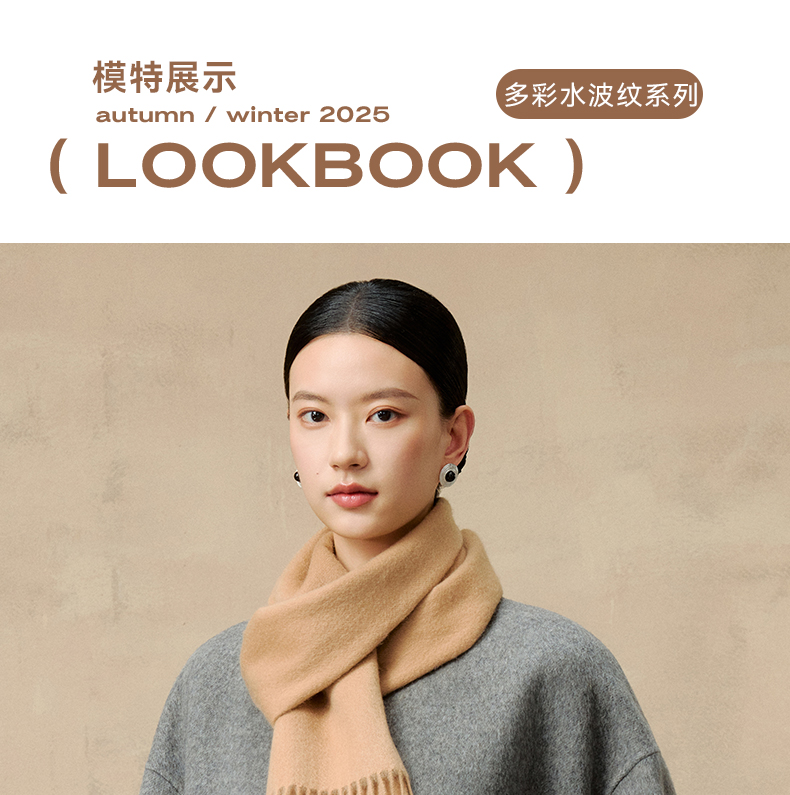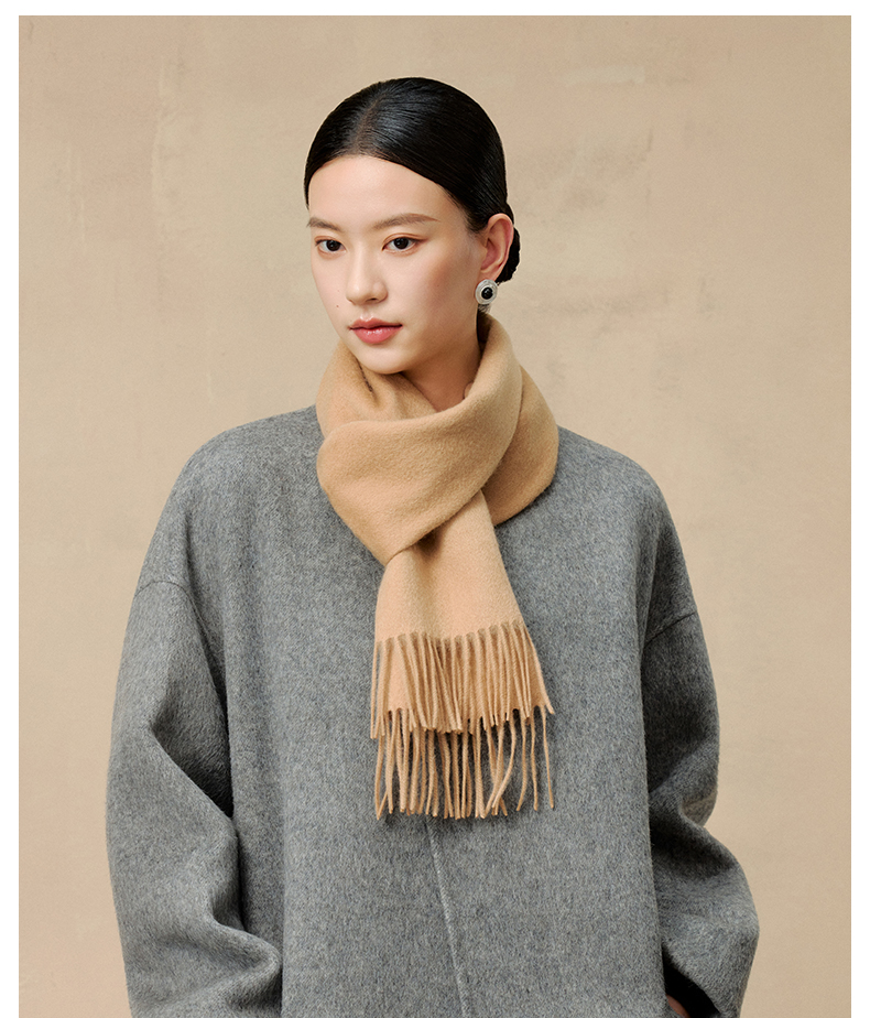 多彩水波纹素色羊绒围巾