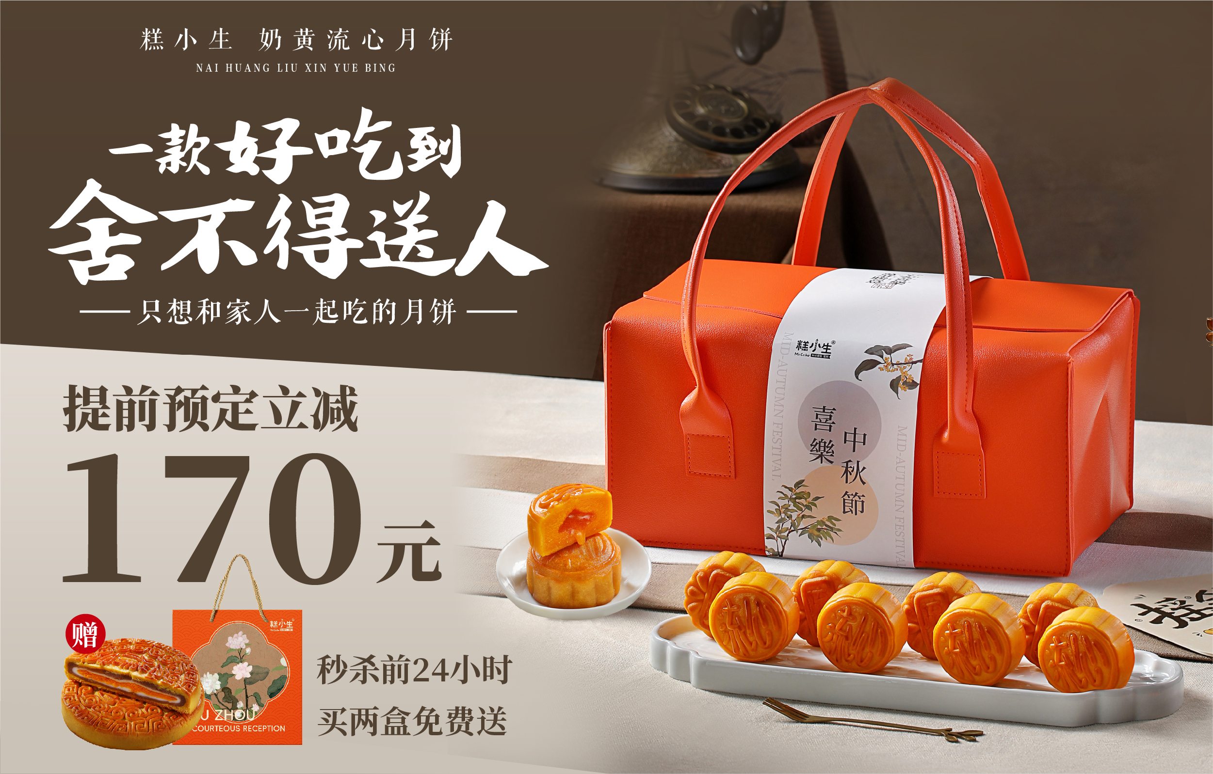 糕小生奶黄流心月饼秒杀: 福利一:原价立减368元、预定立减170元; 福利二:流心更用心,满50盒可定制腰封,1盒可代写贺卡; 福利三:前24小时下单2盒月饼赠送价值99元宫廷汉饼1盒; 配送范围:三环内(不含鼓山、白湖亭、福湾地区)、五四北地区免费配送到家,超出范围我们给您寄顺丰快递、按照实际运费收配送费; 说明:活动价产品,储值卡和礼品卡不可使用; |