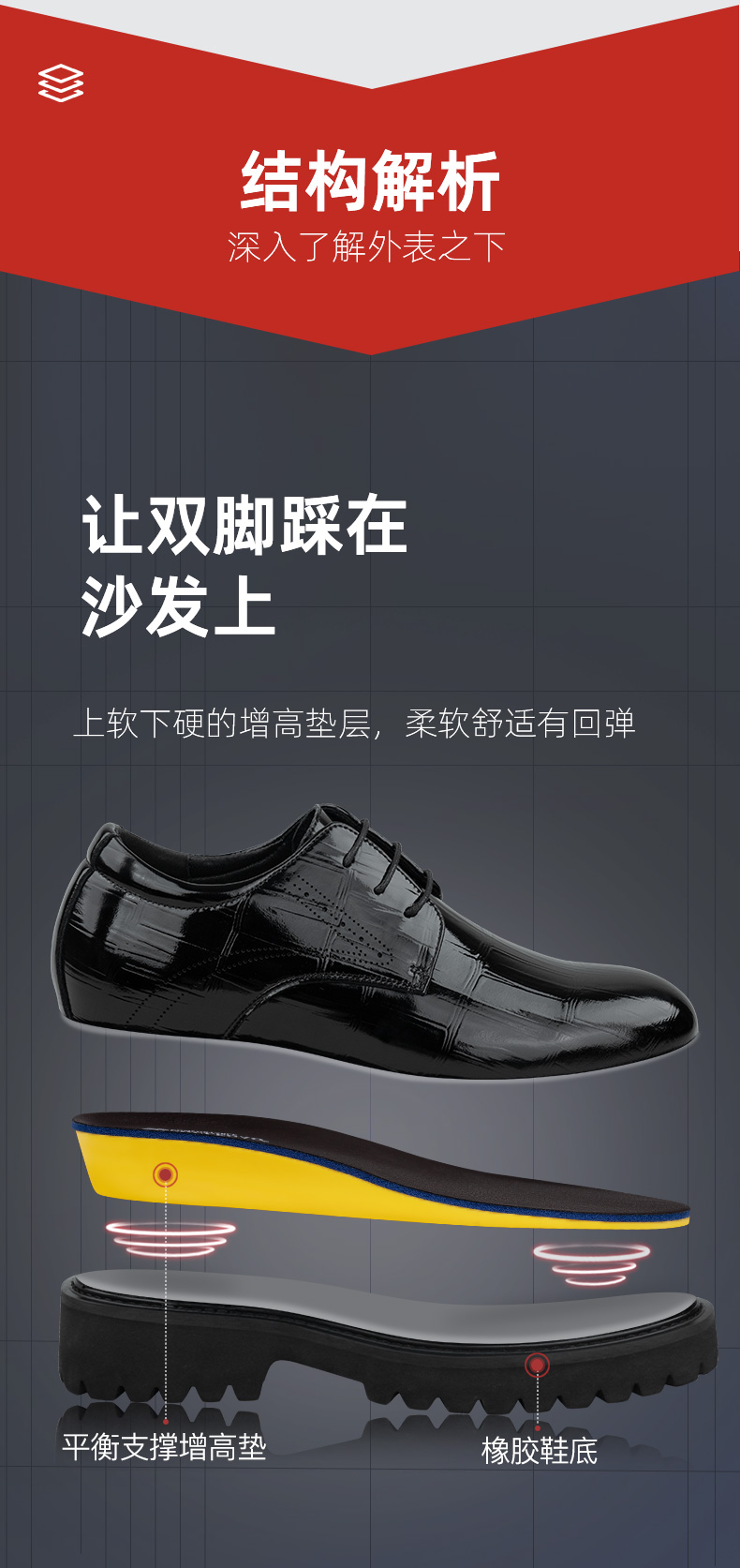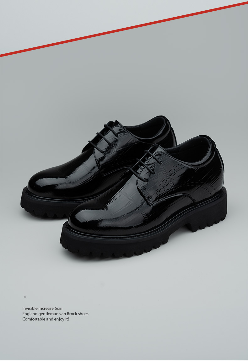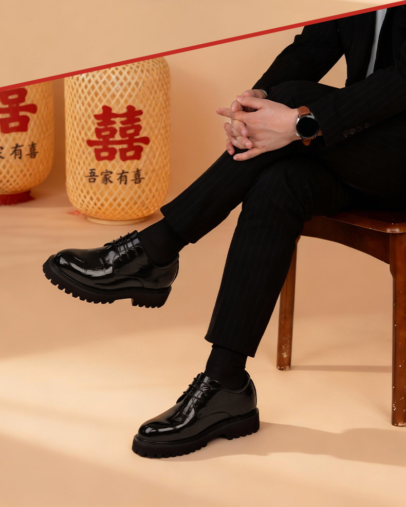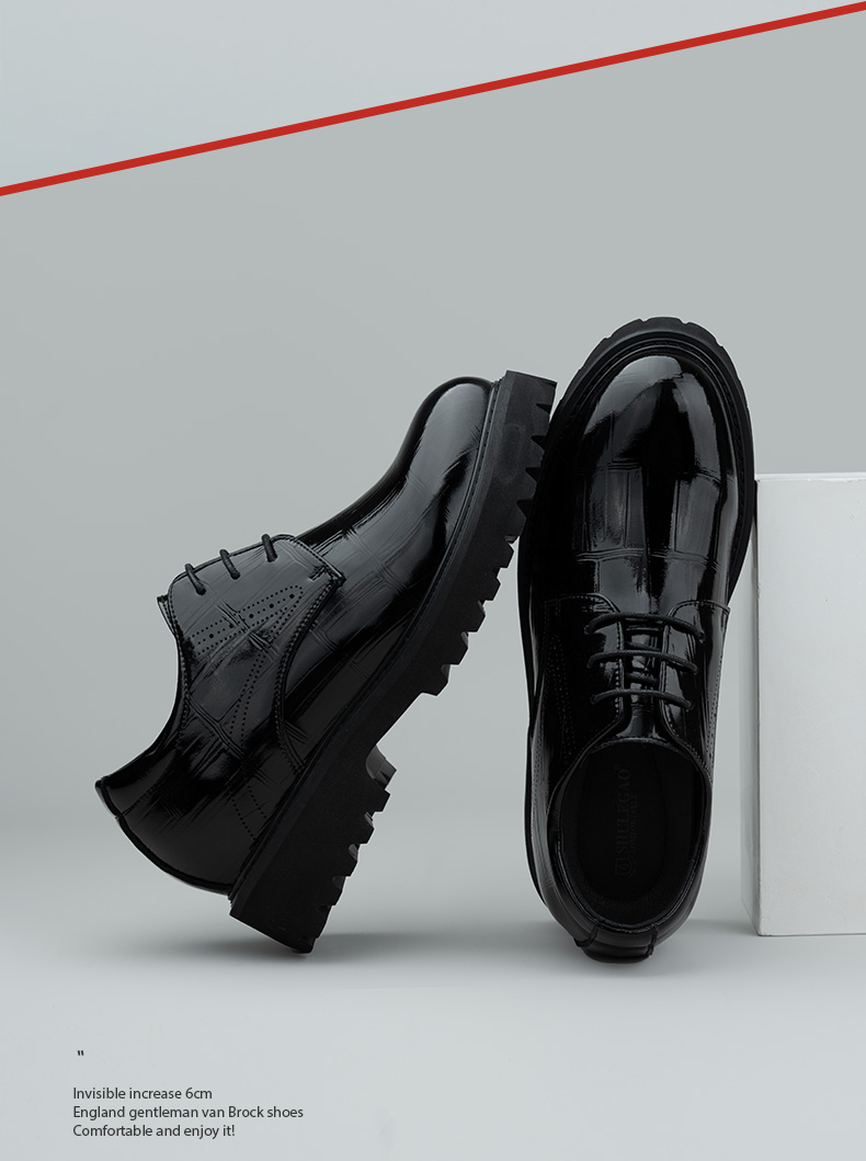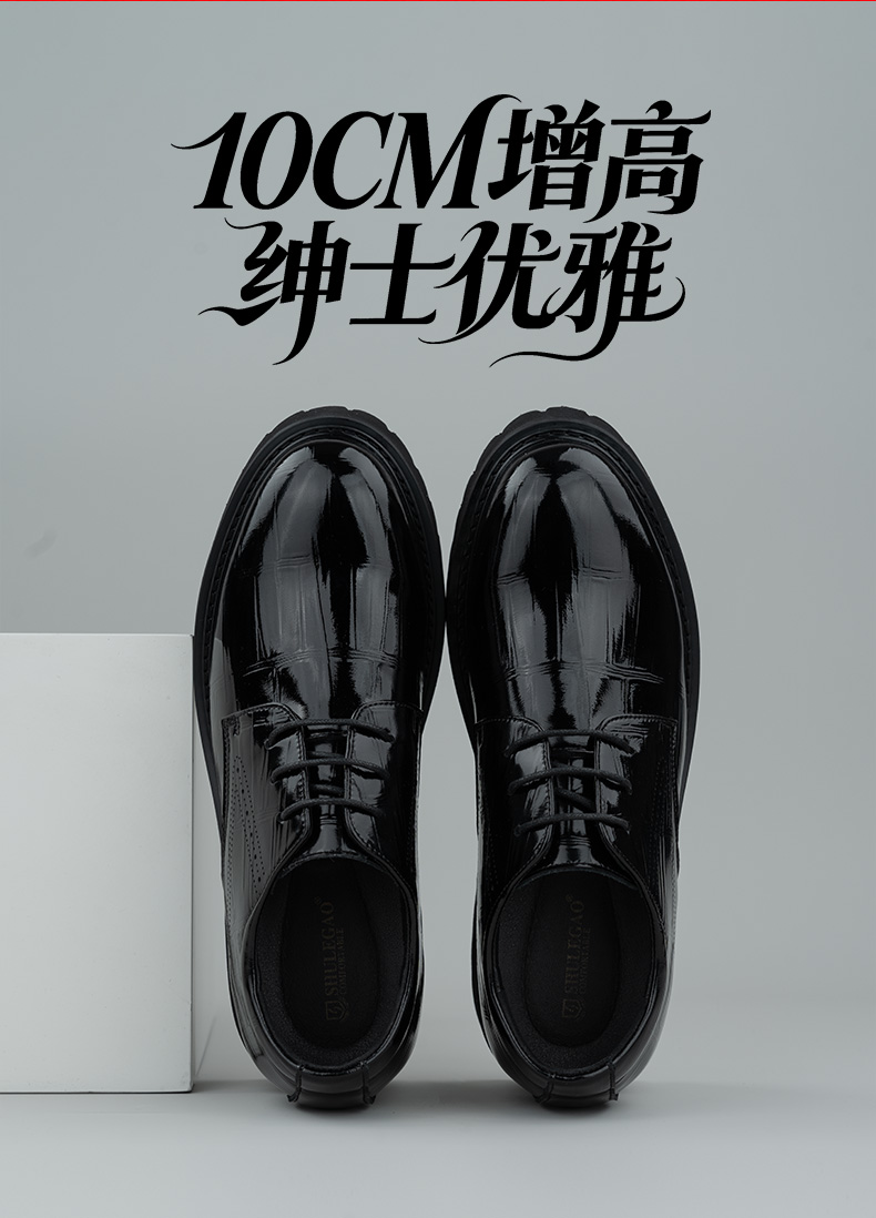 舒乐高男鞋隐形内增高10cm皮鞋男款休闲鞋厚底婚鞋男英伦风黑色