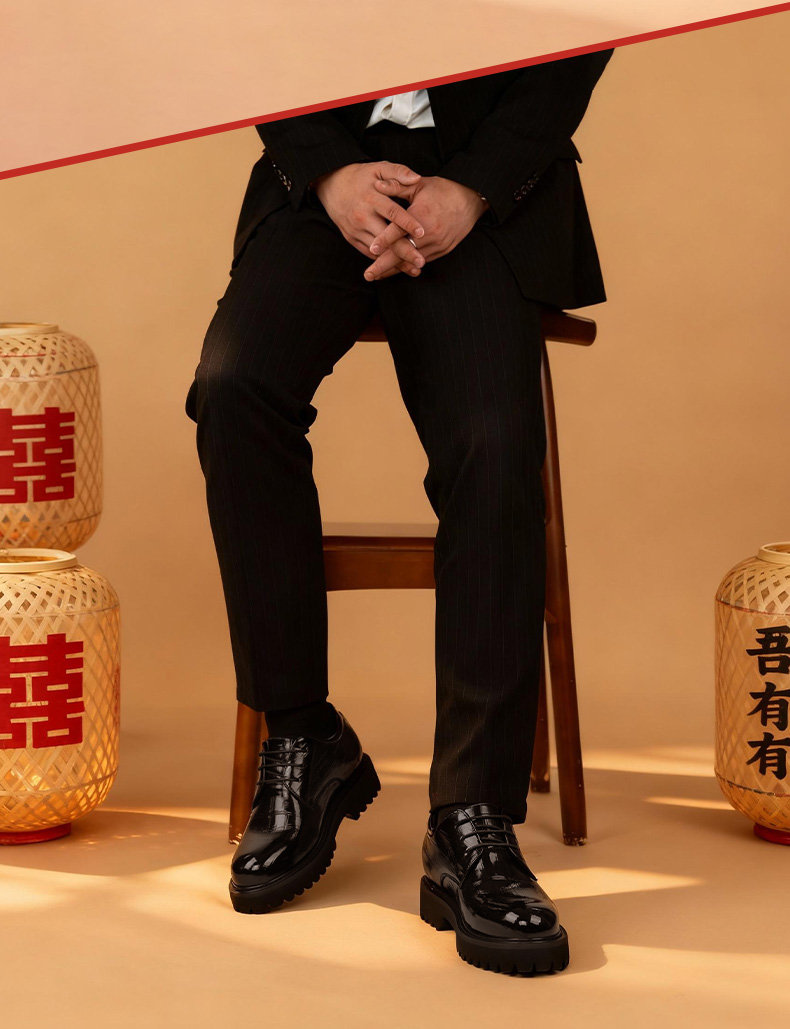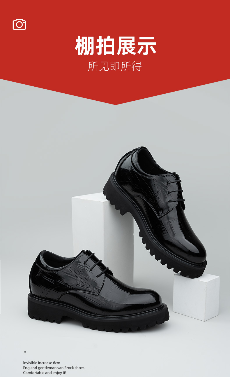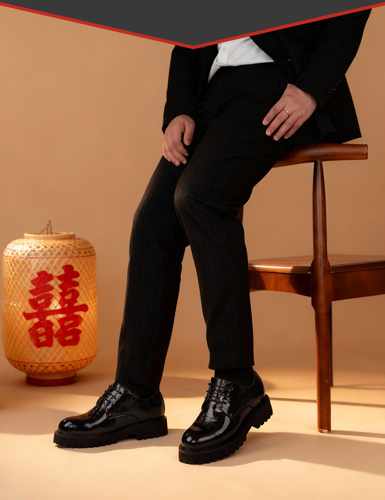 男士增高6cm皮鞋时尚休闲商务正装英伦系带内增高男鞋结婚新郎鞋