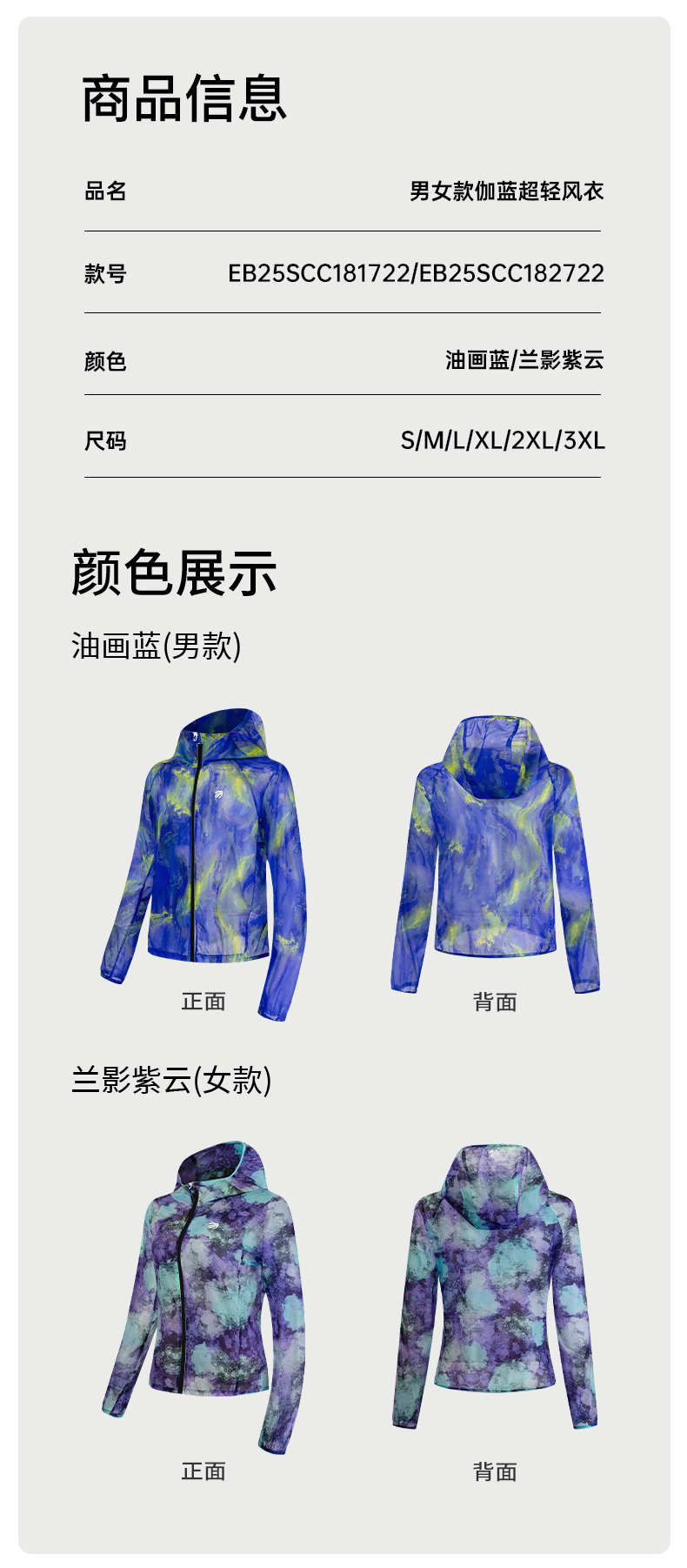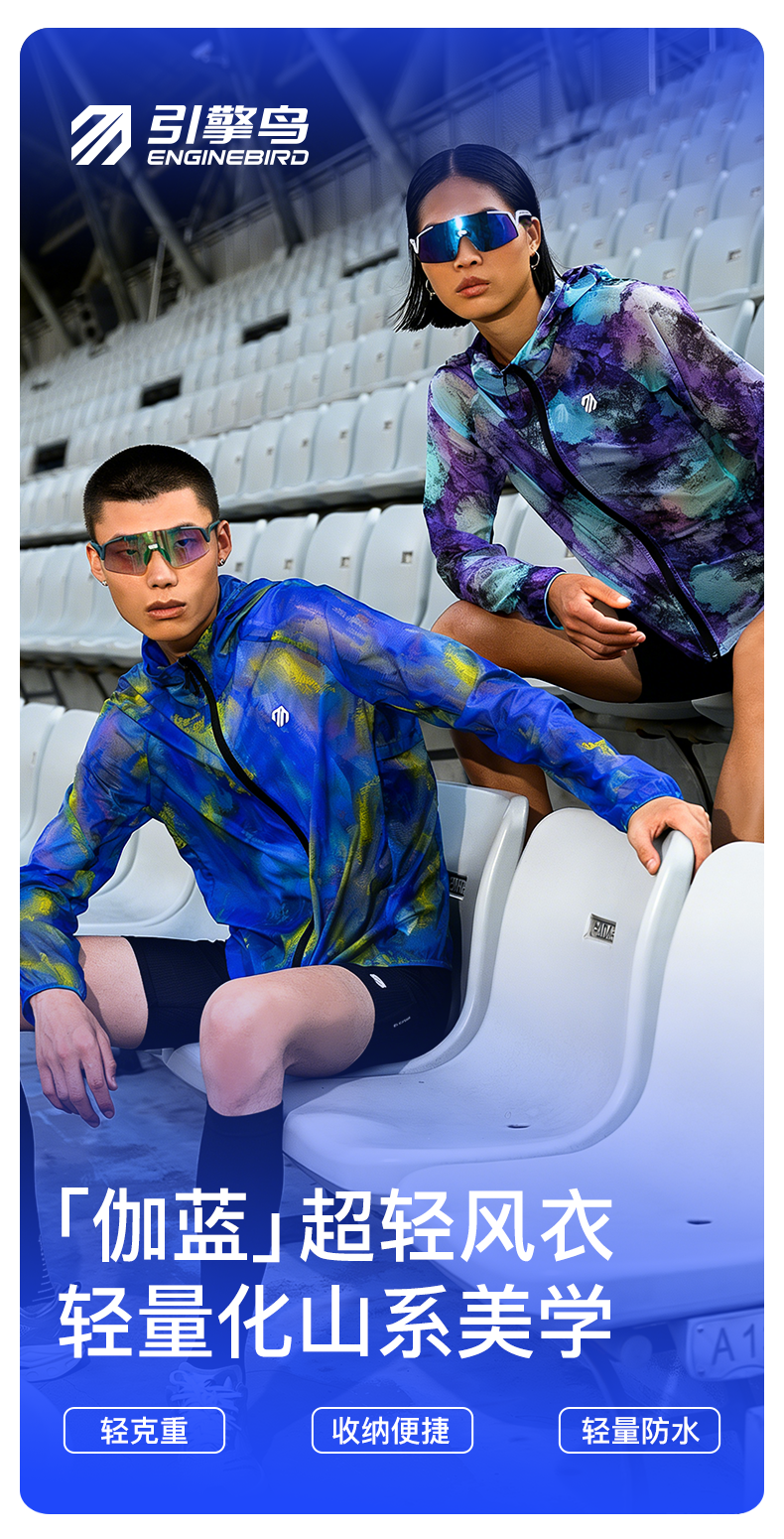 【春上新】引擎鸟男女款伽蓝超轻风衣防泼水防晒轻薄易收纳马拉松越野长袖外套