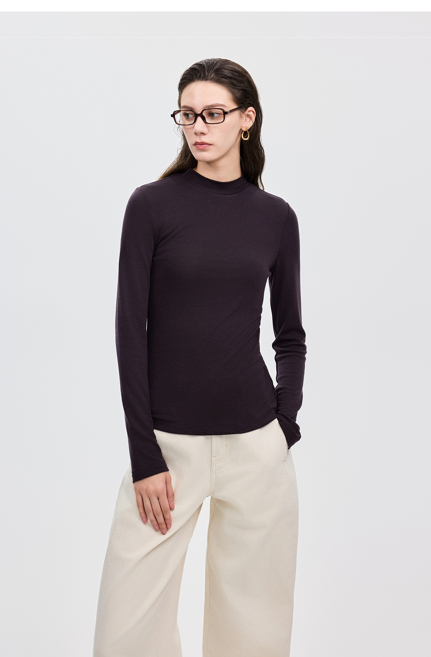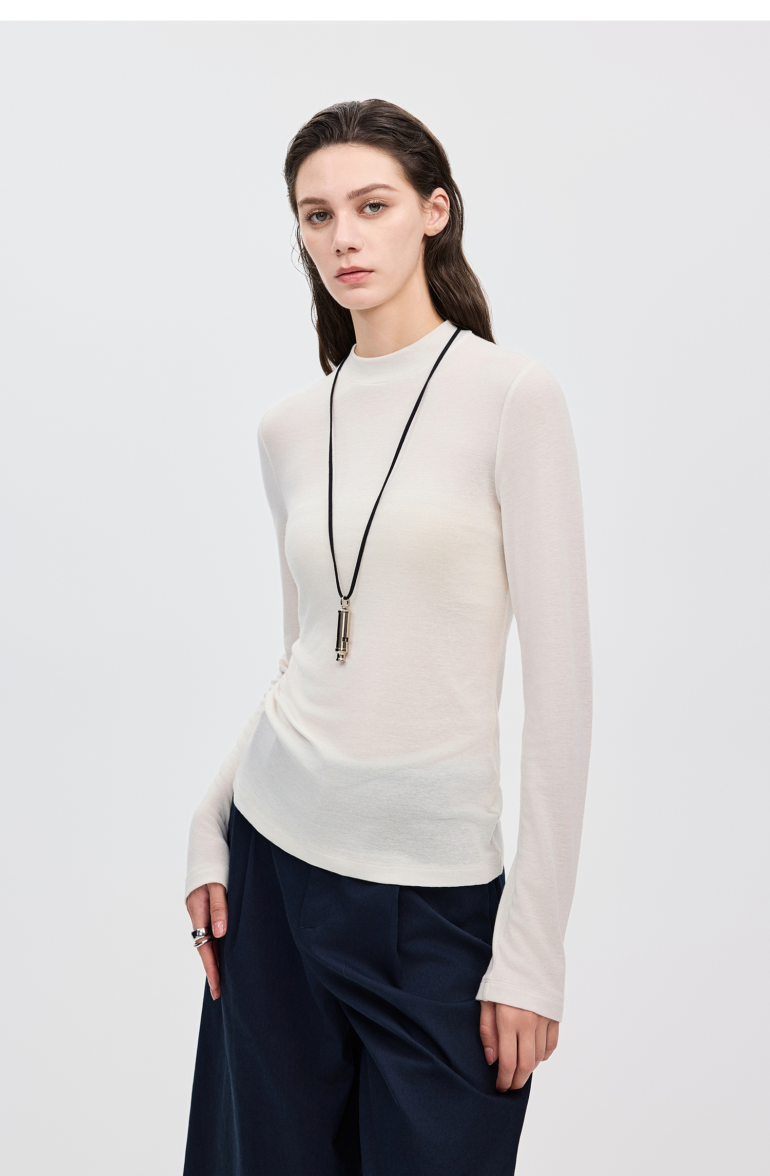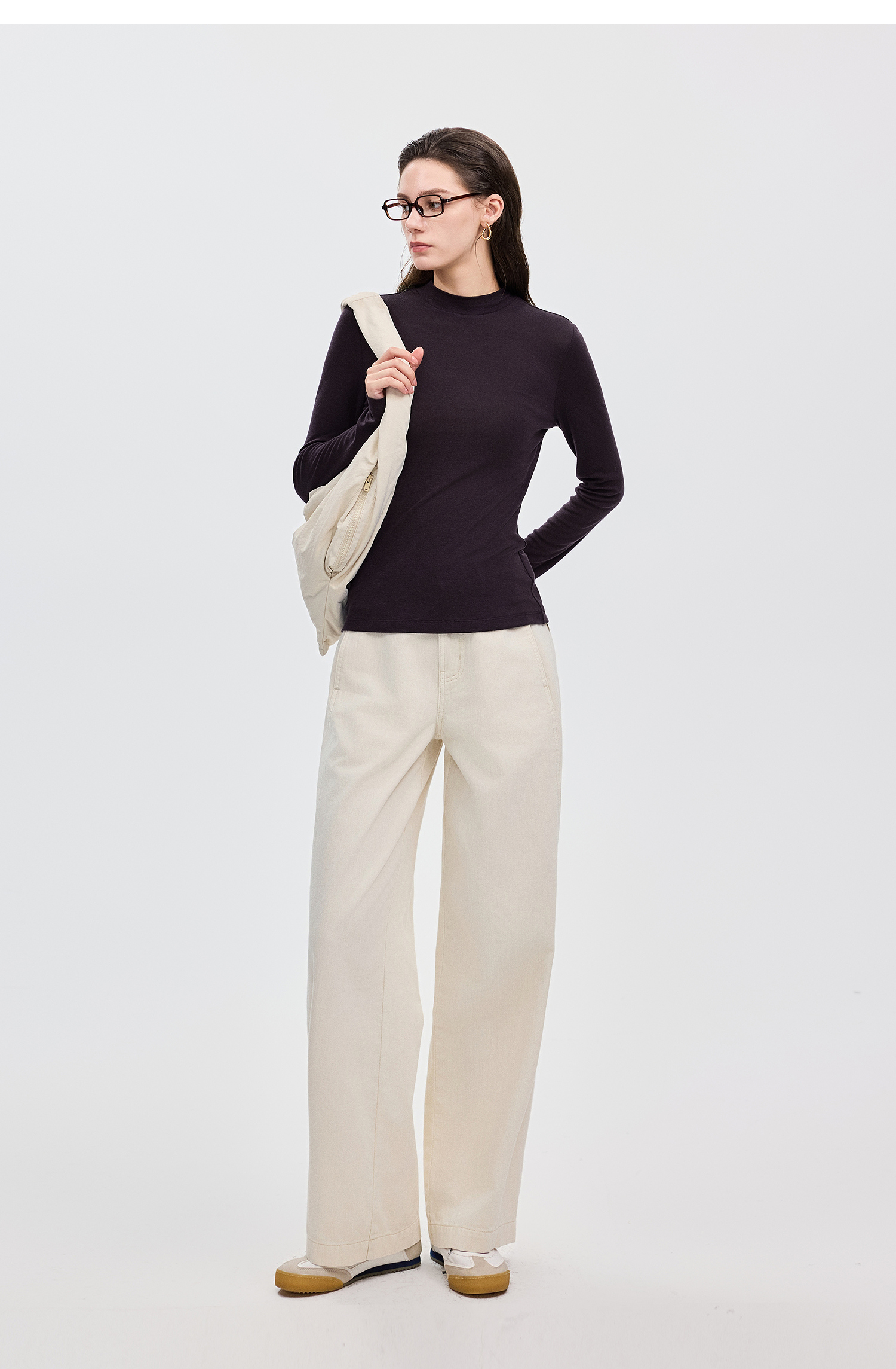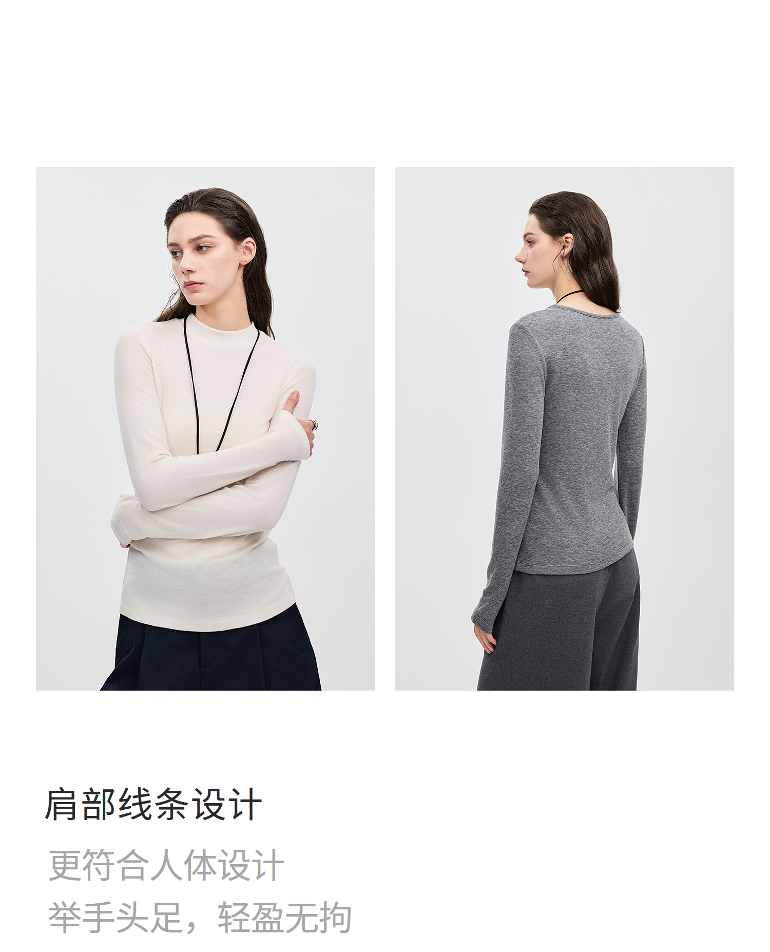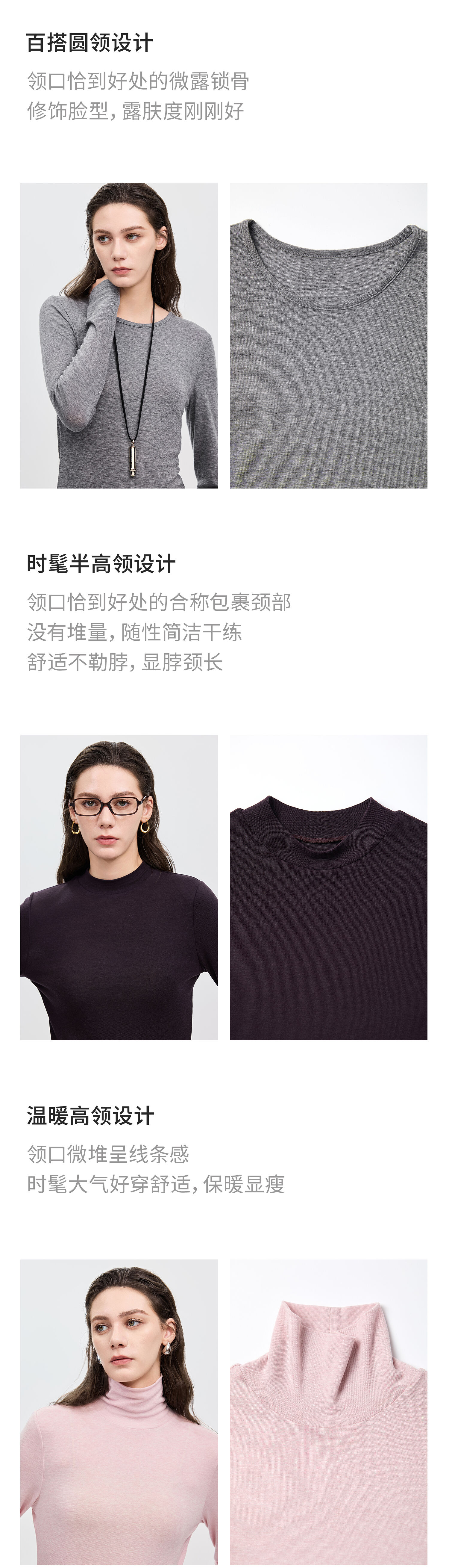 棉仓346601017-蓄热保暖长袖T恤女半高领 冬季美雅碧白色打底衫厚润内搭体恤