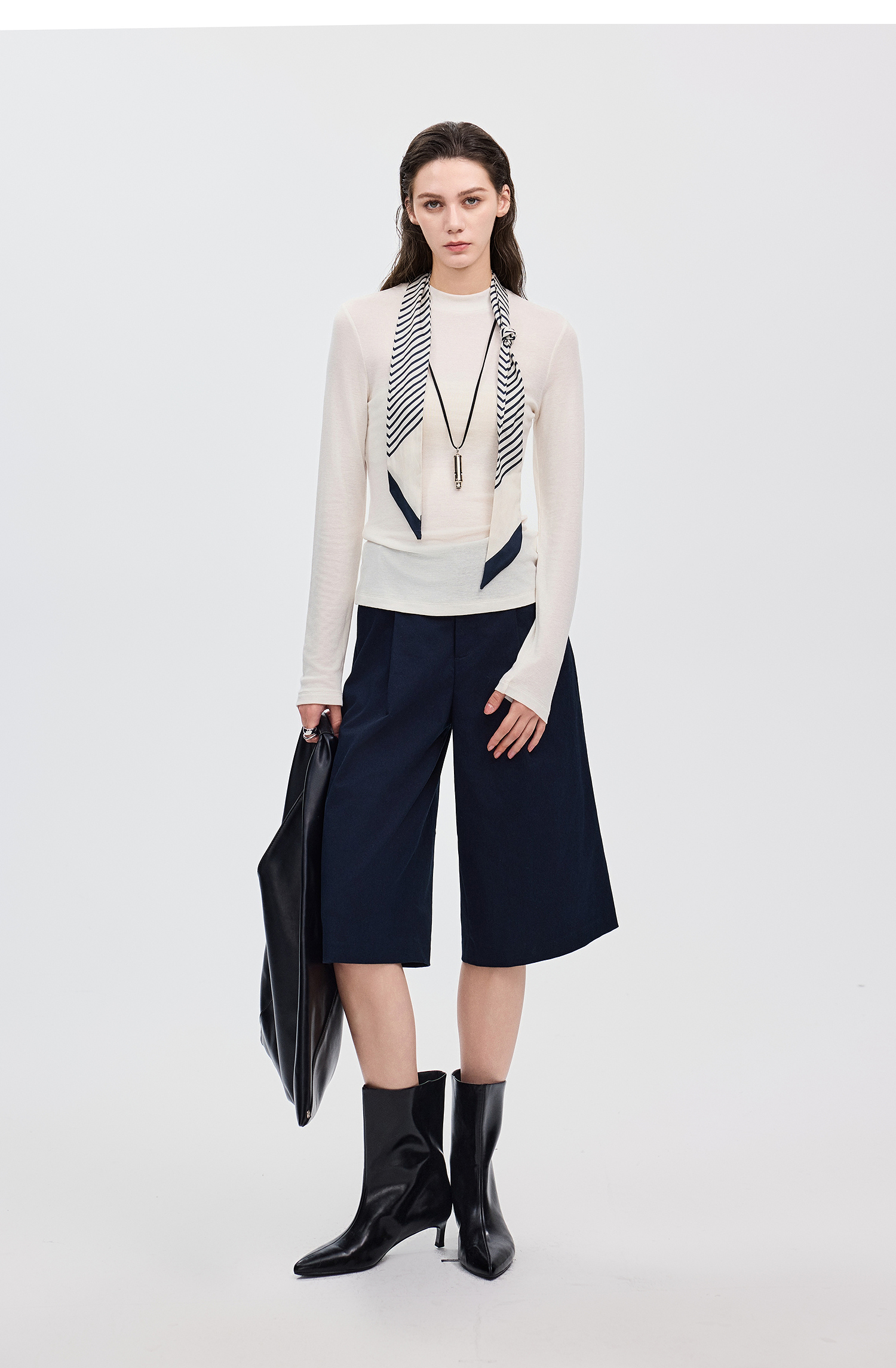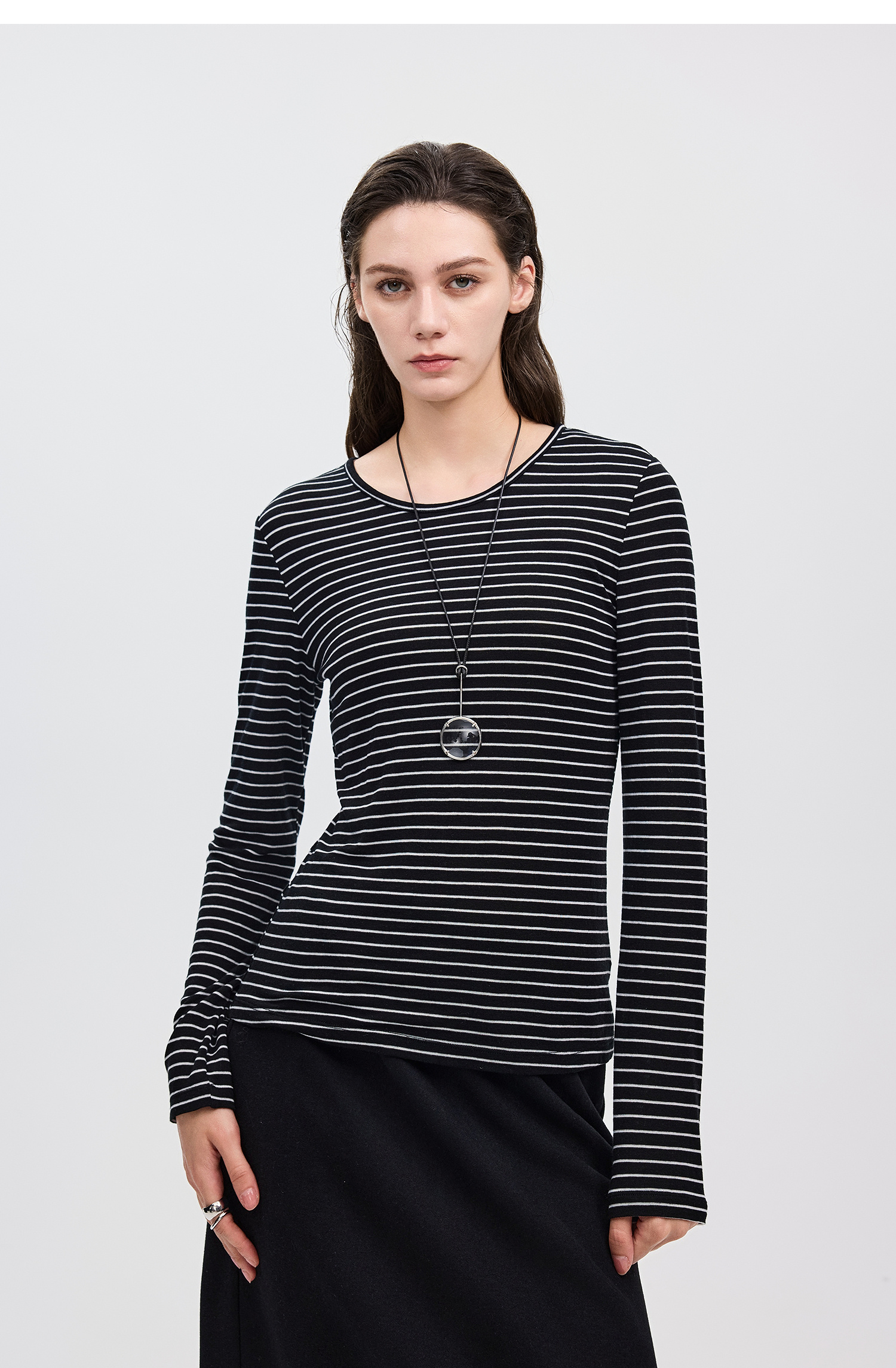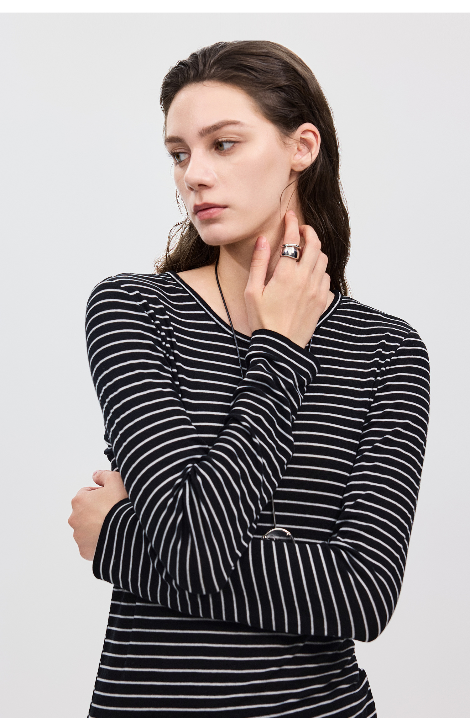 棉仓3431501010 24SS夏季新品多色镶边短袖T恤女真丝棉打底上衣