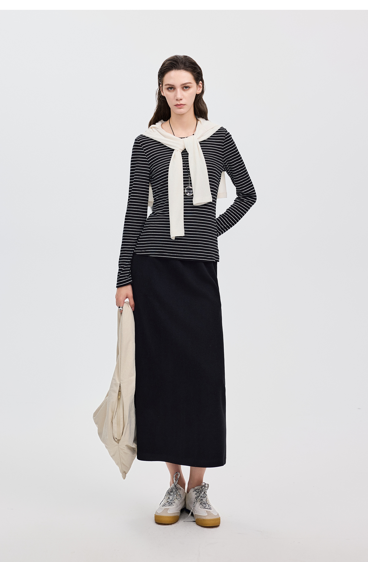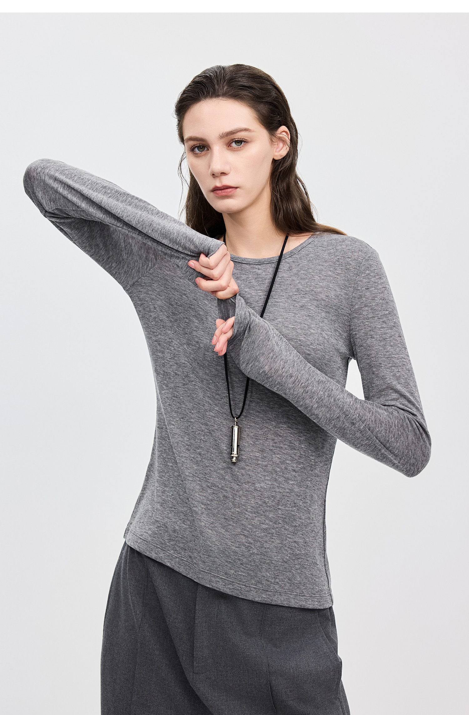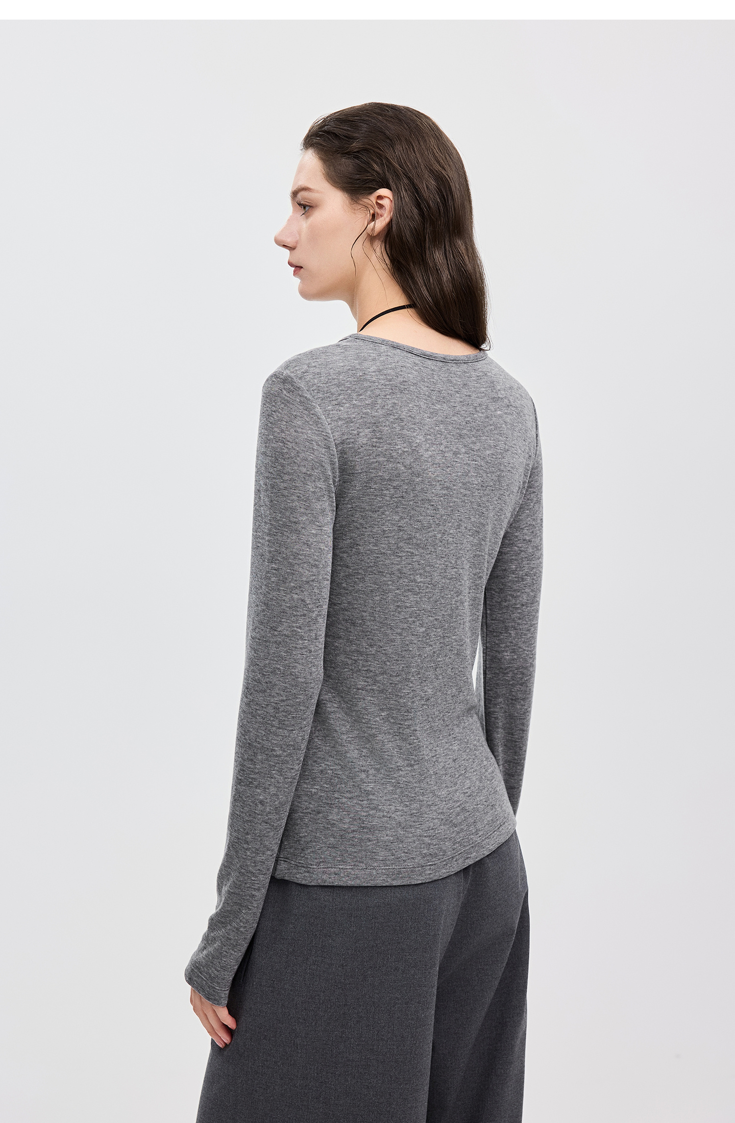棉仓3431501010 24SS夏季新品多色镶边短袖T恤女真丝棉打底上衣