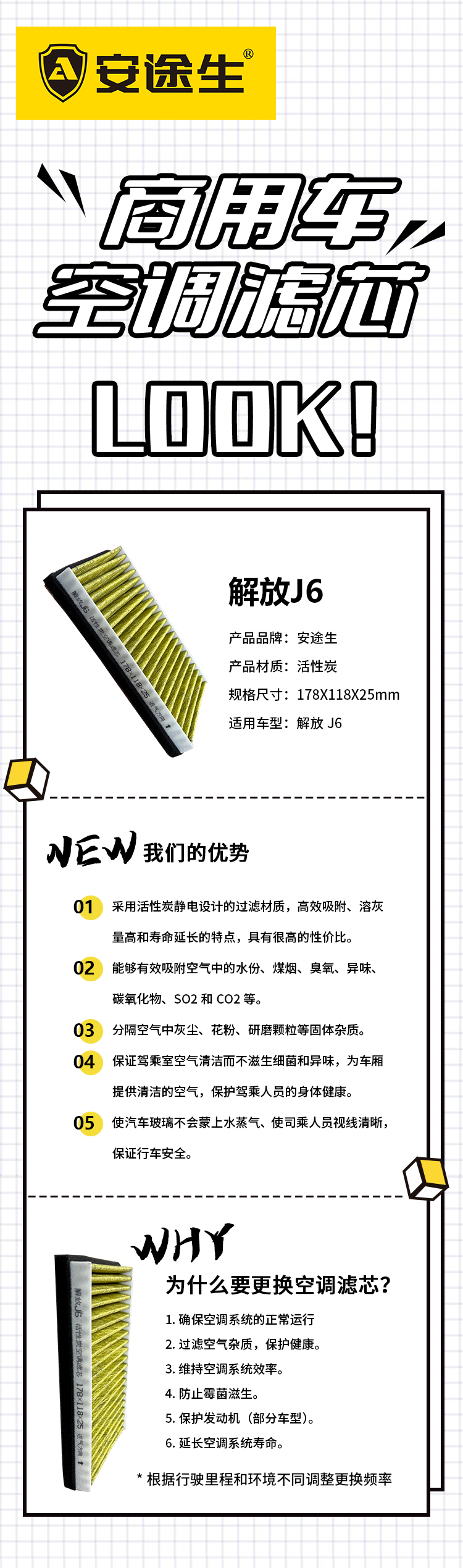 安途生解放J6活性炭空调滤芯长里程除异味防止霉菌商用车