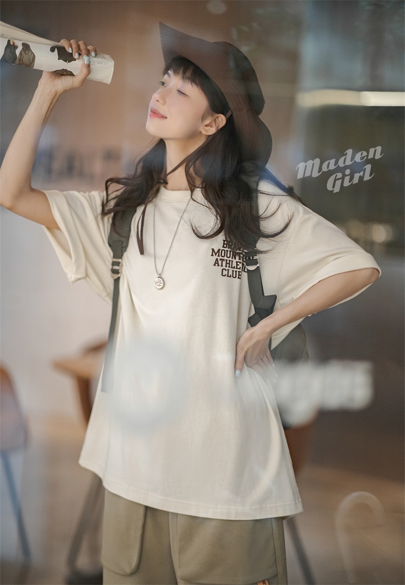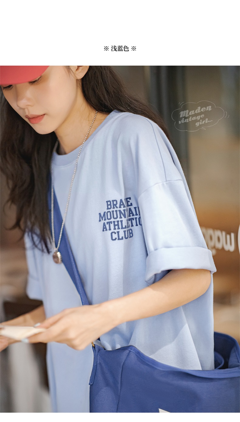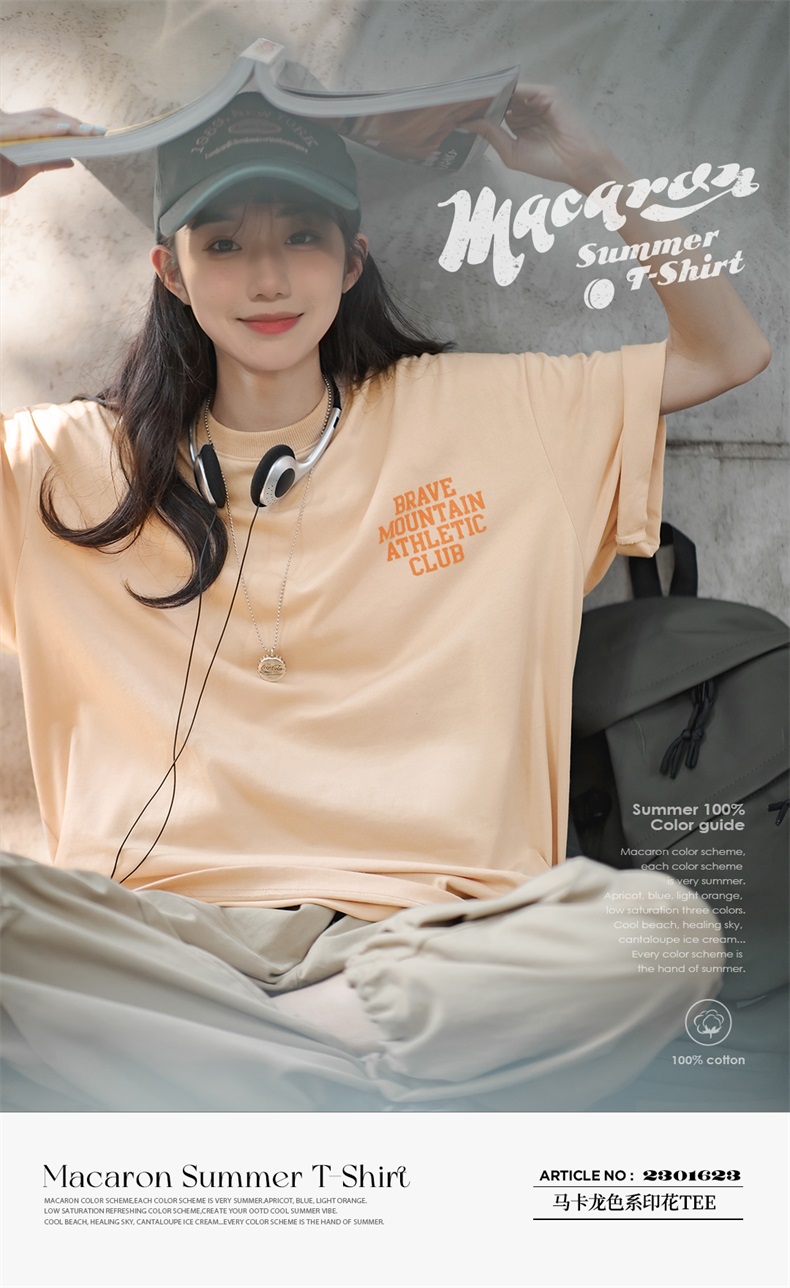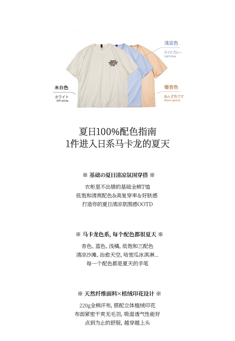 马登女装 美式休闲马卡龙色短袖t恤植绒字母印花全棉圆领体恤