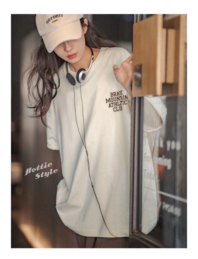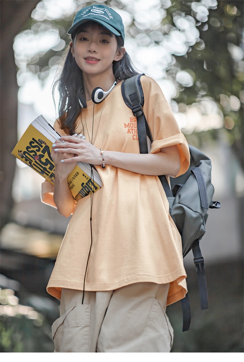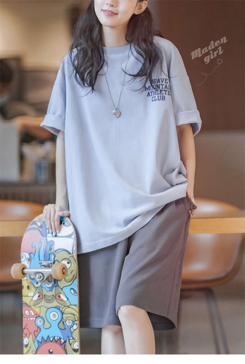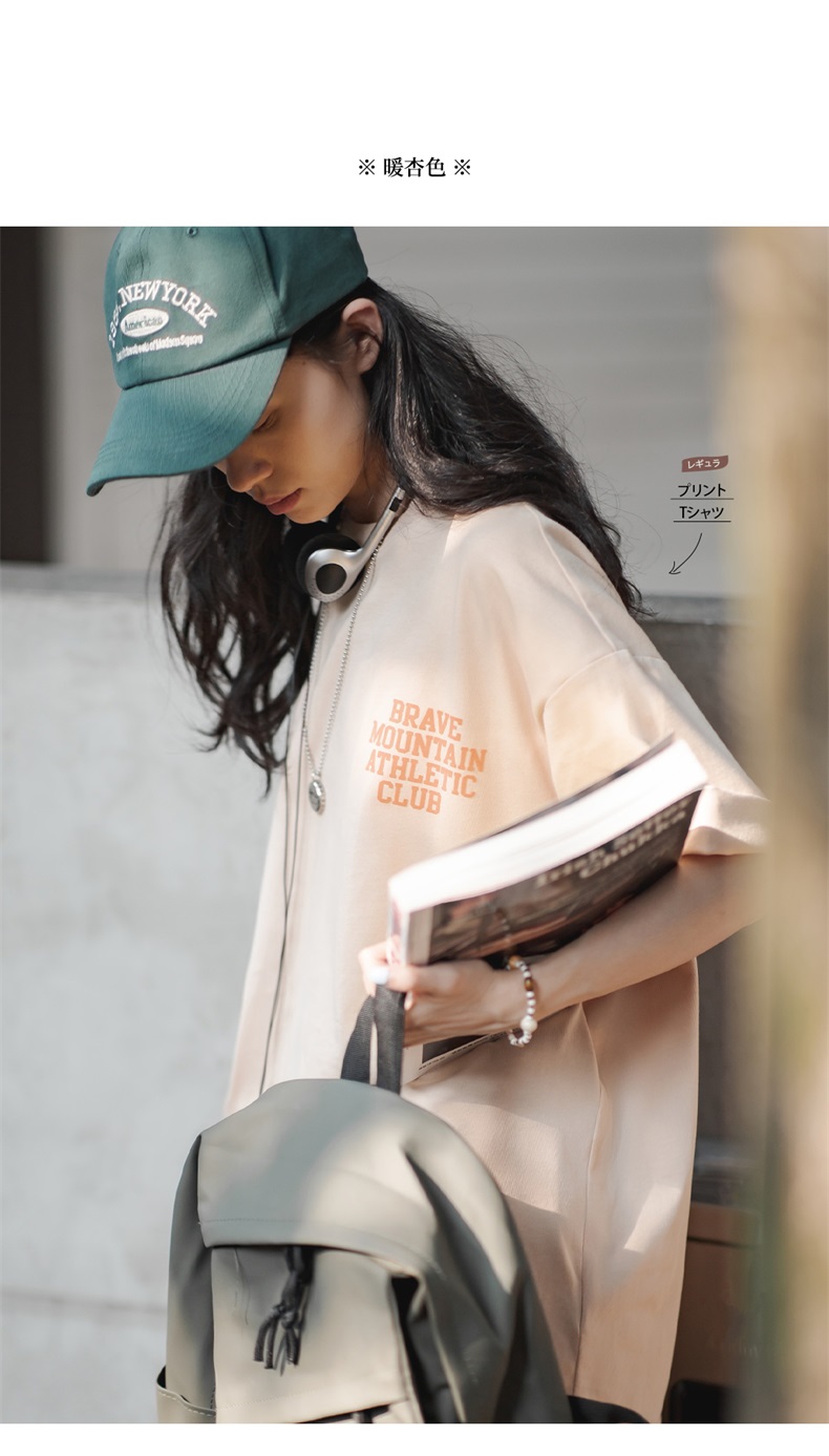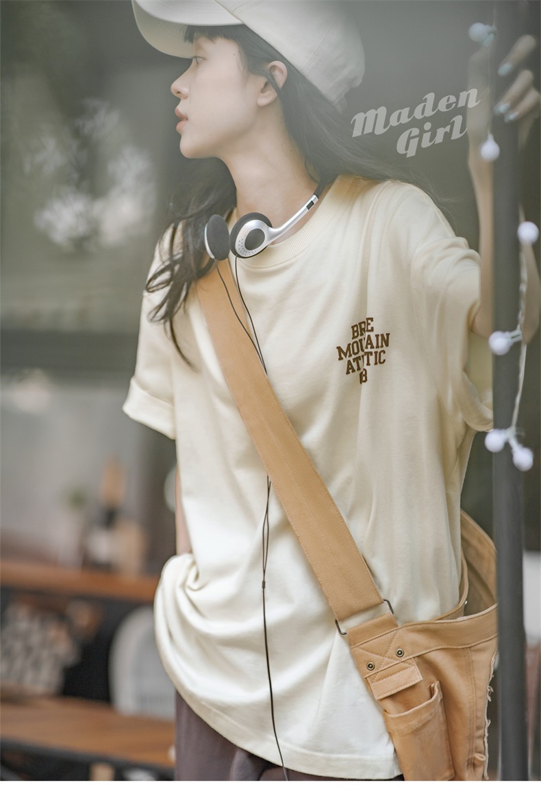 马登女装 美式休闲马卡龙色短袖t恤植绒字母印花全棉圆领体恤