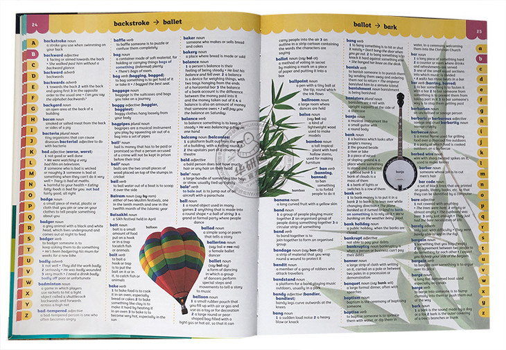 Oxford Illustrated Children's Dictionary《牛津图解儿童字典2018版》是一本易于使用的儿童英语词典,能够帮助孩子增加词汇量,提高单词拼写能力、写作和口语能力。全书收录了超过5万个单词,包括学校主题词汇、清晰易懂的单词定义、例句等;书中还提供了“字谜游戏”以及超过1000张全彩插图,辅助孩子更好地理解词汇的含义。版面设计一目了然,每一页都有“字母搜索栏”,方便孩子快速查阅单词。这是一本帮助孩子更好地完成家庭作业、提高英语水平的词典,可配合Oxford Illustrated Children's Thesaurus《牛津图解儿童英语同义词字典》使用。