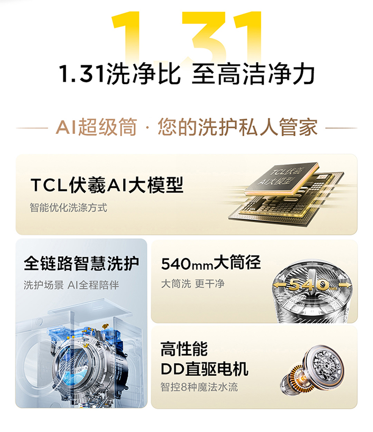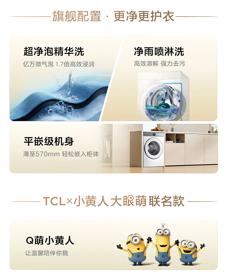 【新品上市】TCL小黄人·大眼萌AI超级筒T7R PRO 10公斤DD直驱变频滚筒 G100T7R Pro-DI