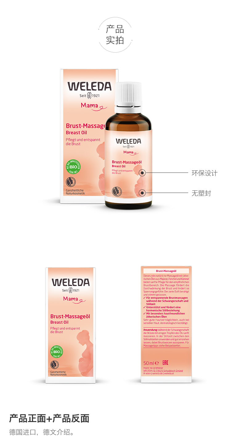 【菜鸟】Weleda维蕾德 乳房按摩油疏通乳腺 提升乳房弹性 防下垂 50ml