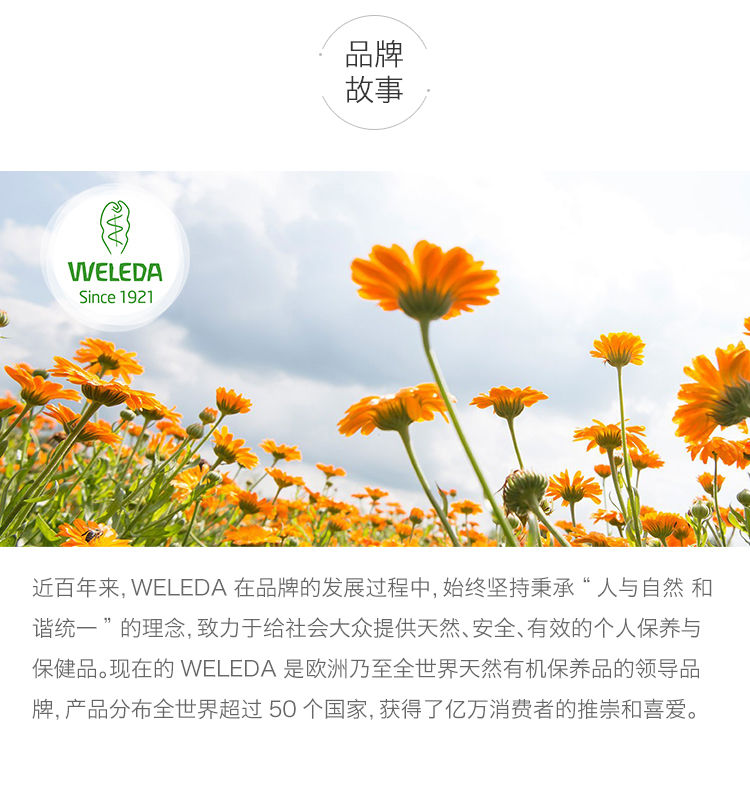 - 全球领先的有机护肤品牌WELEDA (维蕾德)。1921年由人智学创始人STEINER创建于瑞士,在德国,瑞士,法国拥有大型的有机种植园。帮助人类以最自然的方式保持健康。倡导 人与自然,和谐统一。
