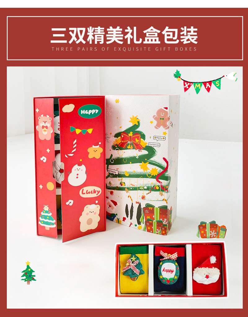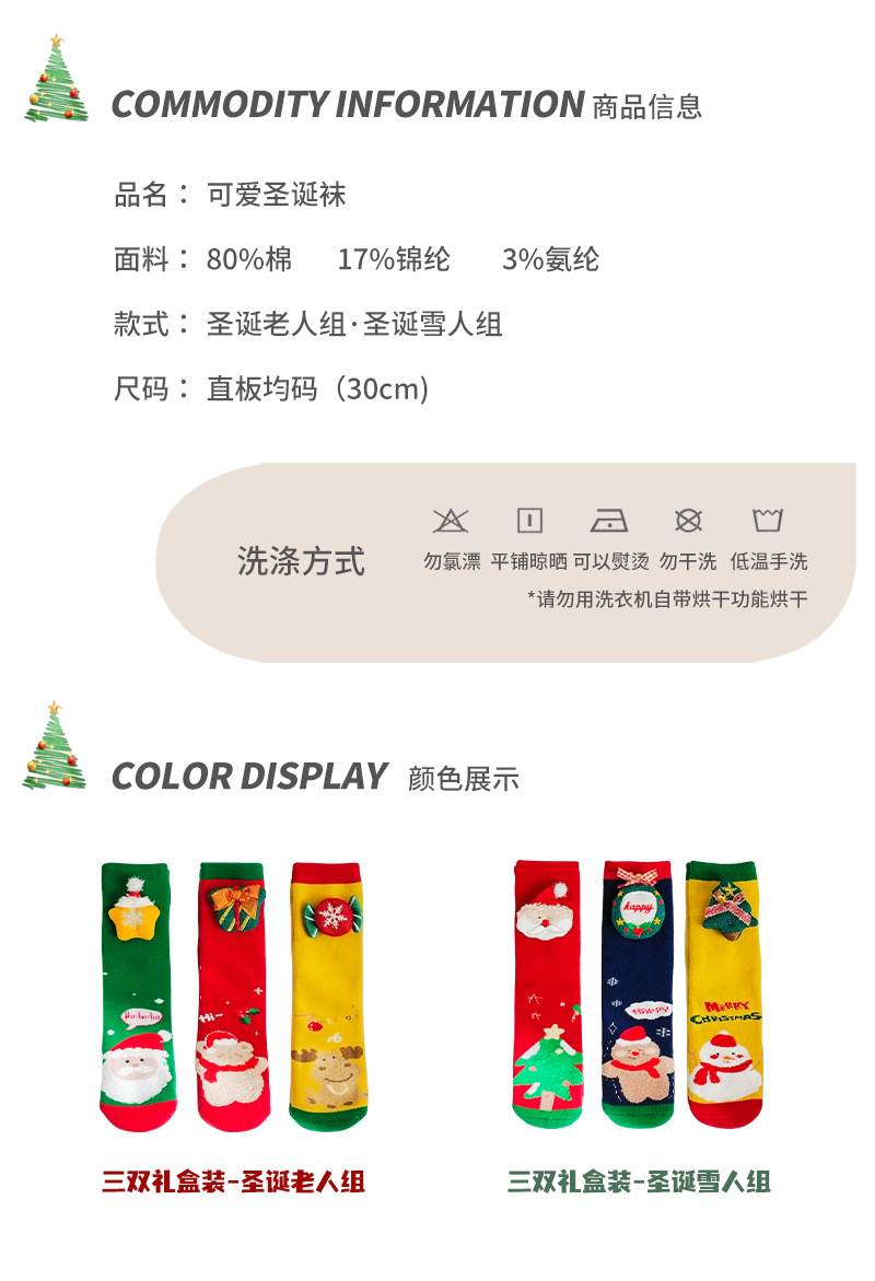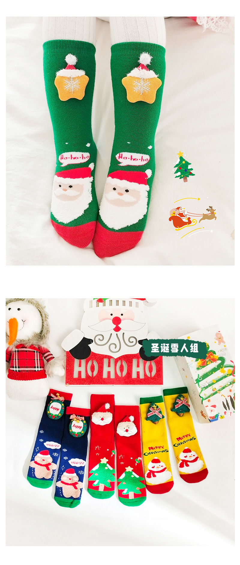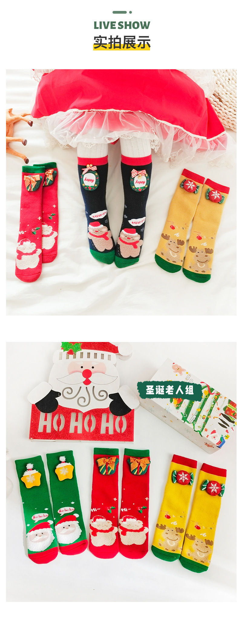【3双礼盒装】21秋冬新款儿童圣诞袜3双礼盒毛圈加厚卡通保暖儿童袜子 韩版童袜