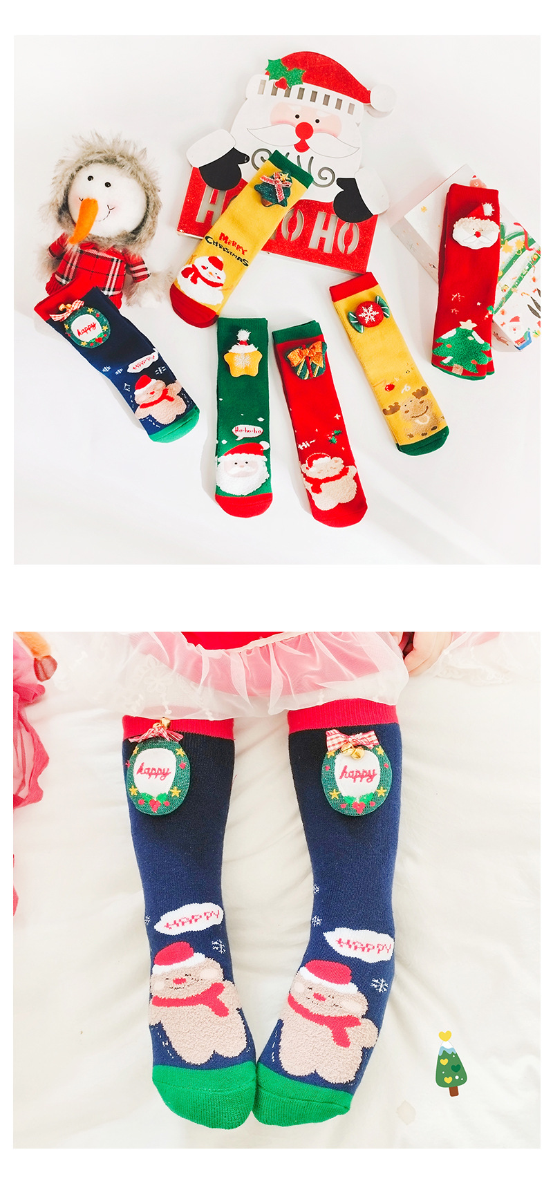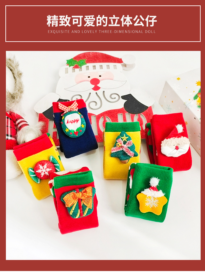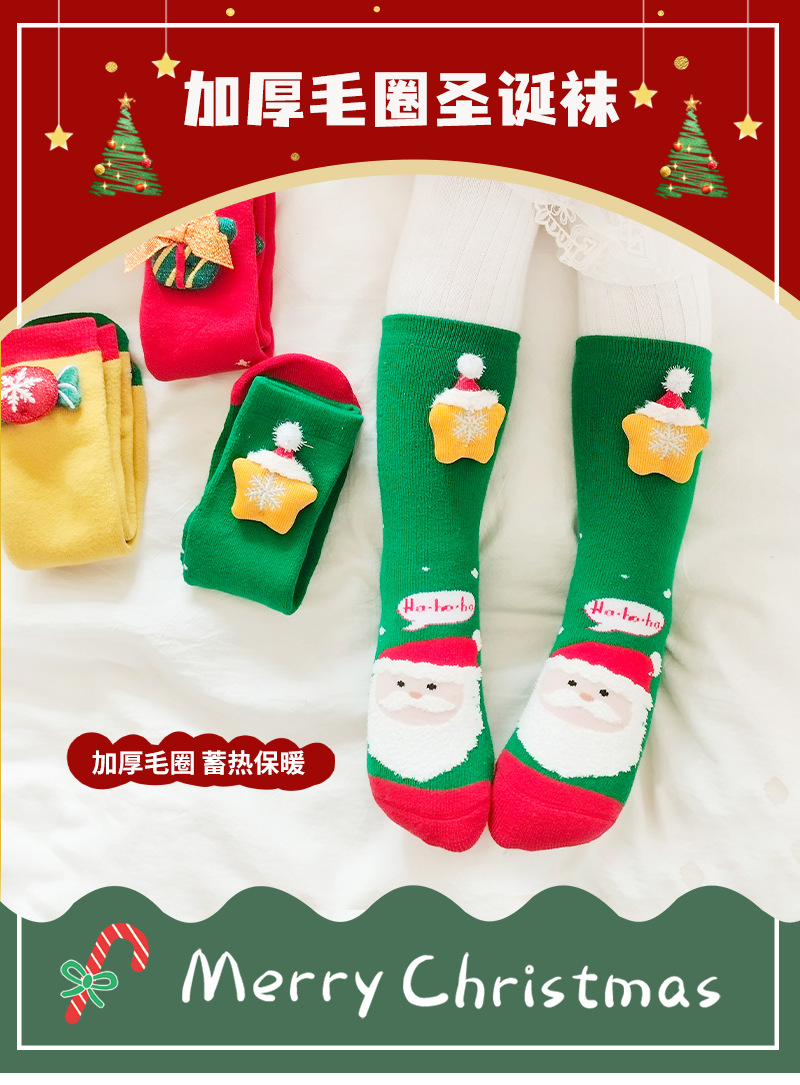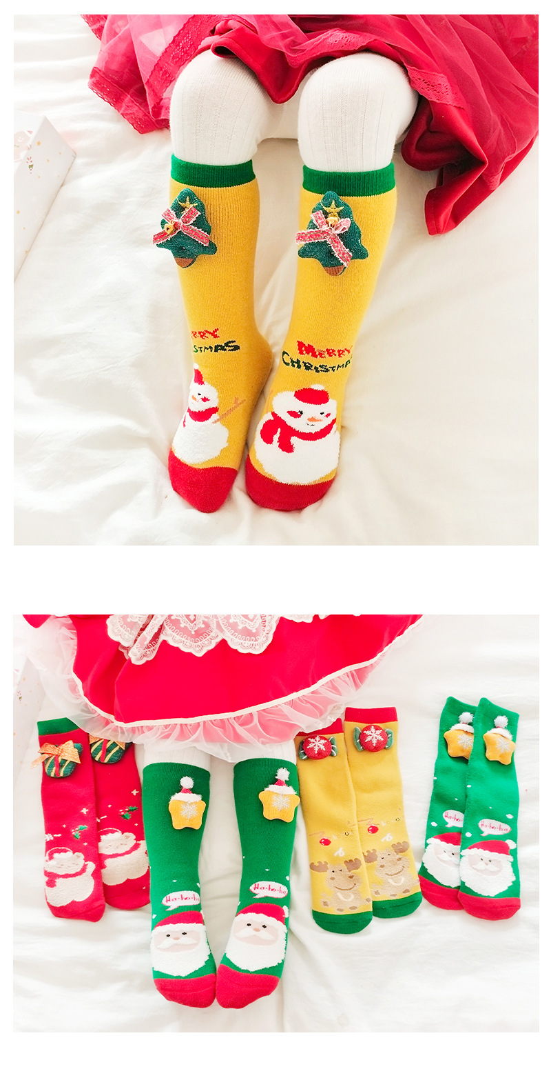 【3双礼盒装】21秋冬新款儿童圣诞袜3双礼盒毛圈加厚卡通保暖儿童袜子 韩版童袜