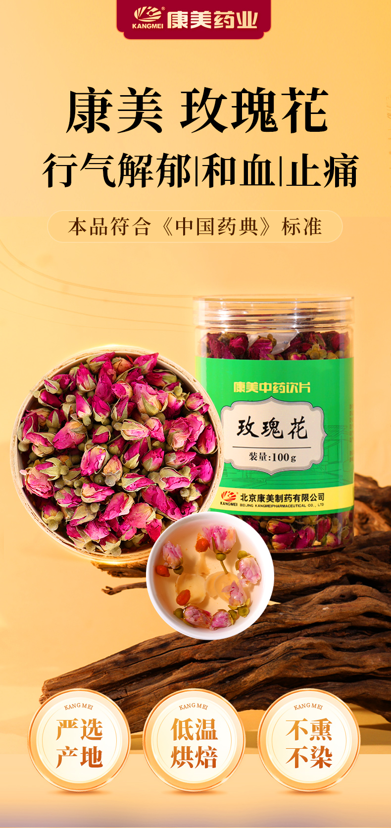 康美药业玫瑰花100g/瓶 药食同源罐装中药饮片泡水可搭配枸杞菊花