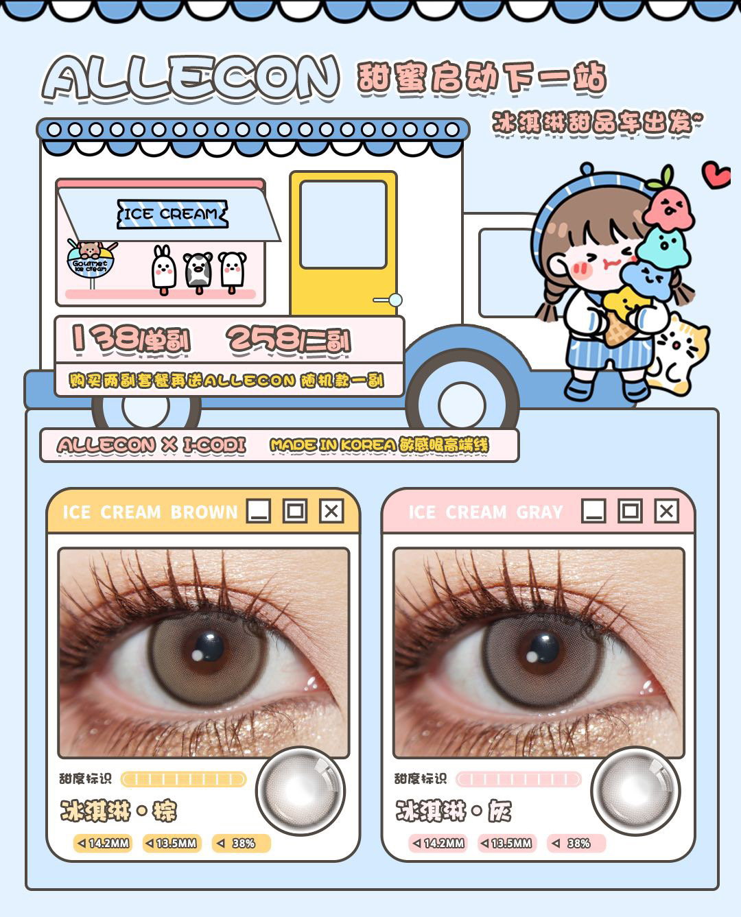 Allecon· 年抛 冰淇淋棕/灰 王走走点赞10w+ 升级版狗狗眼无辜水润感十足/14.2/备注双眼度数