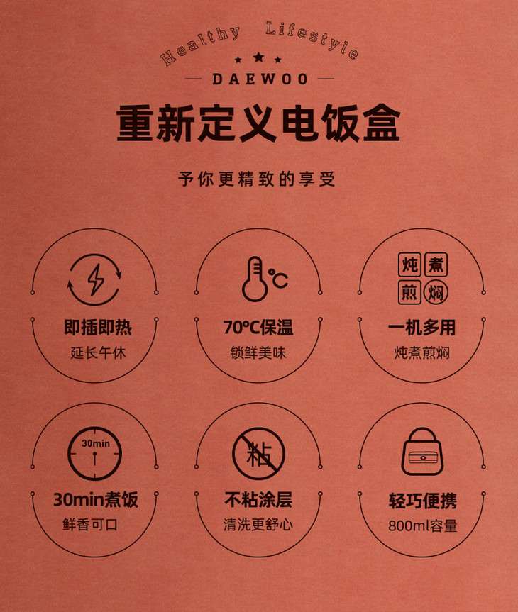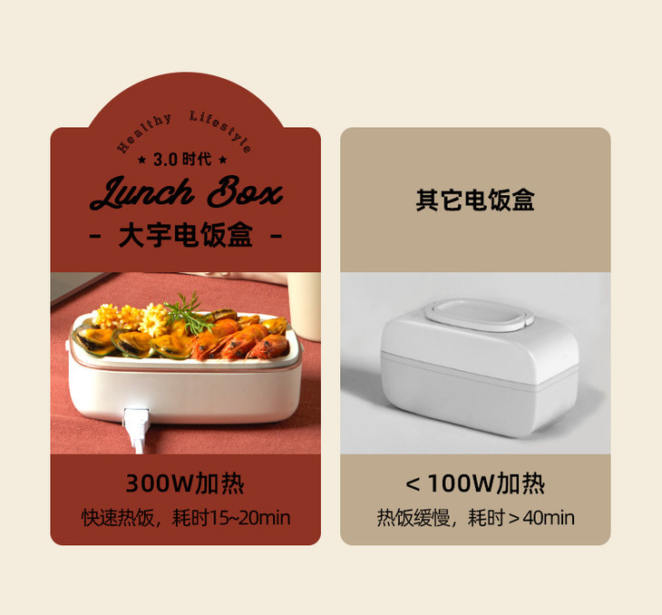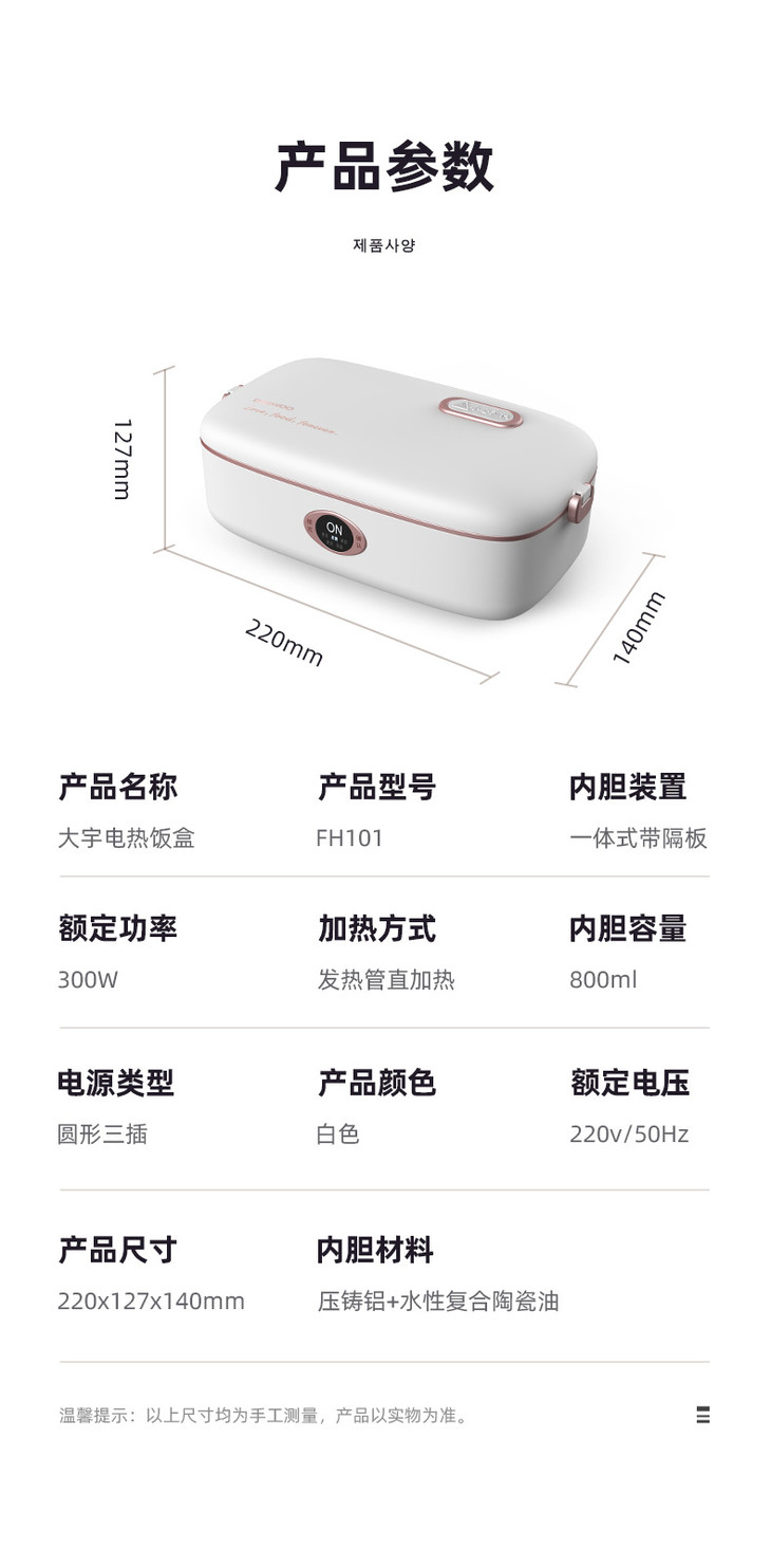 *大宇无水电热饭盒可插电保温便携便当盒自热上班族带饭神器免注水