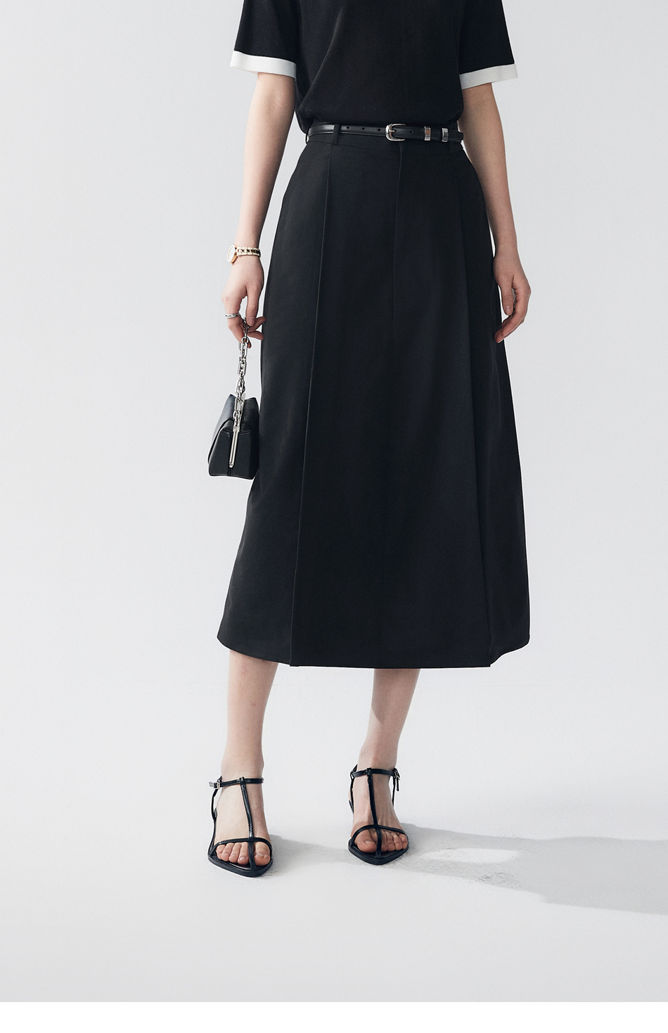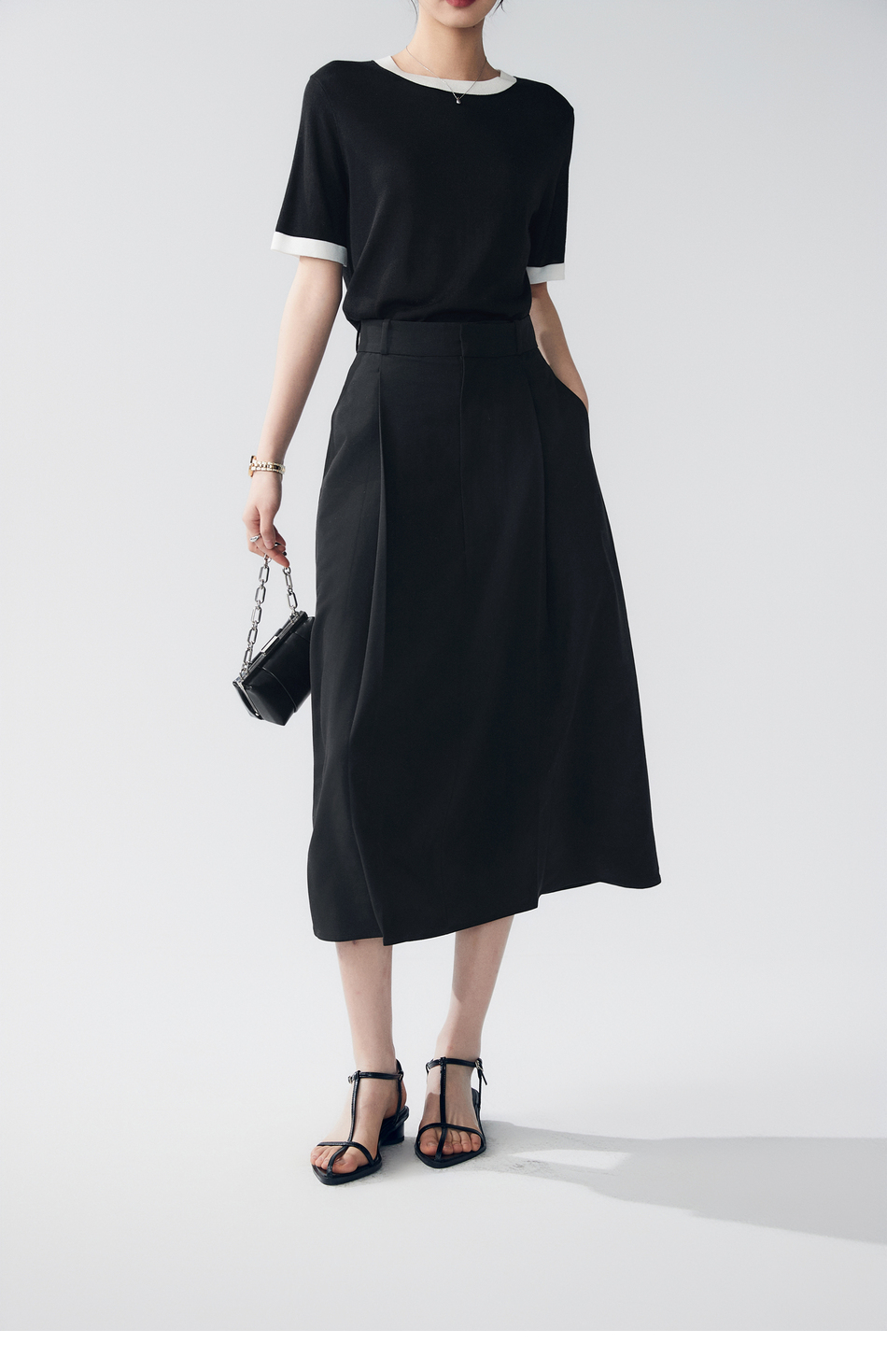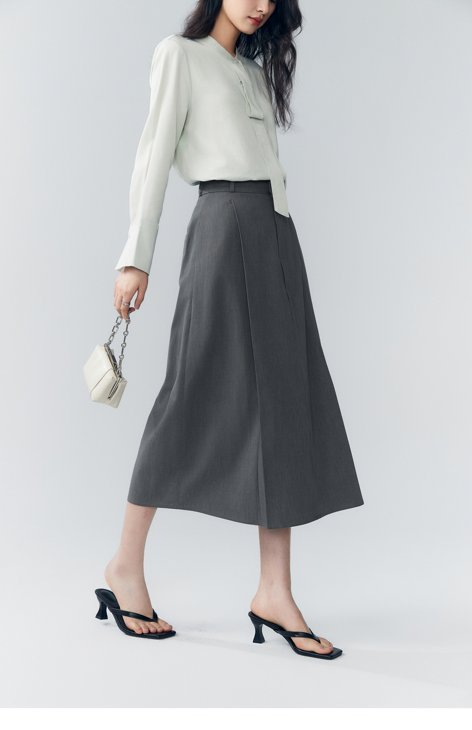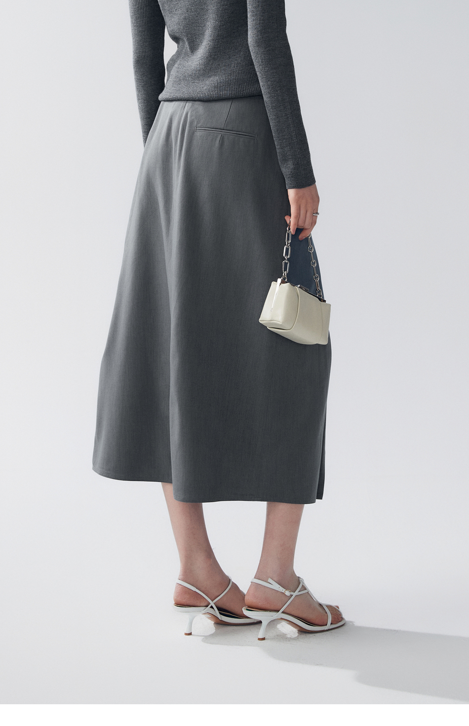 棉仓363617022-初棉褶皱肌理缎面A字及踝半身裙