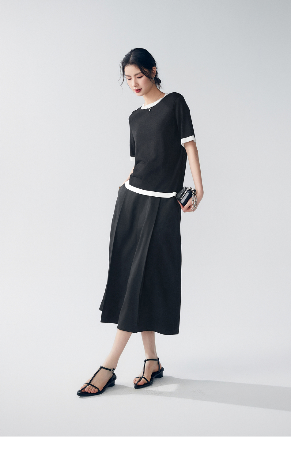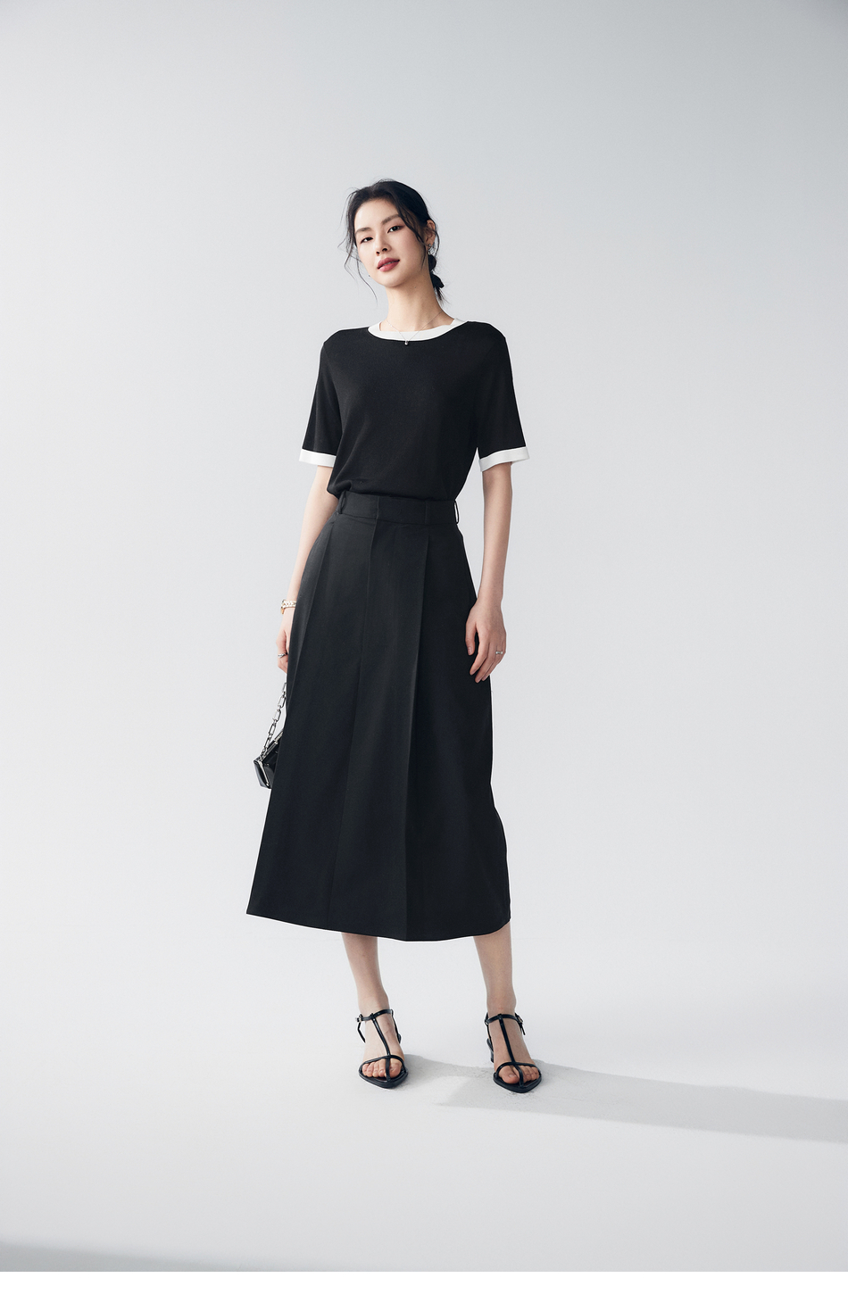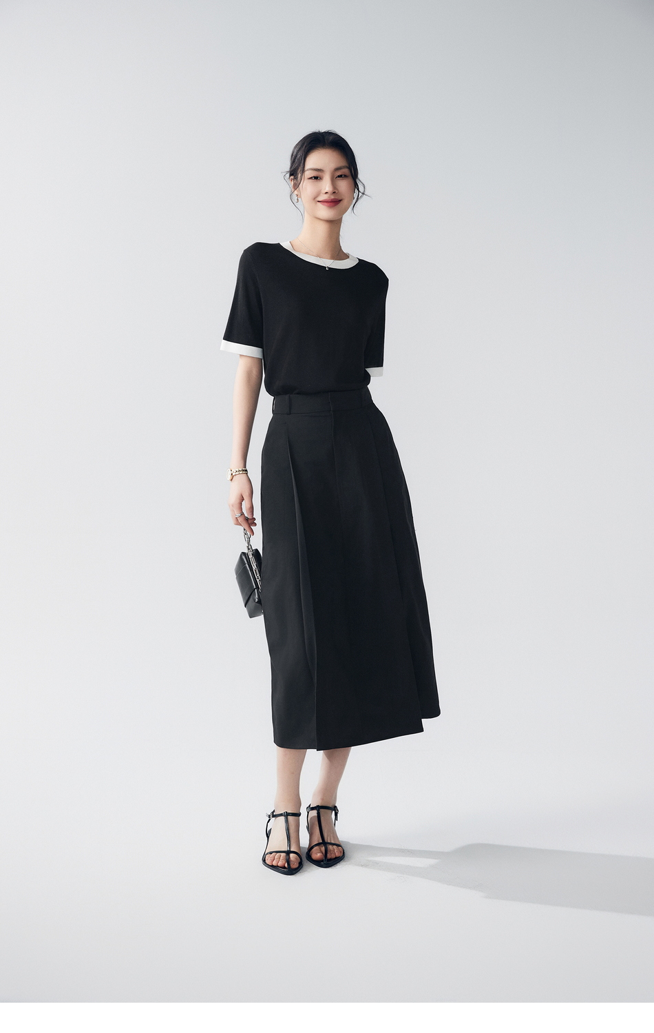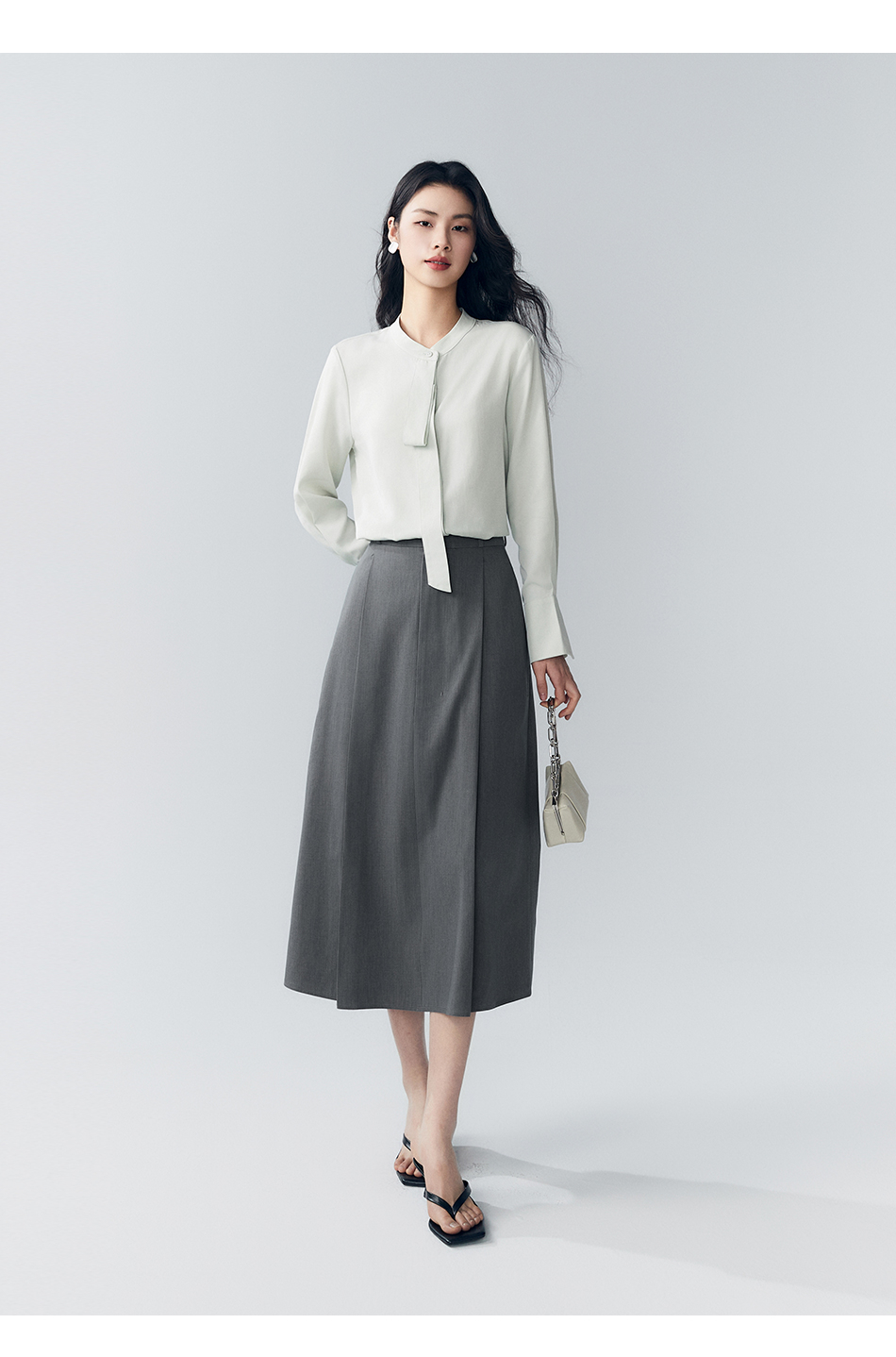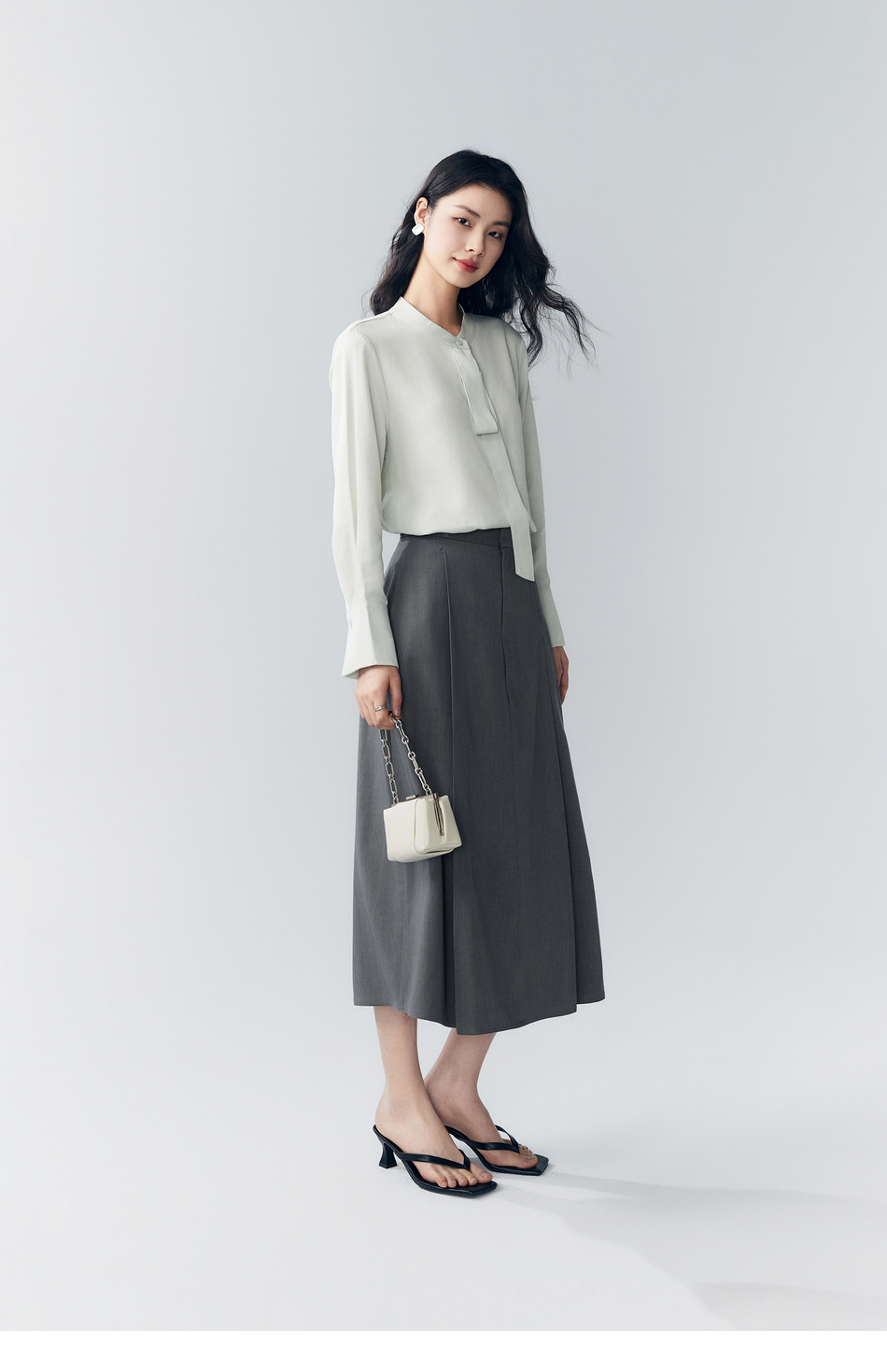 棉仓363617022-初棉褶皱肌理缎面A字及踝半身裙