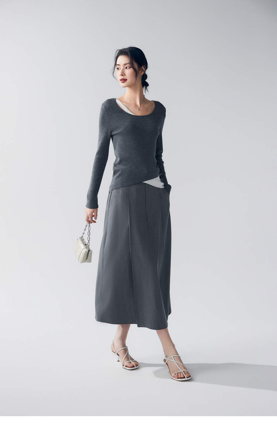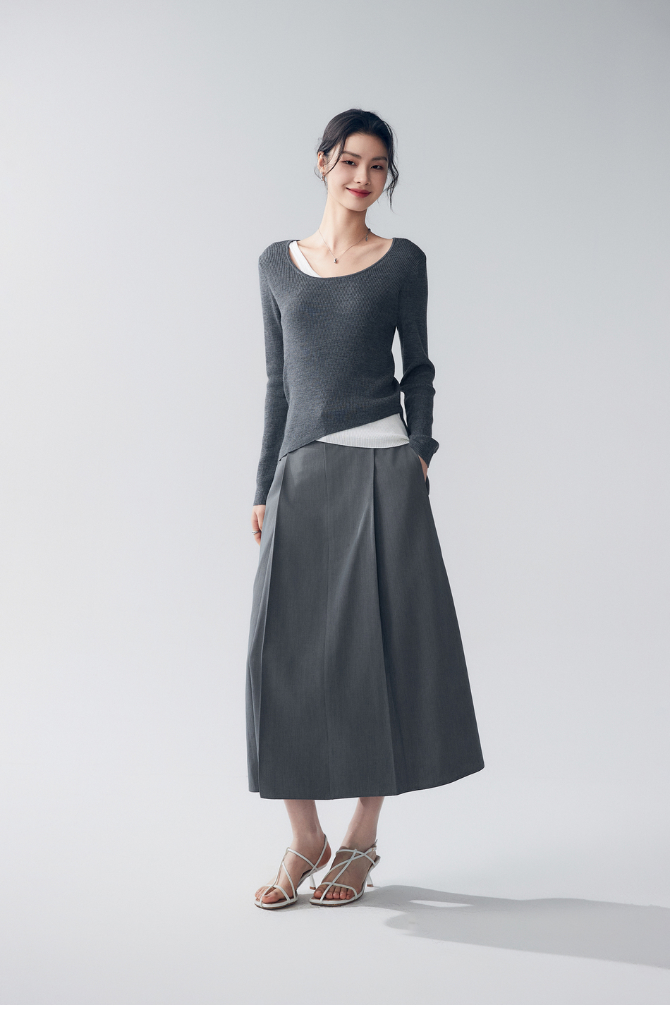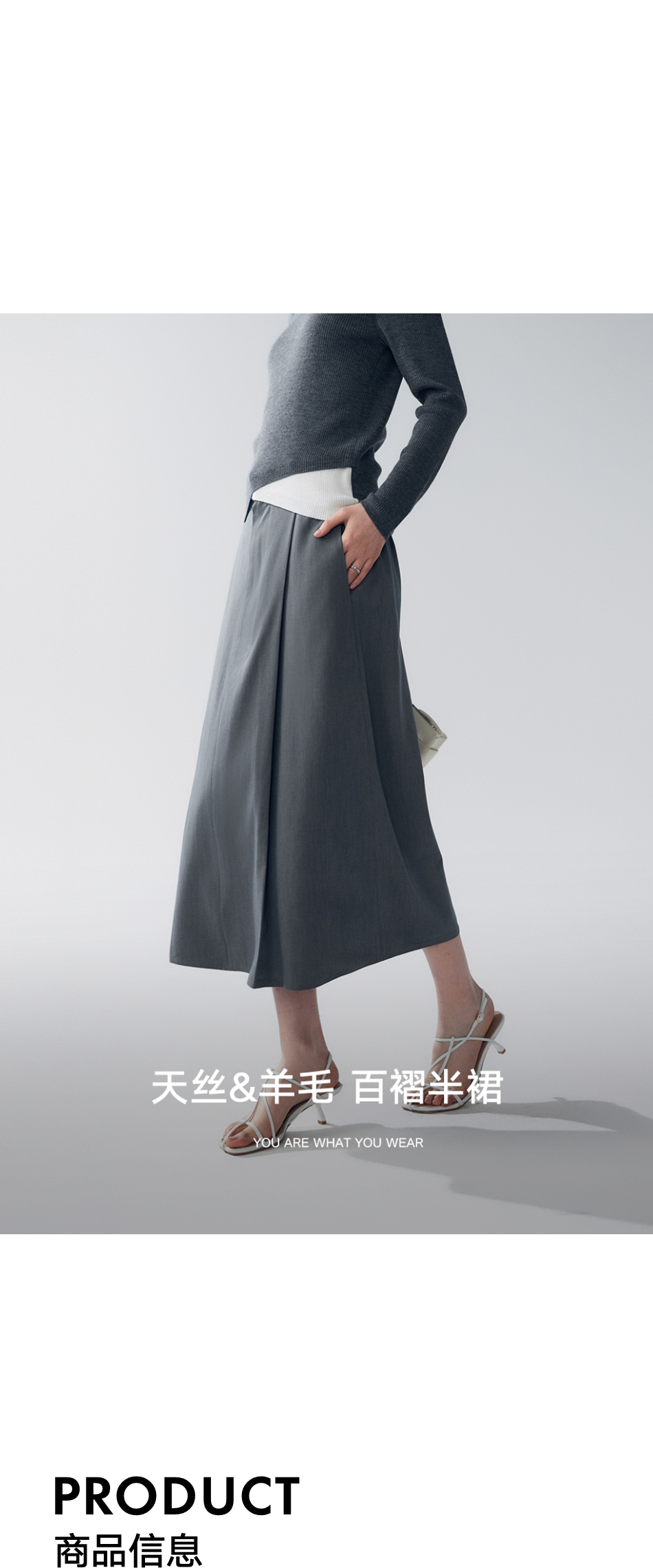 初棉353617005-天丝羊毛百褶显瘦长裙