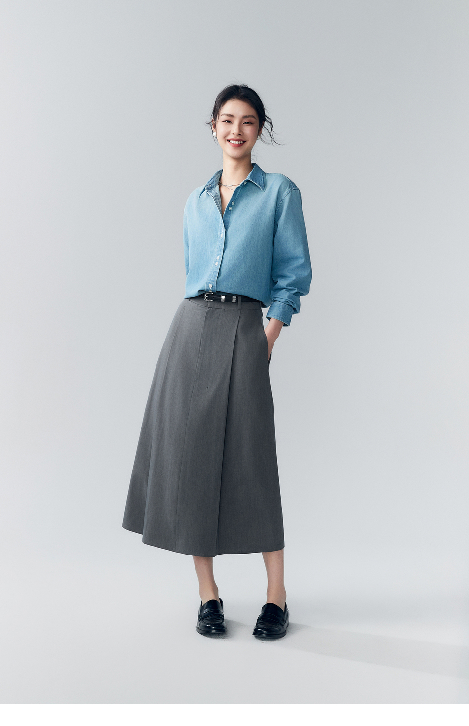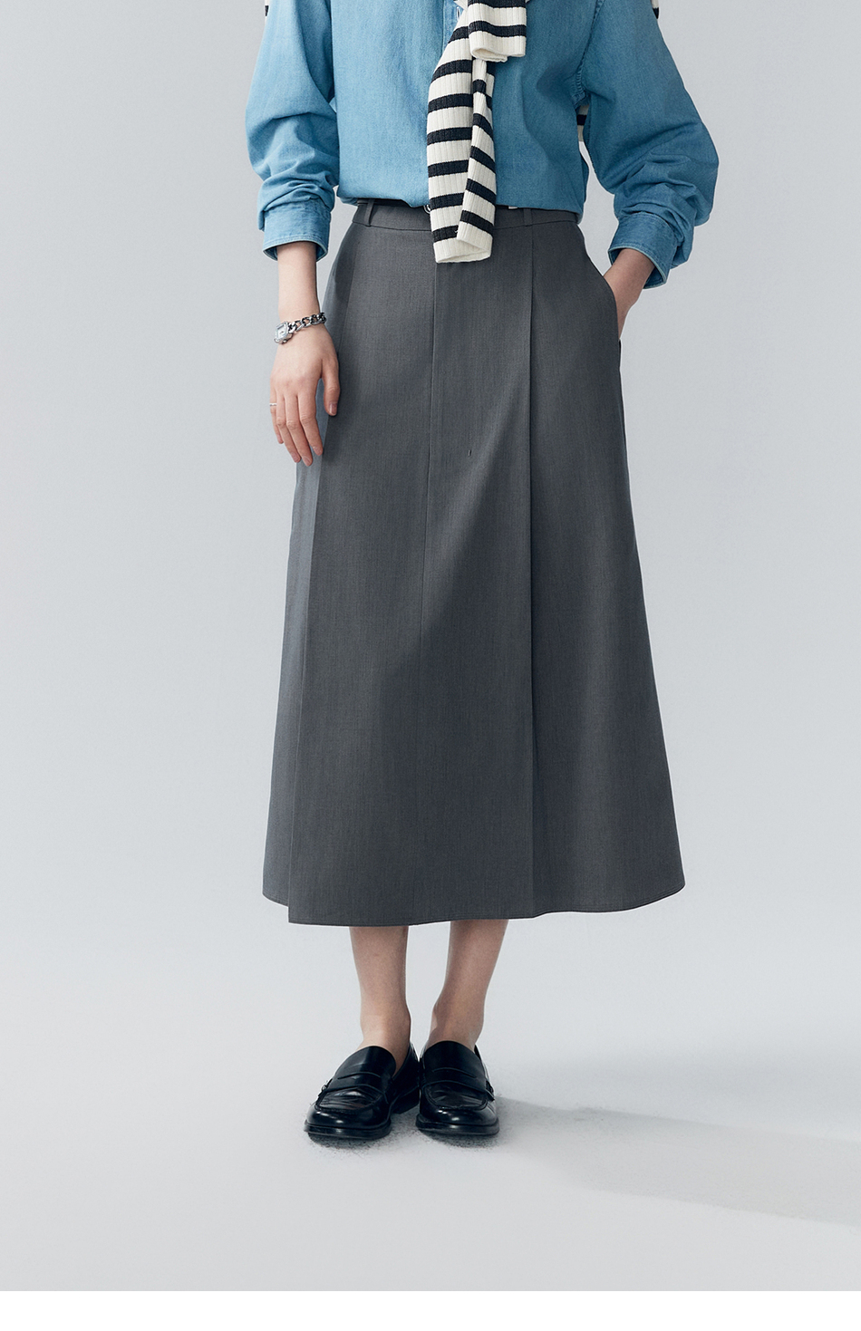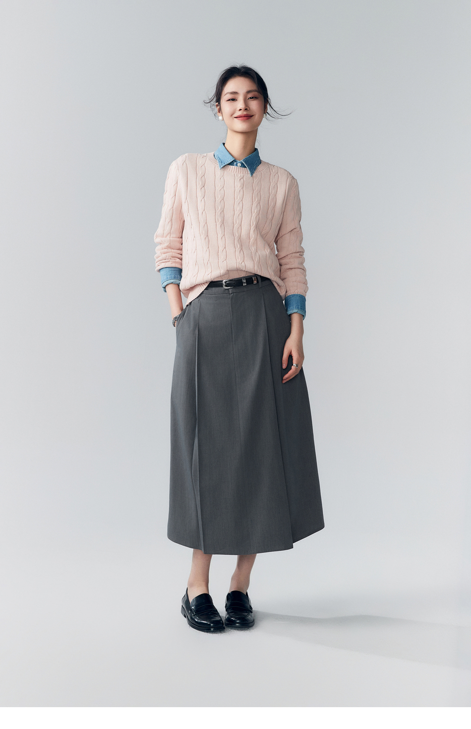 初棉353617005-天丝羊毛百褶显瘦长裙