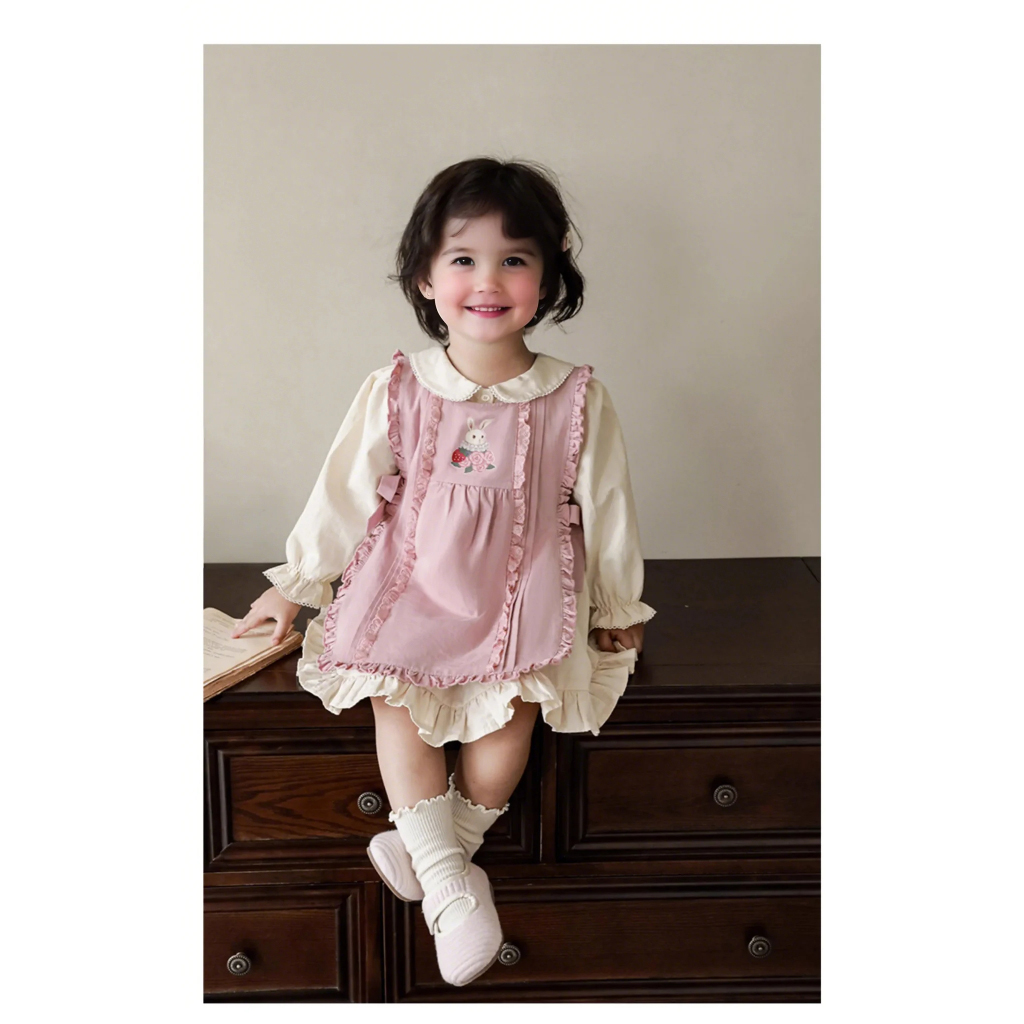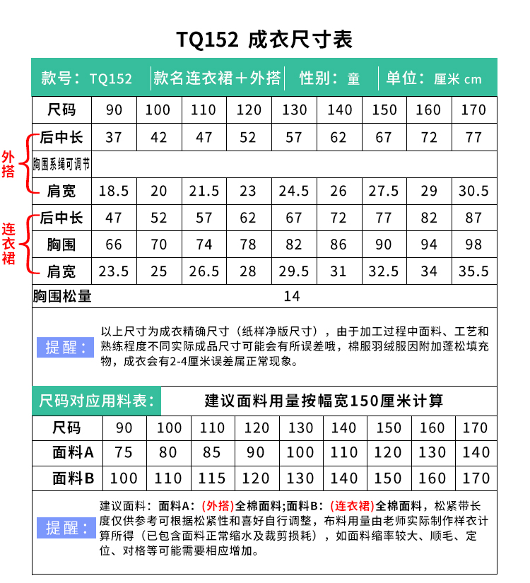 裁缝学苑TQ152娃娃领连衣裙纸样儿童木耳边无袖背心罩裙套装样板