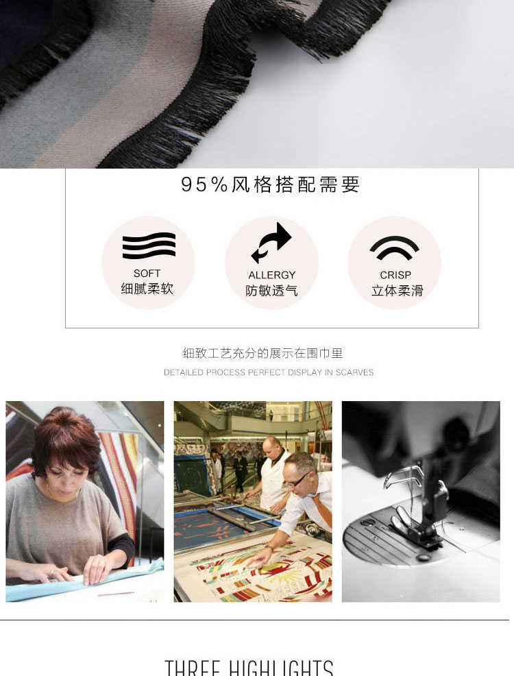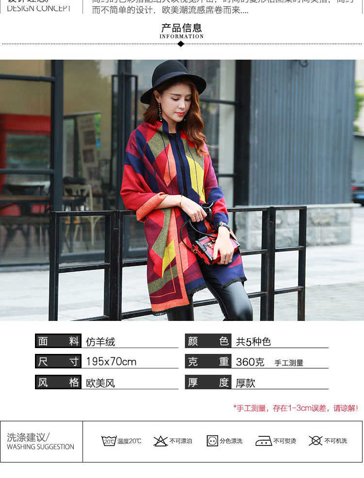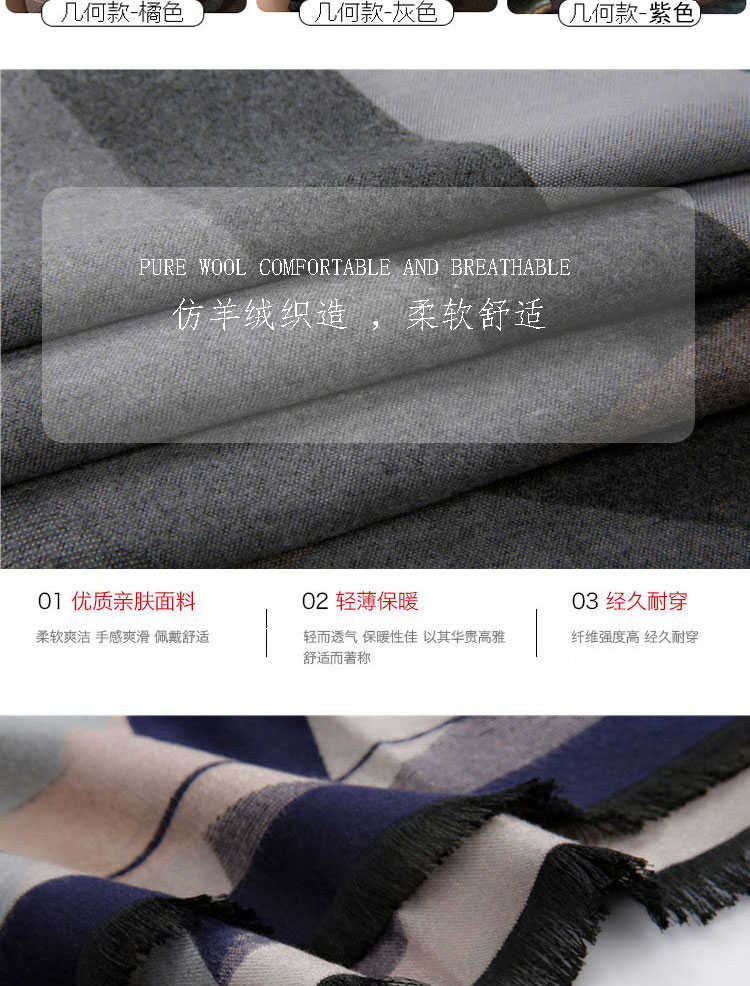羊粘毛材质,面料柔软,并且不是很薄的那种面料哦,有适中的厚度,当作一件披肩防寒用也非常合适。表面有细腻的绒毛,触感丰满,温暖,色泽自然柔亮,品质感非常明显。温馨提示:尺寸:200CM*70CM 重380g 手工测量可能存在误差!柔软手感多款可选品质保证!
