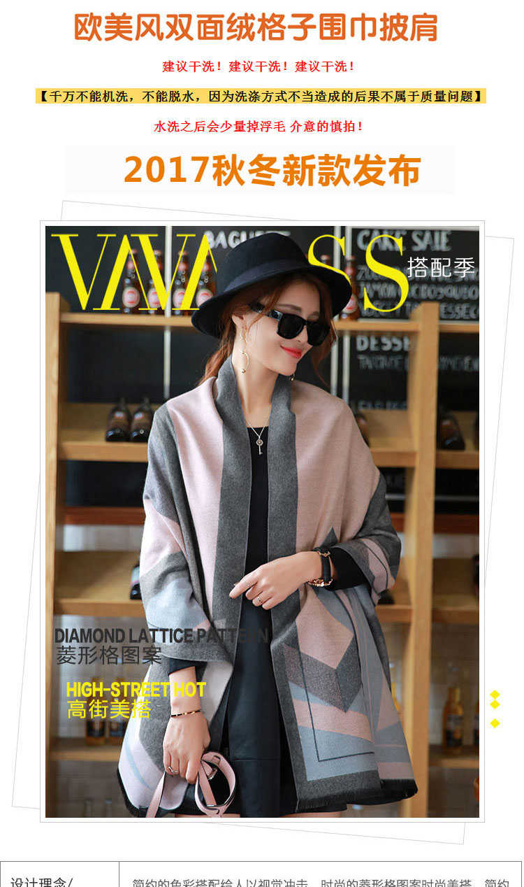 羊绒加厚围巾女保暖办公室空调房格子披肩两用