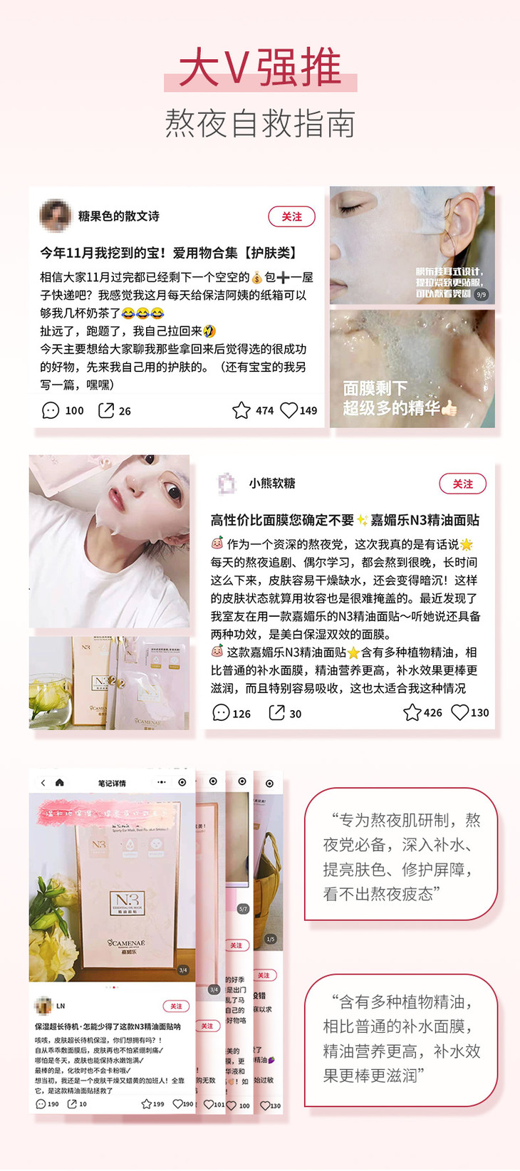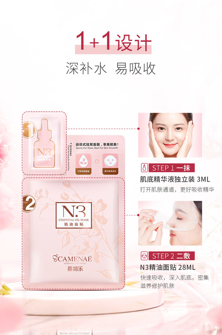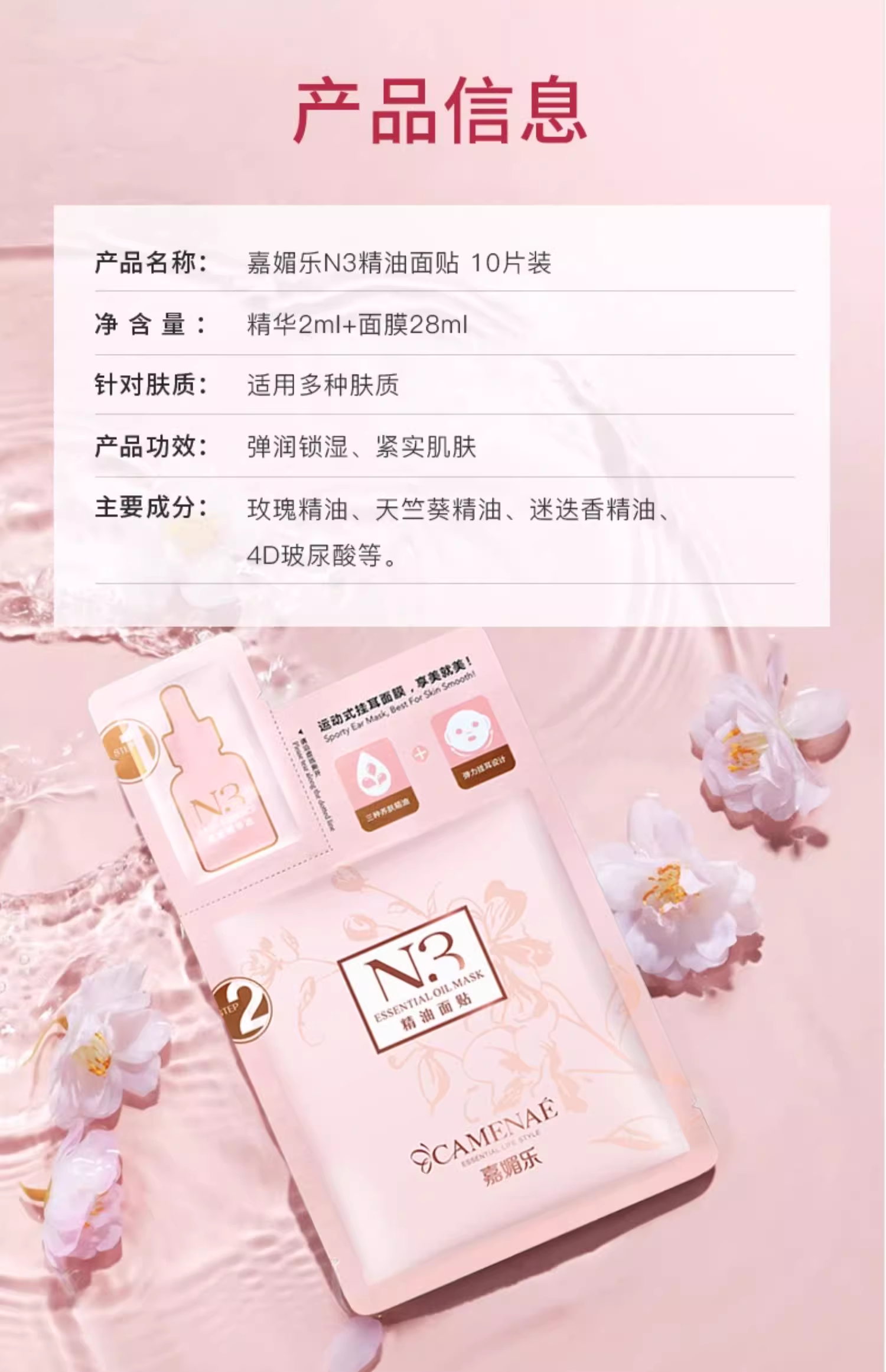 【双12大促】嘉媚乐N3精油面贴 紧致弹嫩 补水锁湿润肌 收细肌肤 玫瑰精油面膜