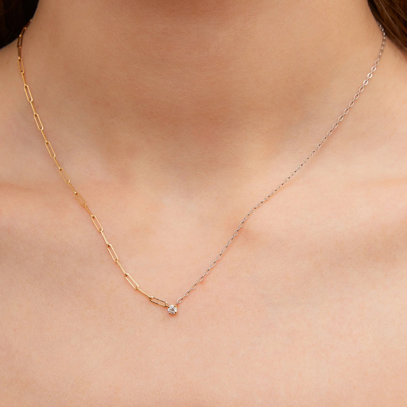 订购8周到|Yvonne Leon-diamant rond pm 2 ors-独立之光 双色金 圆钻 项链[法国设计师]
