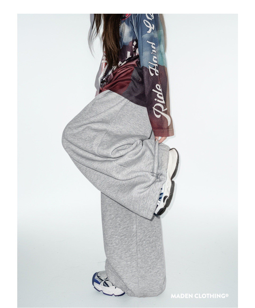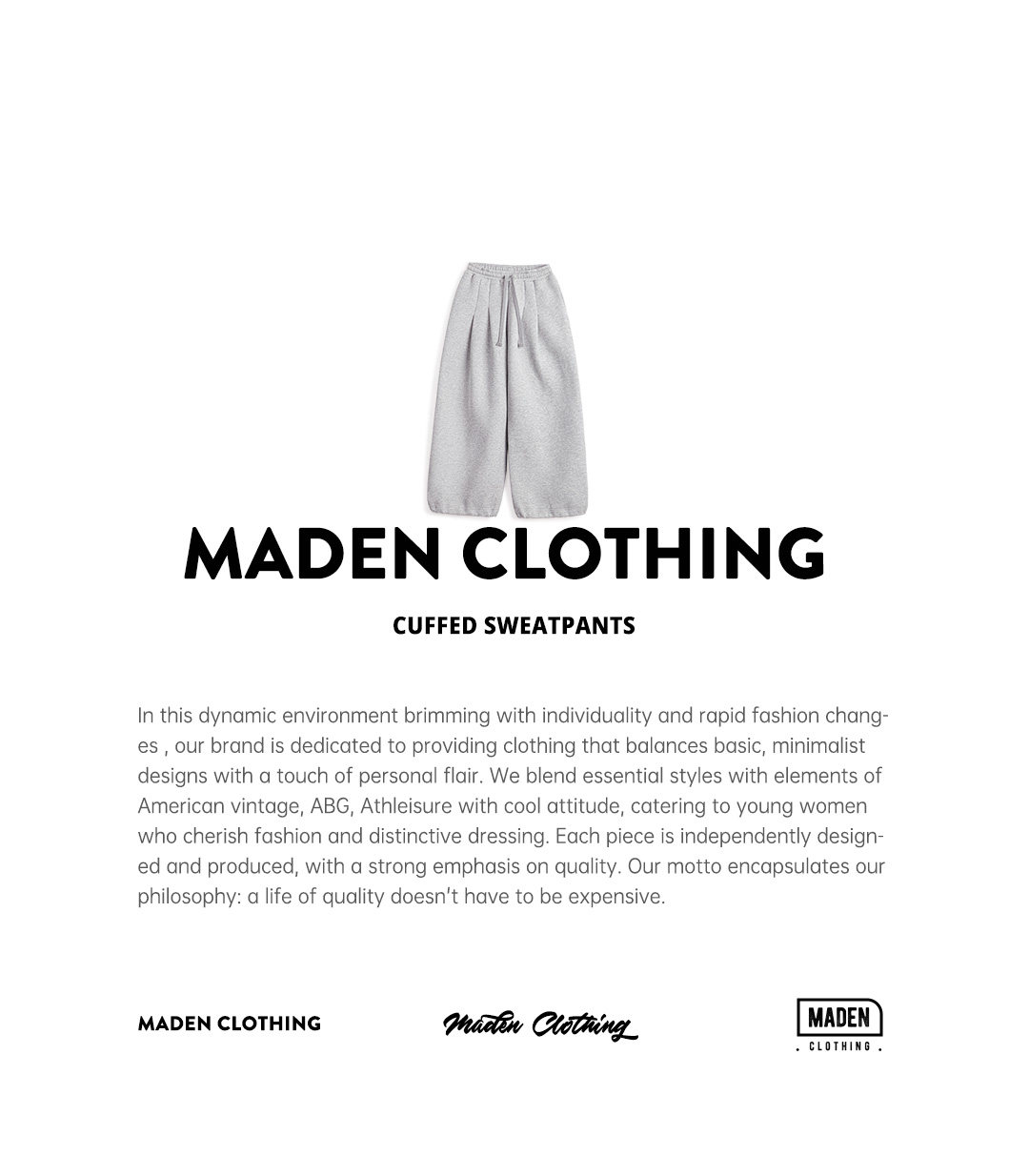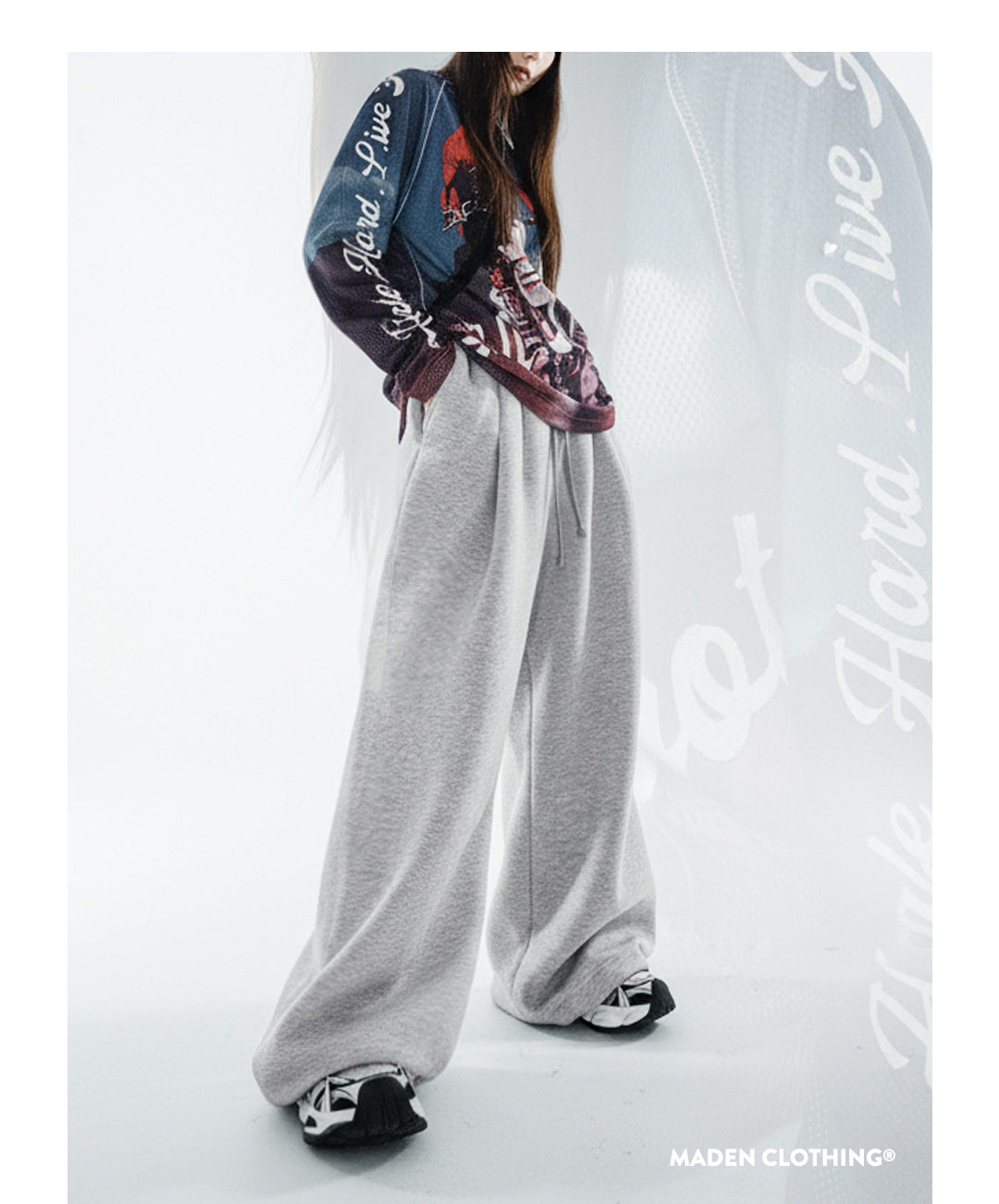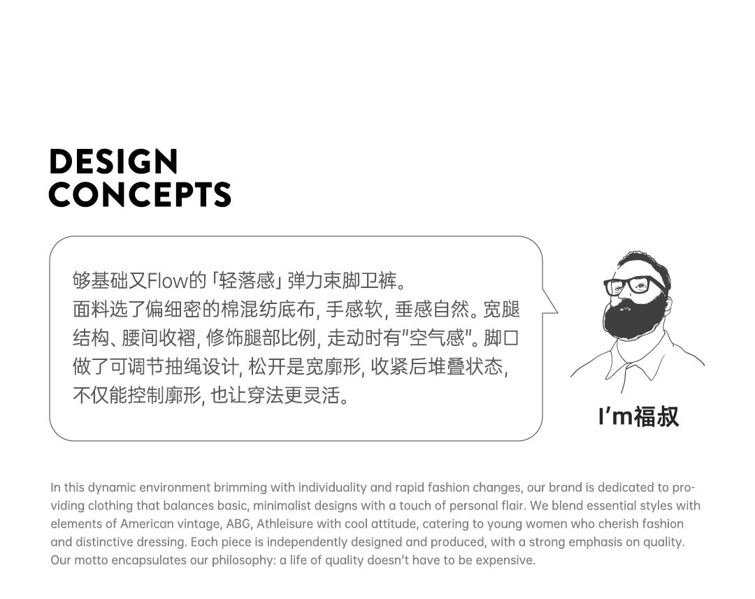 马登浅灰色阔腿直筒休闲长卫裤松紧腰抽绳束脚垂坠感糯米裤子女春
