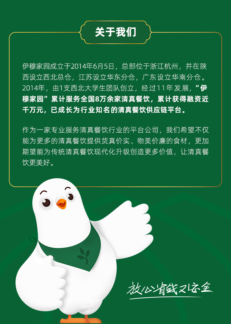 伊穆家园,专业的兰州拉面供应链平台。 过去八年累积服务兰州拉面6.7万家,目前主营兰州食材、数字化营销、拉面品牌连锁孵化。 未来五年目标是:建立自己的直营供应链体系,设立五个以上中央厨房,孵化5个以上