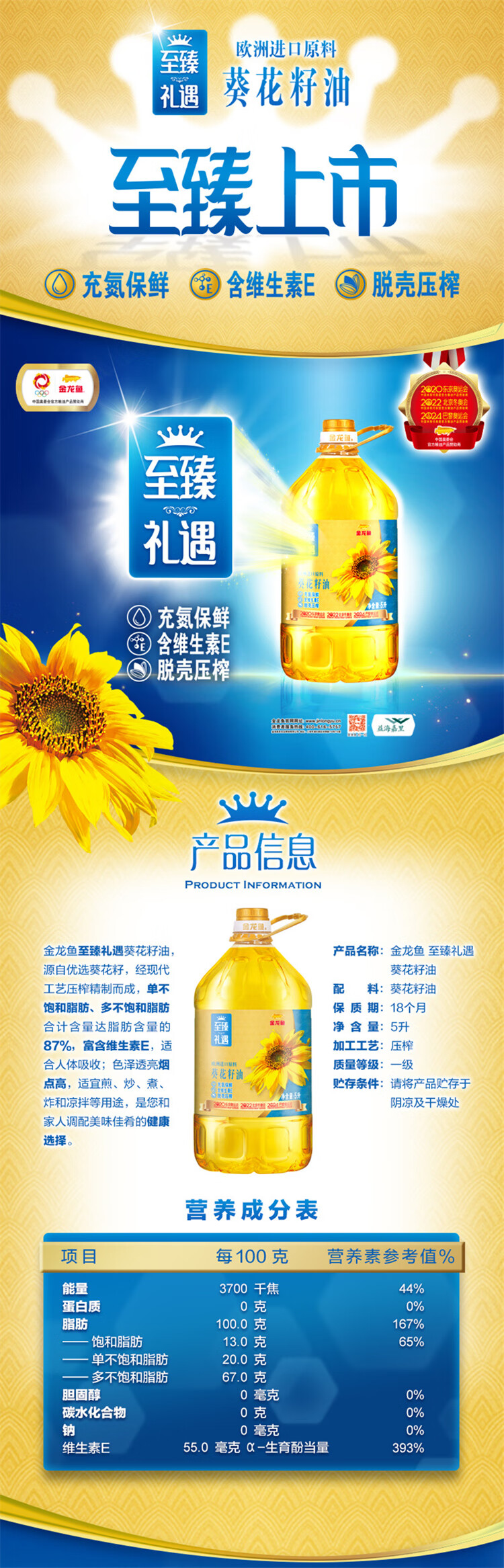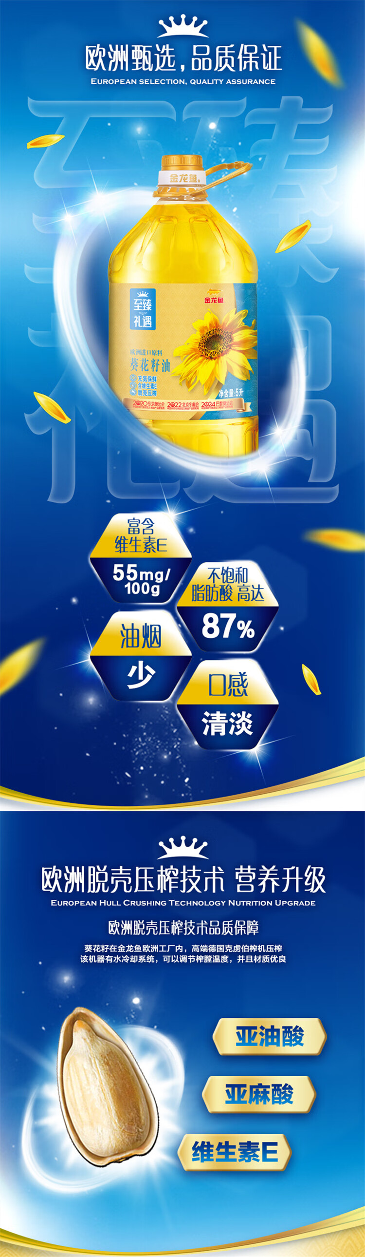 金龙鱼 至臻葵花籽油 5L/桶*2