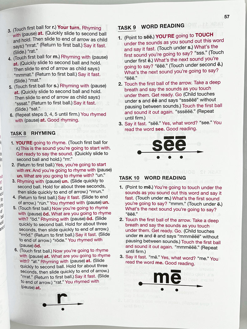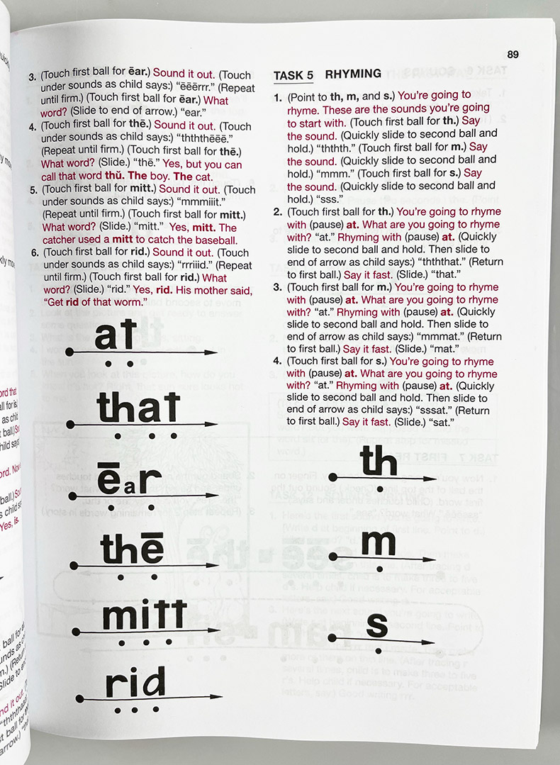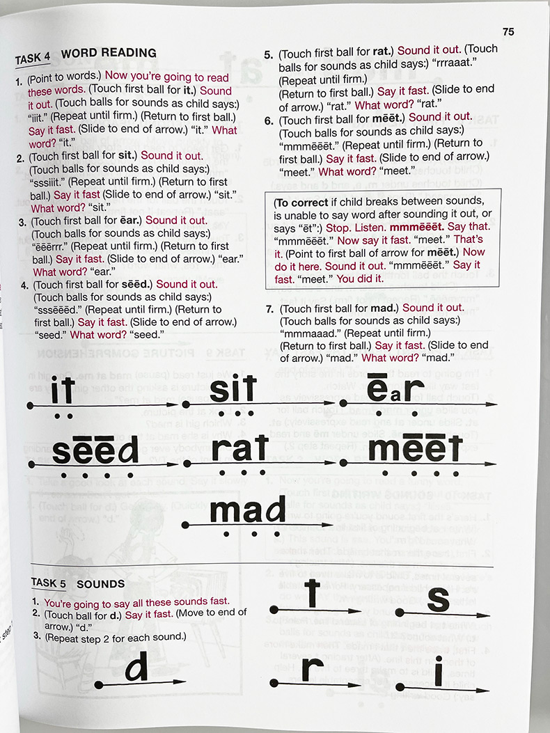 1. (Point to m) I'm going to touch under this sound and say the sound. (Touch first ball of arrow. Move quickly to second ball. Hold two seconds.) mmmmmm. (Release point.)