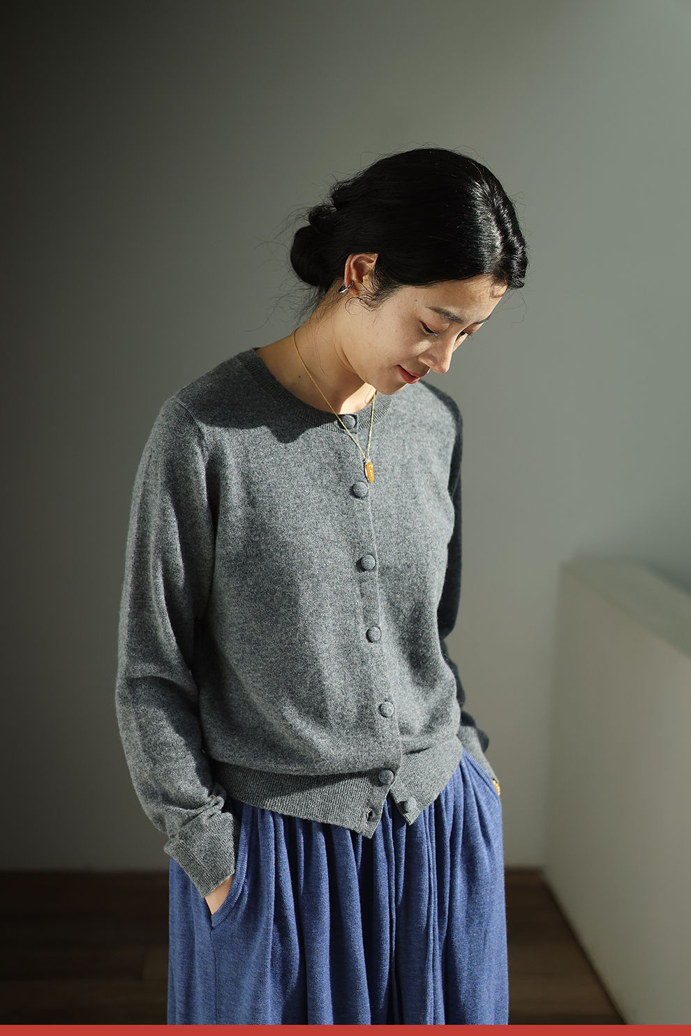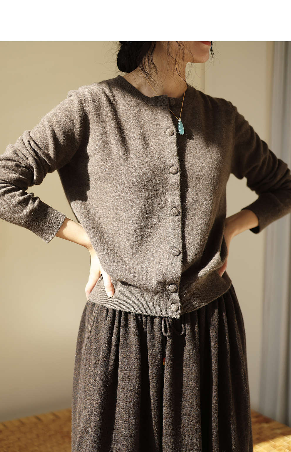 绽放871朵/新款纯山羊绒开衫宽松圆领羊绒开襟毛针织衫外搭羊毛衫