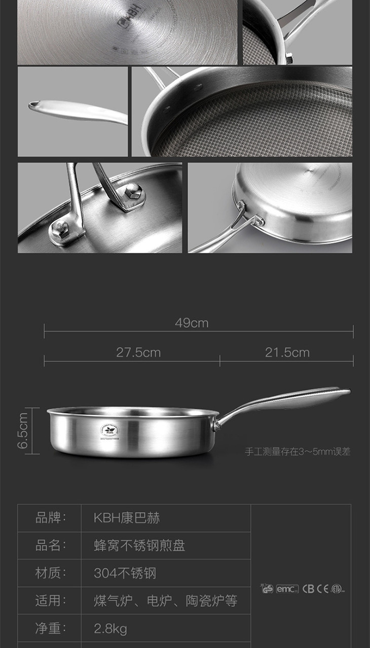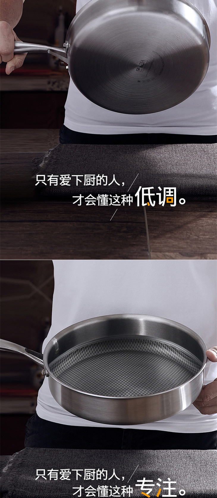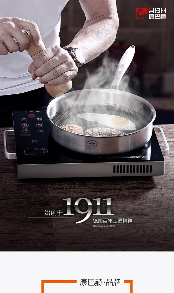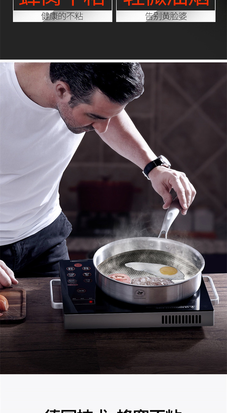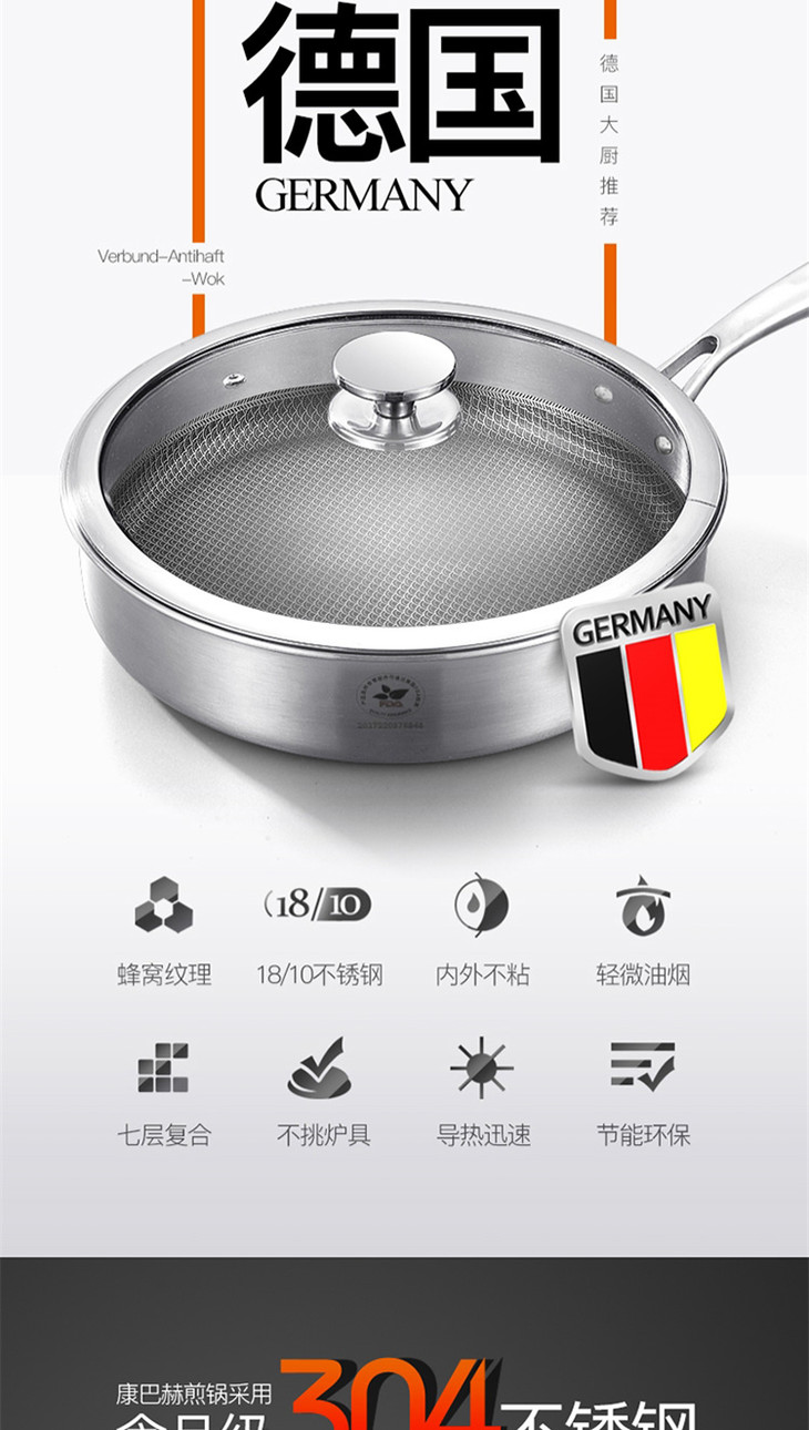 康巴赫不锈钢煎锅不粘锅平底锅德国煎饼牛排煎蛋锅特质钻石不粘26煎锅
