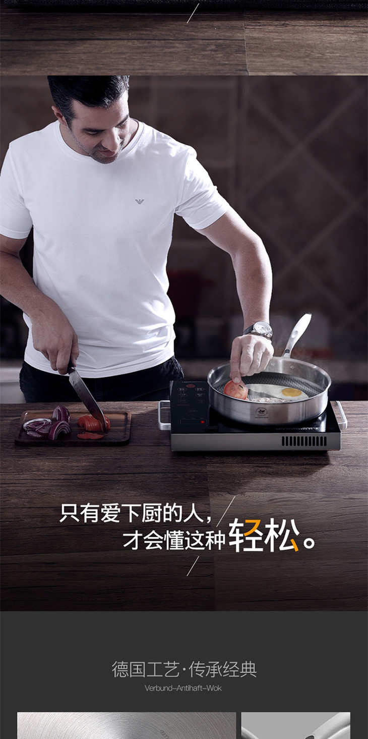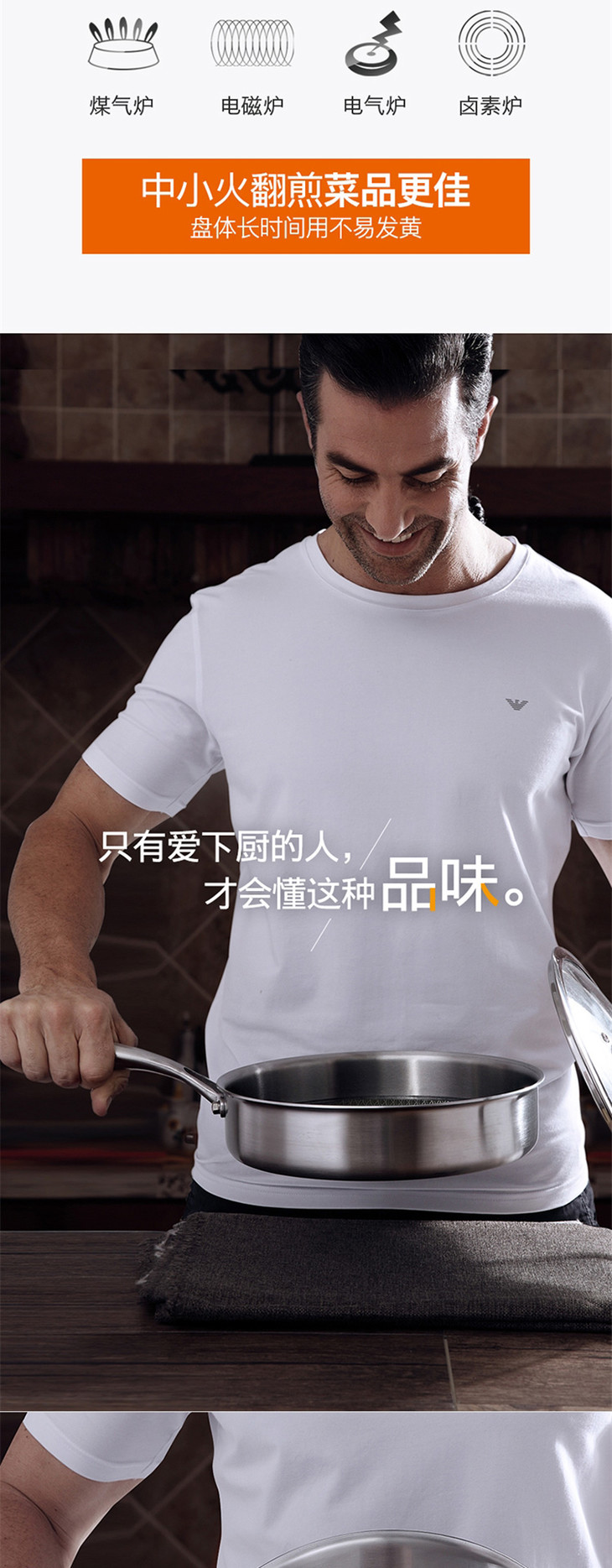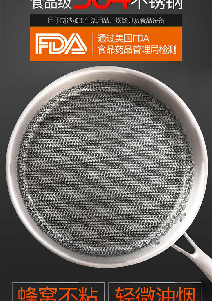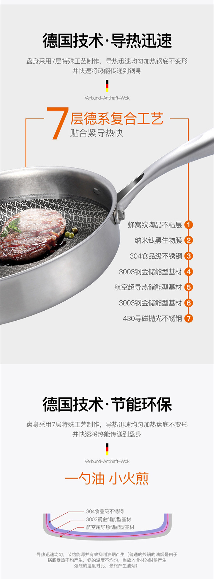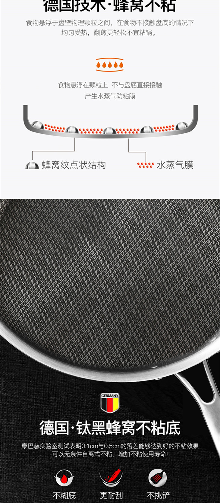 康巴赫不锈钢煎锅不粘锅平底锅德国煎饼牛排煎蛋锅特质钻石不粘26煎锅